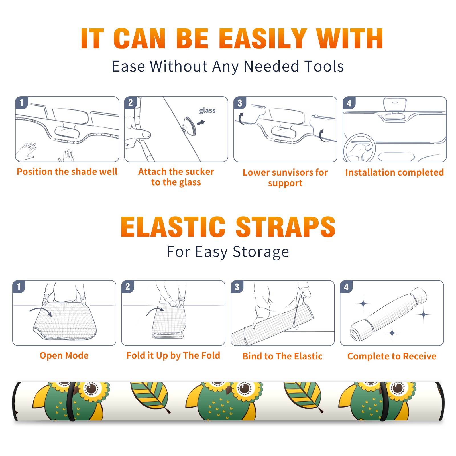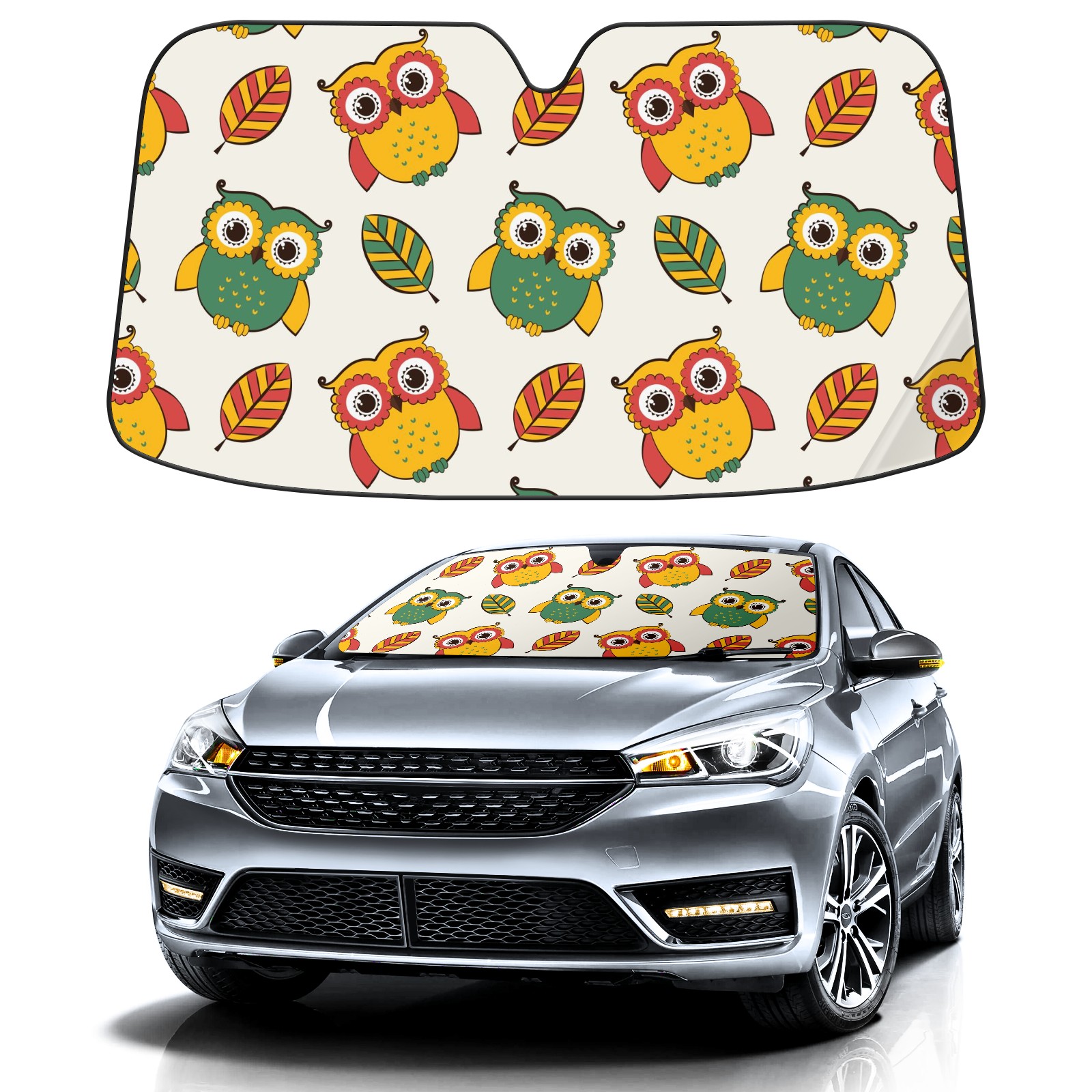 Car Windshield Sun Shade For Front Window Cute Owls And Leaves Foldable Vehicle Windshield Car Sun Visor Covers Automotive Window Protector Car Camping Privacy Sun Blocker