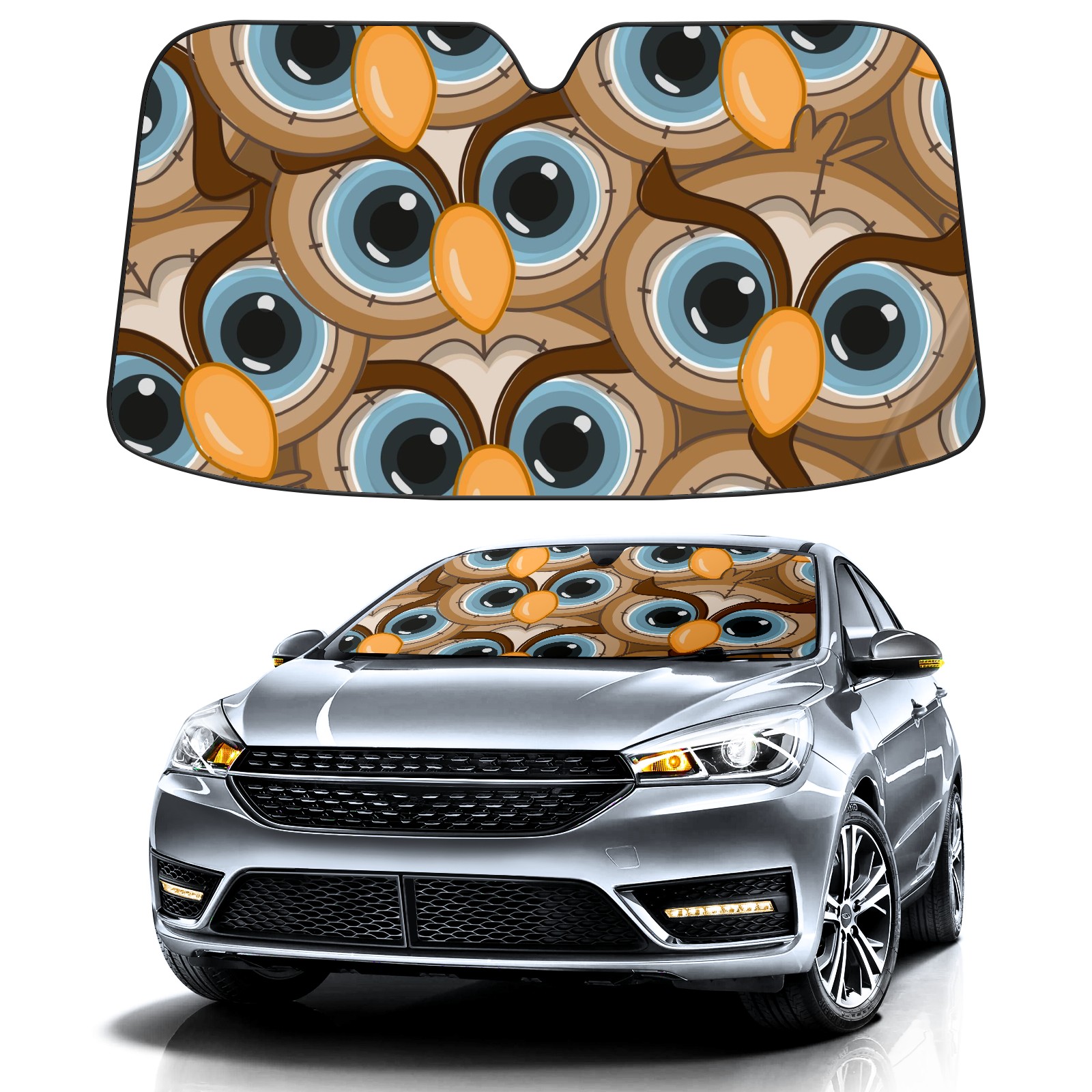 Car Windshield Sun Shade For Front Window Cute Owl Seamless Pattern Foldable Vehicle Windshield Car Sun Visor Covers Automotive Window Protector Car Camping Privacy Sun Blocker