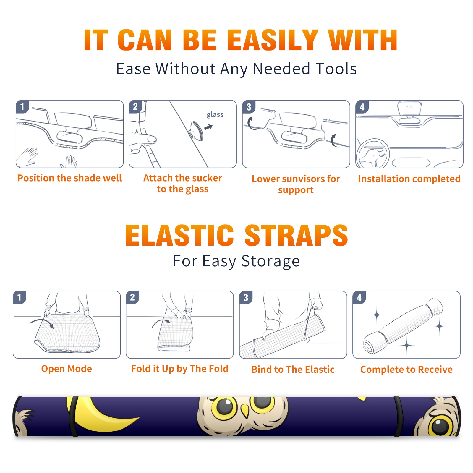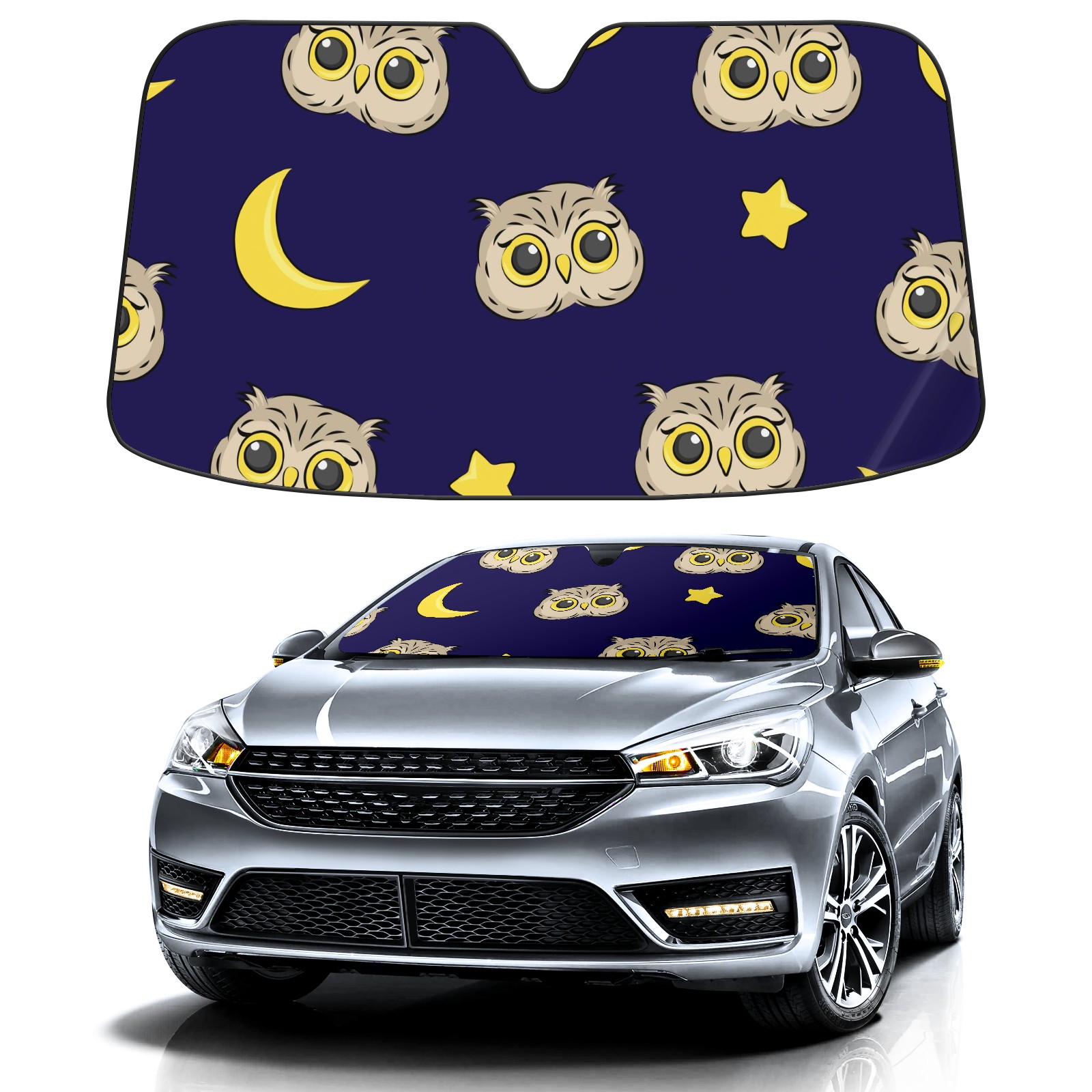 Car Windshield Sun Shade For Front Window Cute Owl Moon Star Foldable Vehicle Windshield Car Sun Visor Covers Automotive Window Protector Car Camping Privacy Sun Blocker