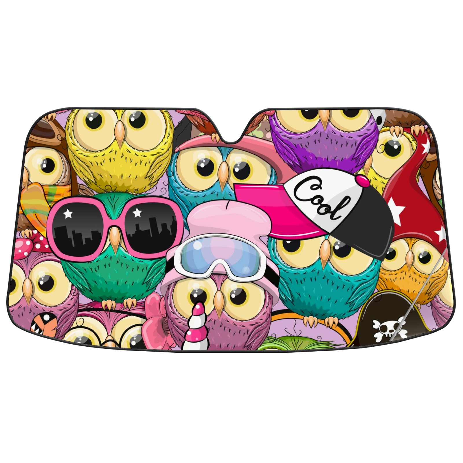 Car Windshield Sun Shade For Front Window Colorful Cute Cartoon Owls Foldable Vehicle Windshield Car Sun Visor Covers Automotive Window Protector Car Camping Privacy Sun Blocker