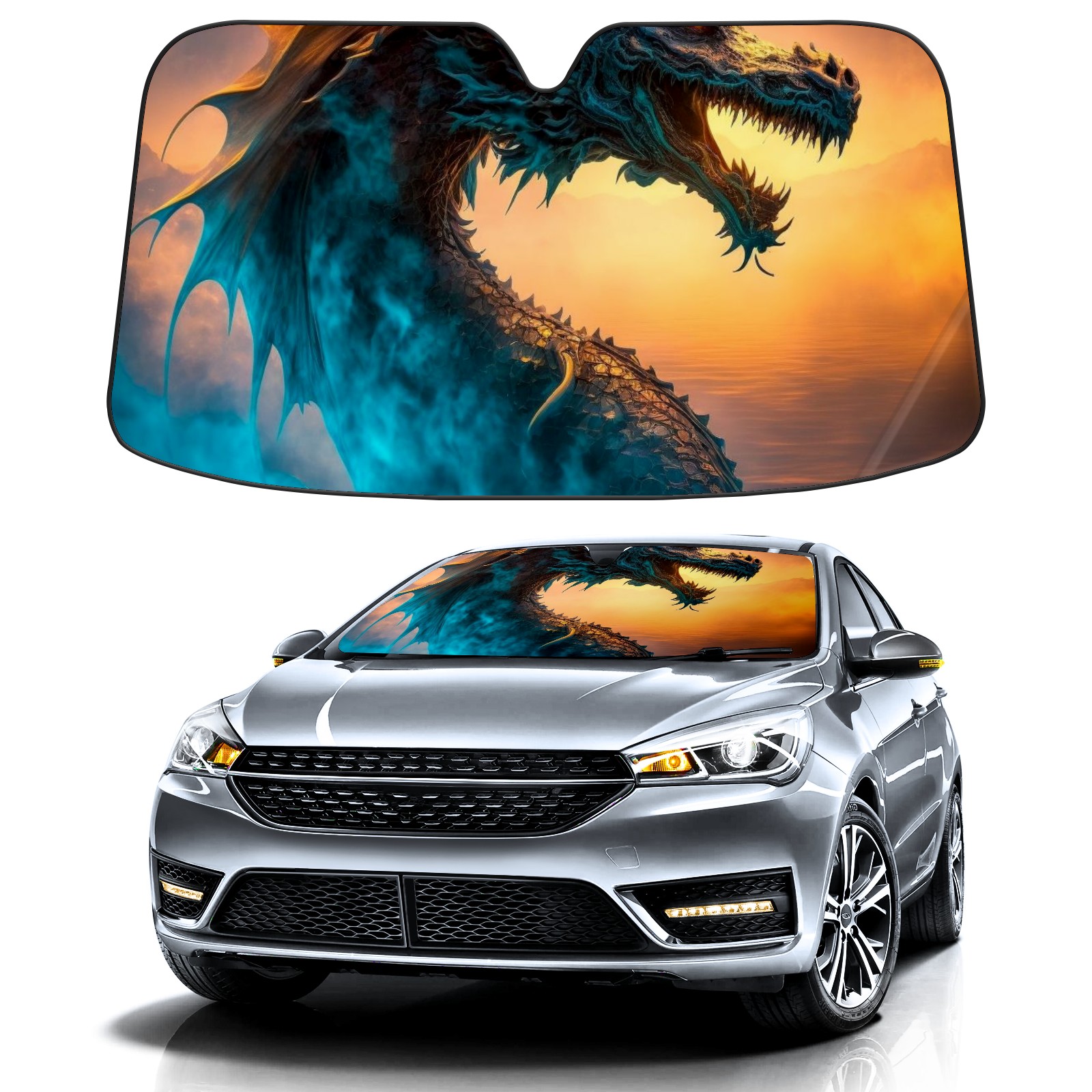 Car Windshield Sun Shade For Front Window Dragon In Colourful Glow And Mist Foldable Vehicle Windshield Car Sun Visor Covers Automotive Window Protector Car Camping Privacy Sun Blocker