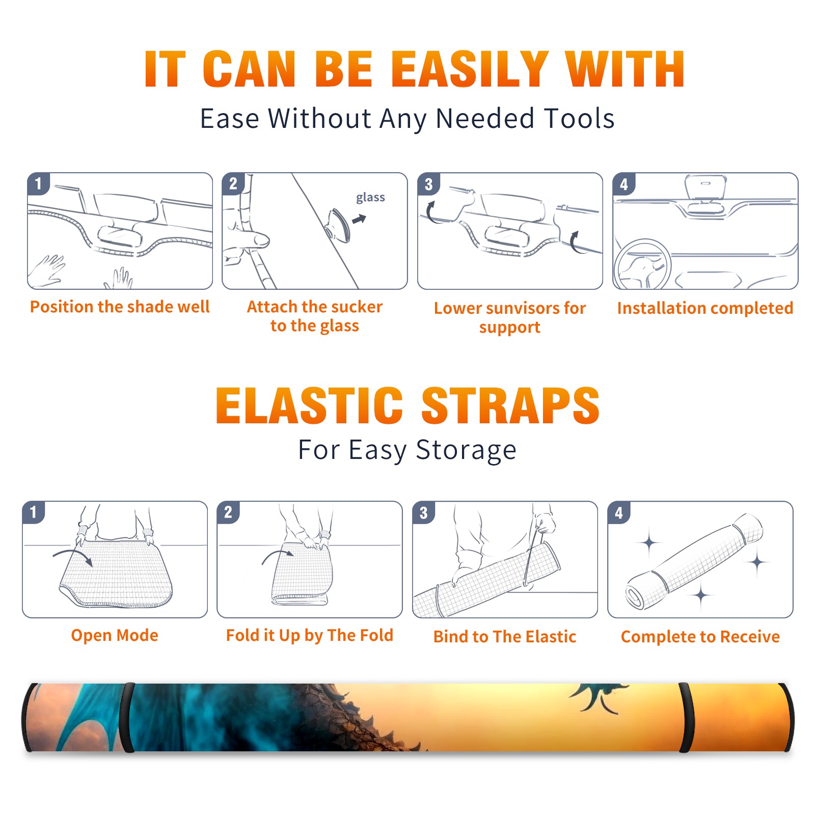 • Diameter /Size 63"L x 33.5"W Made from excellent materials which makes it sturdy and protects the car from the sun. Easy to use and pack. Makes the interior of the car cooler.You can easily stash the sunshade in the storage bag or store long term.It open and closes easy. Also the leather storage bag is durable and easy to put the umbrella back into.This windshield sunshade provides complete coverage and keeps your car interior cool under direct sun. It is easy to open and position under the windshield and around the rear-view mirror. Makes Your Car Easy To Identify, Perfect For Finding Your Car In Crowded Parking Lots And Garages.Great Choice: It Is A Great Gift For Dad, Boyfriend, Brother, Brother And Uncle, Friends, Classmates, Family And So On. Notice: Due To Difference Computer Monitors, The Color Maybe Slightly Different From Picture. As Different Measurement Methods, Measurement Data Will Float Within 2%.I Hope You Understand. If You Have Any Question About The Item Please Do Not Hesitate To Contact Us Immediately And We Will Give You A Satisfactory Reply Within 24 Hours.