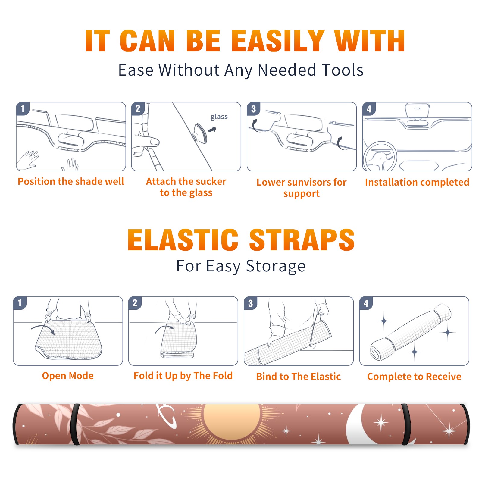 Car Windshield Sun Shade For Front Window Magical Sun Crescent Stars Astrology Foldable Vehicle Windshield Car Sun Visor Covers Automotive Window Protector Car Camping Privacy Sun Blocker