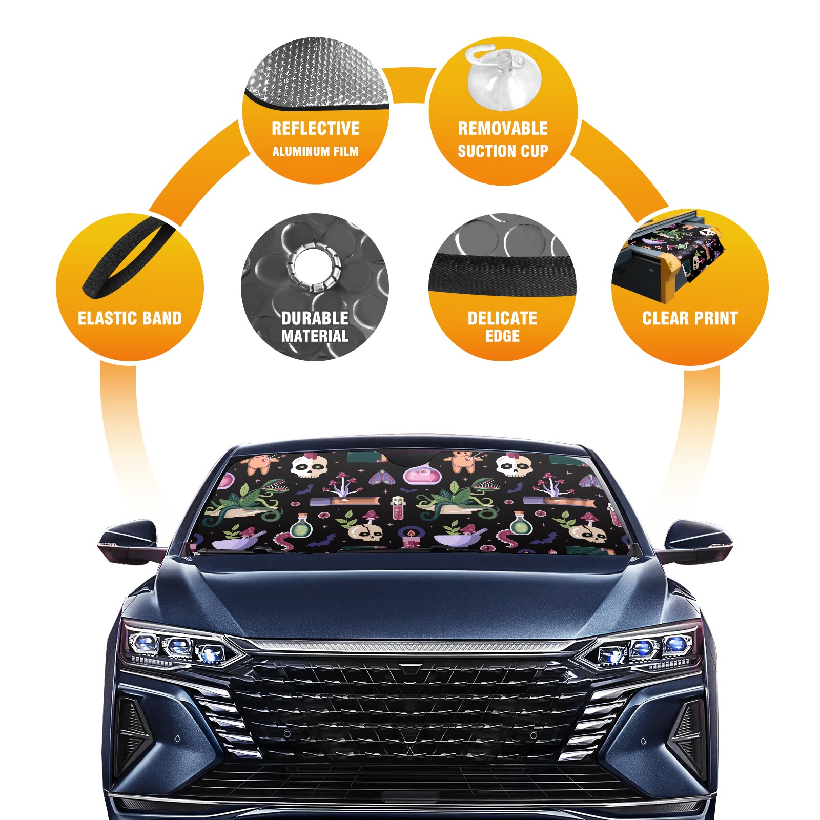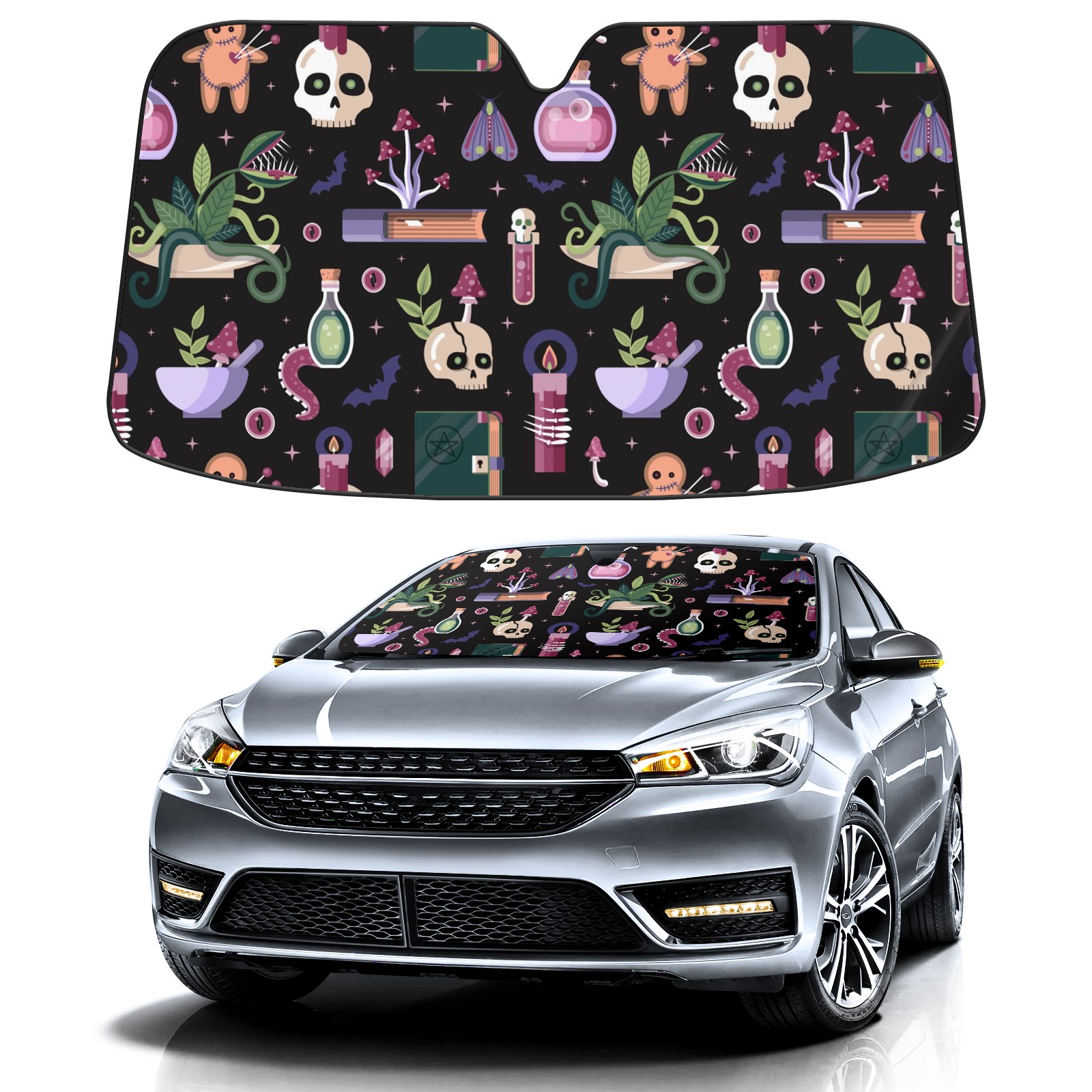 Car Windshield Sun Shade For Front Window Halloween Magic And Witchcraft Foldable Vehicle Windshield Car Sun Visor Covers Automotive Window Protector Car Camping Privacy Sun Blocker