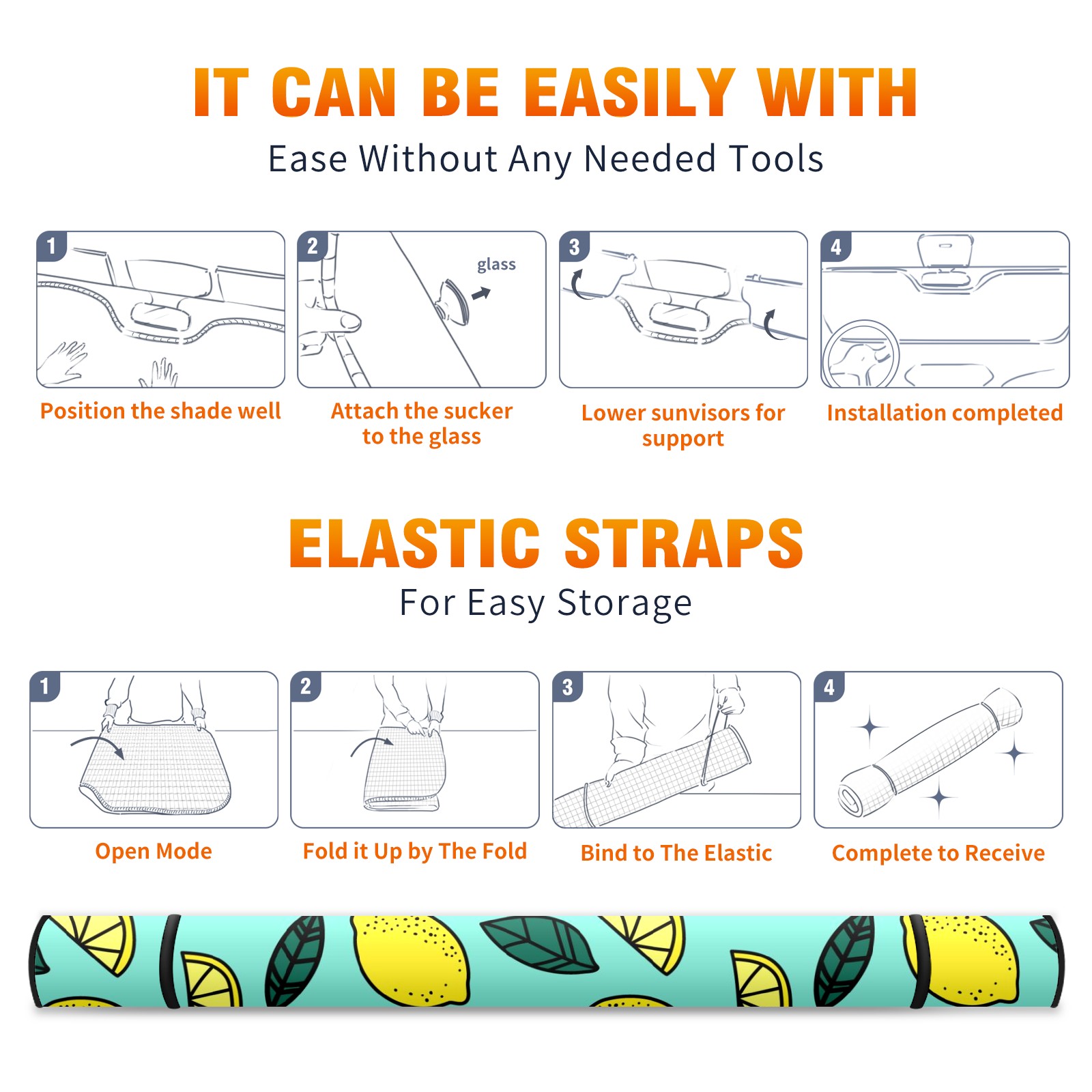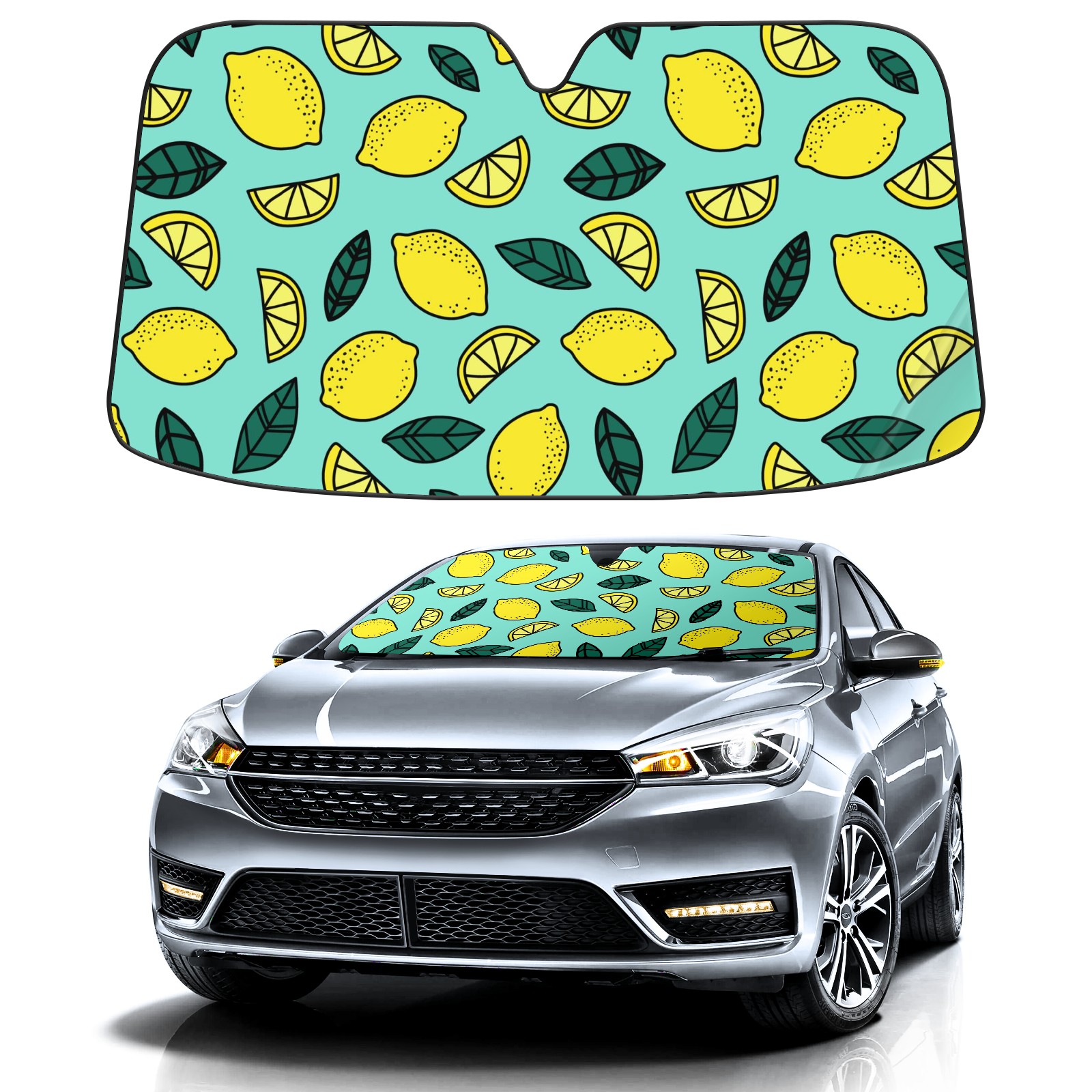 Car Windshield Sun Shade For Front Window Tropical Lemon Fruit And Leaves Foldable Vehicle Windshield Car Sun Visor Covers Automotive Window Protector Car Camping Privacy Sun Blocker