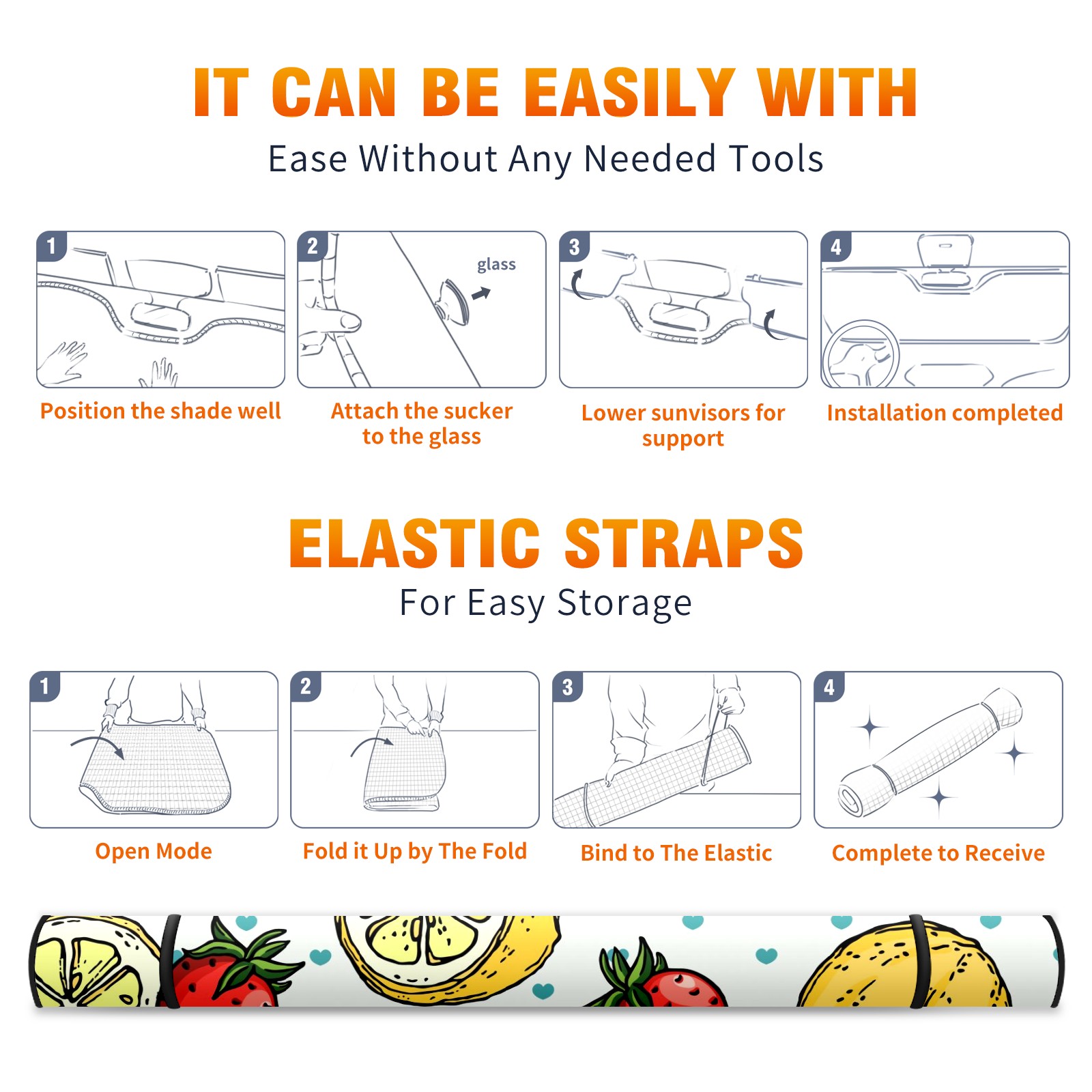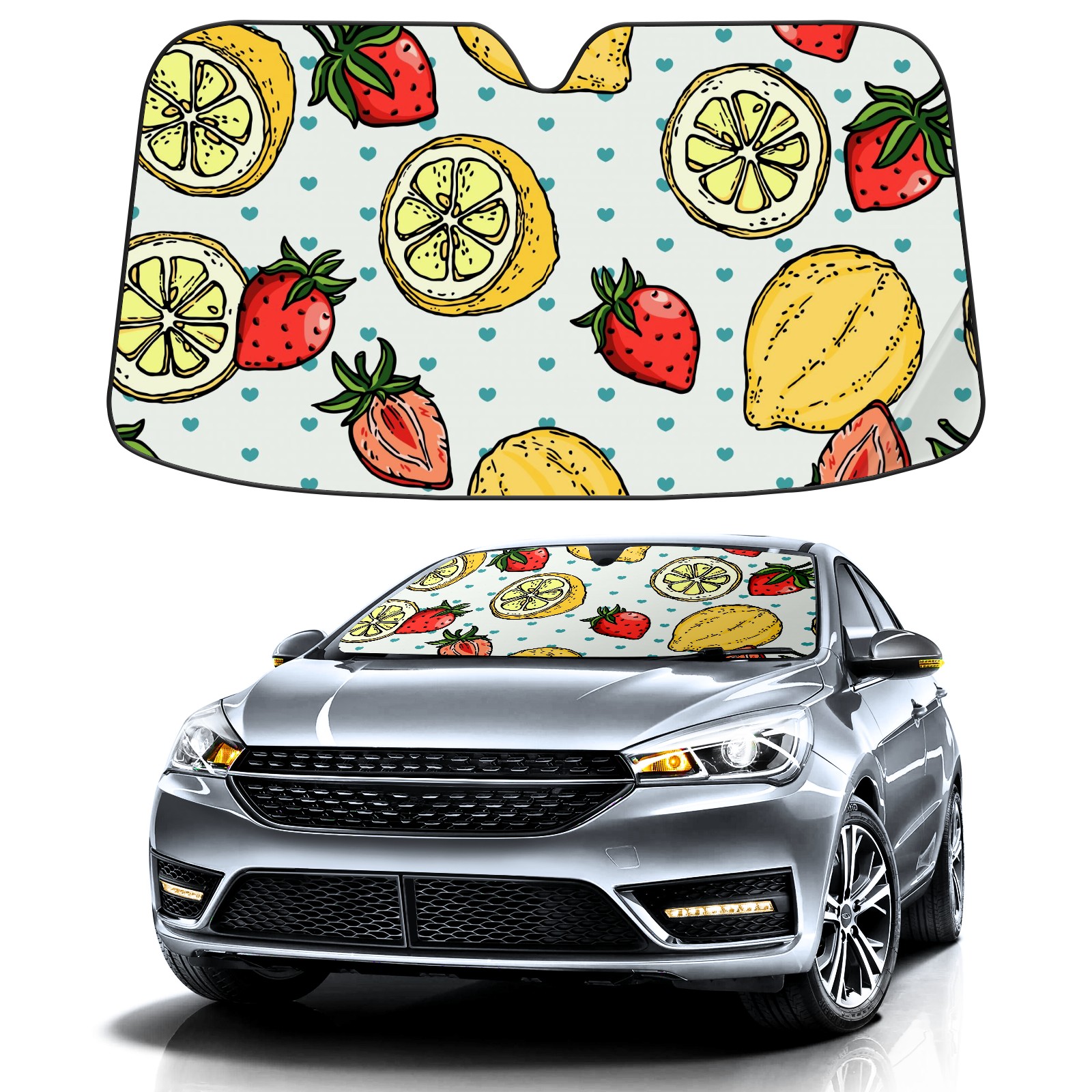 Car Windshield Sun Shade For Front Window Lemon Strawberry Summer Fruit Foldable Vehicle Windshield Car Sun Visor Covers Automotive Window Protector Car Camping Privacy Sun Blocker