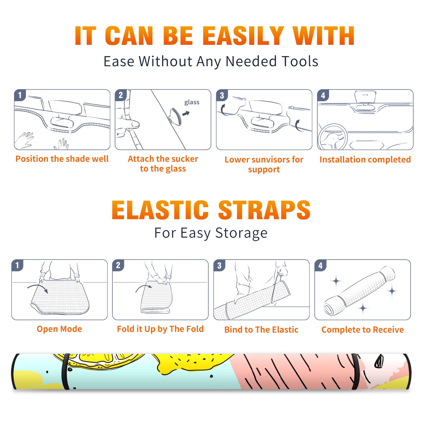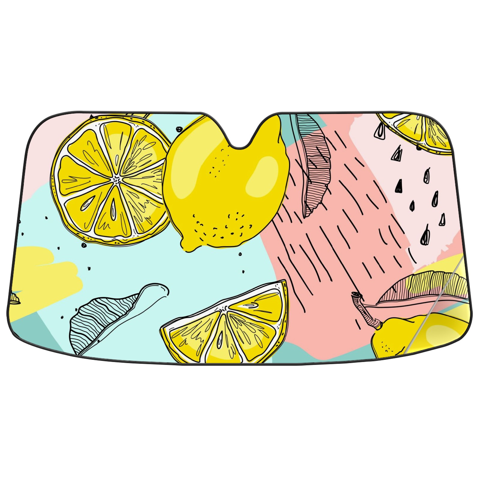 Car Windshield Sun Shade For Front Window Lemon Hand Drawn Pattern Foldable Vehicle Windshield Car Sun Visor Covers Automotive Window Protector Car Camping Privacy Sun Blocker