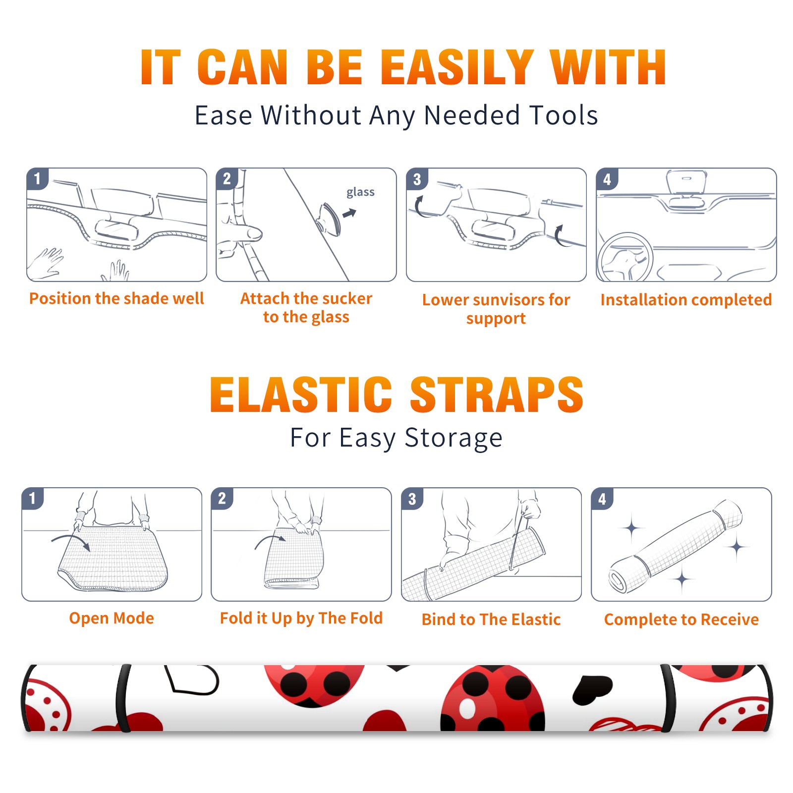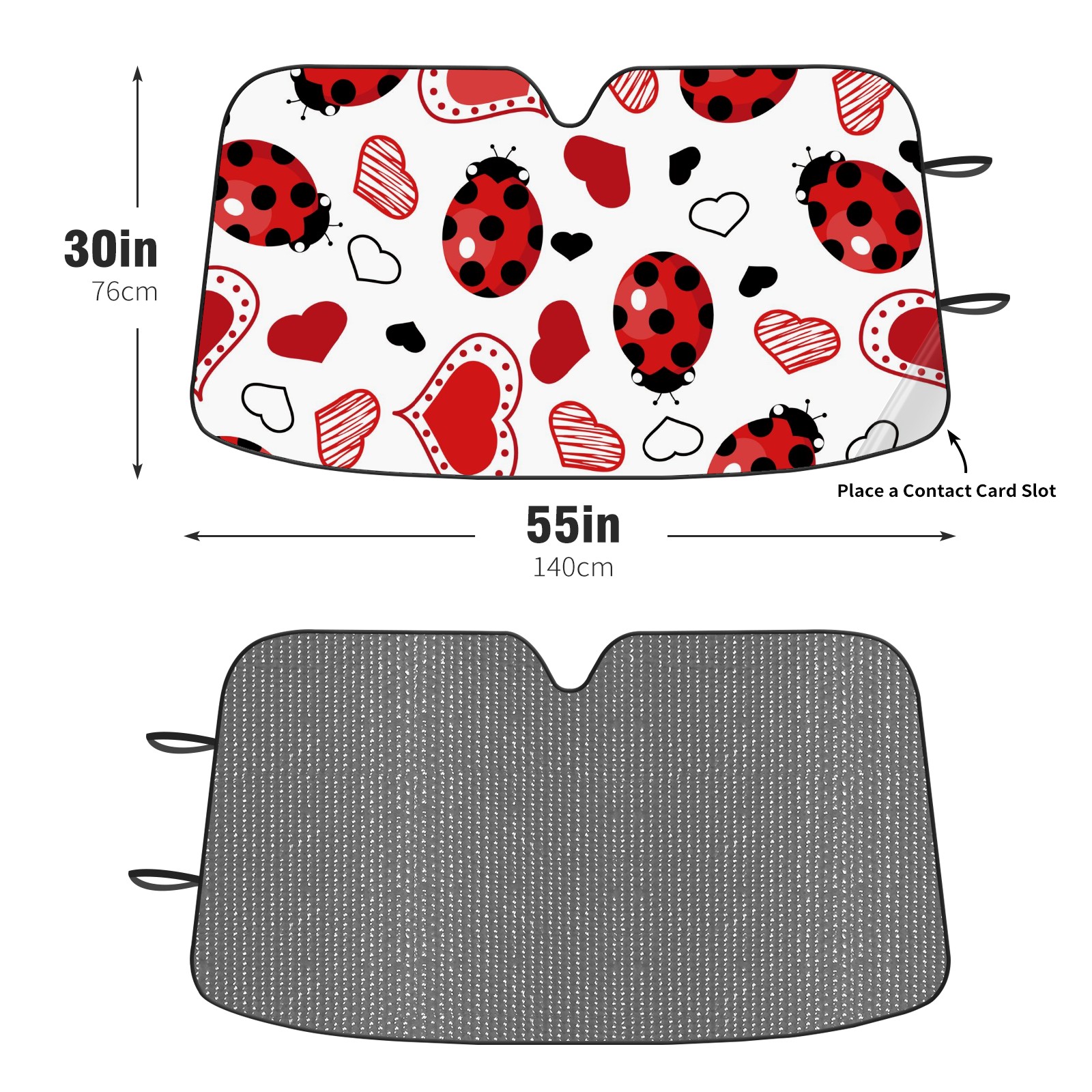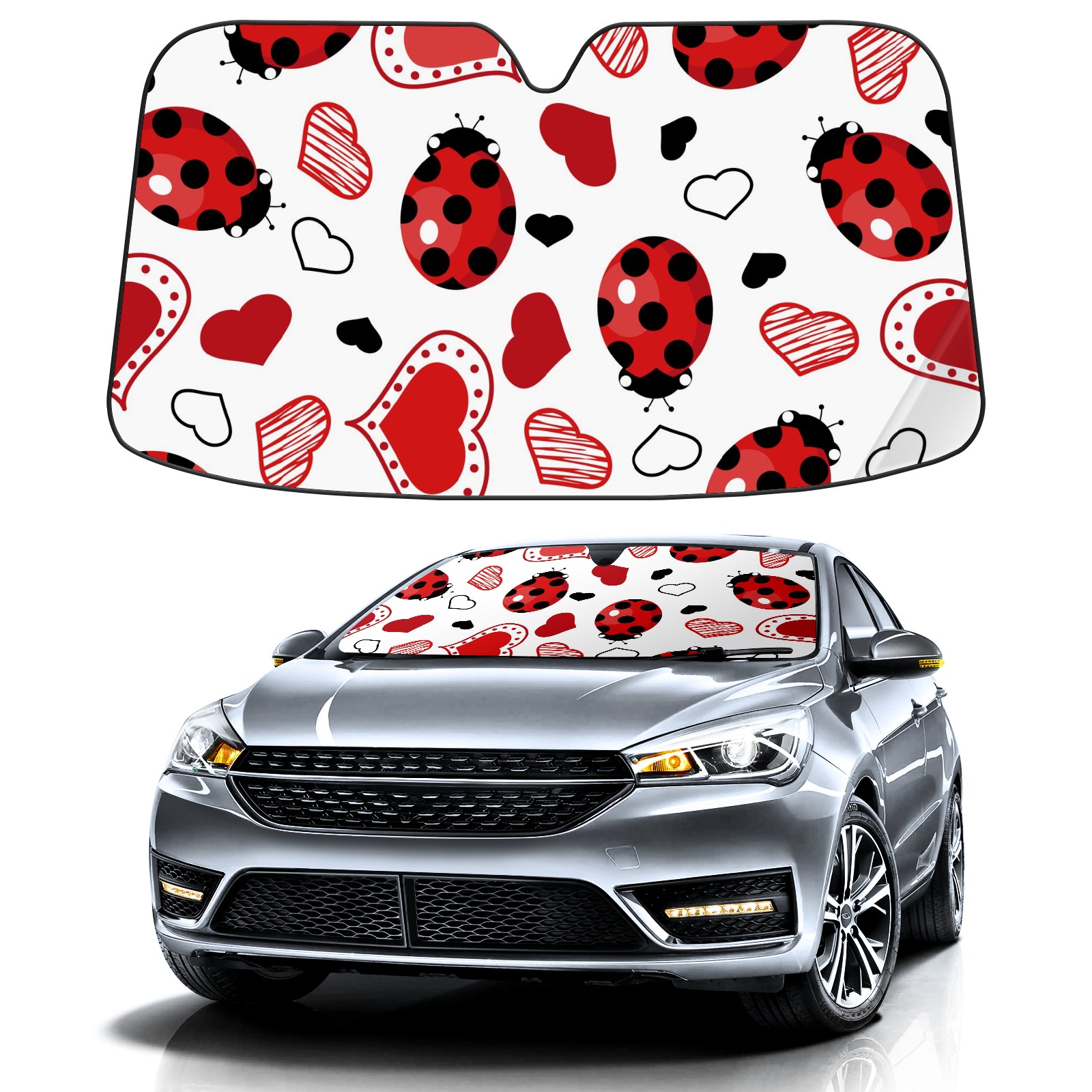 Car Windshield Sun Shade For Front Window Valentine Ladybug Hearts Foldable Vehicle Windshield Car Sun Visor Covers Automotive Window Protector Car Camping Privacy Sun Blocker
