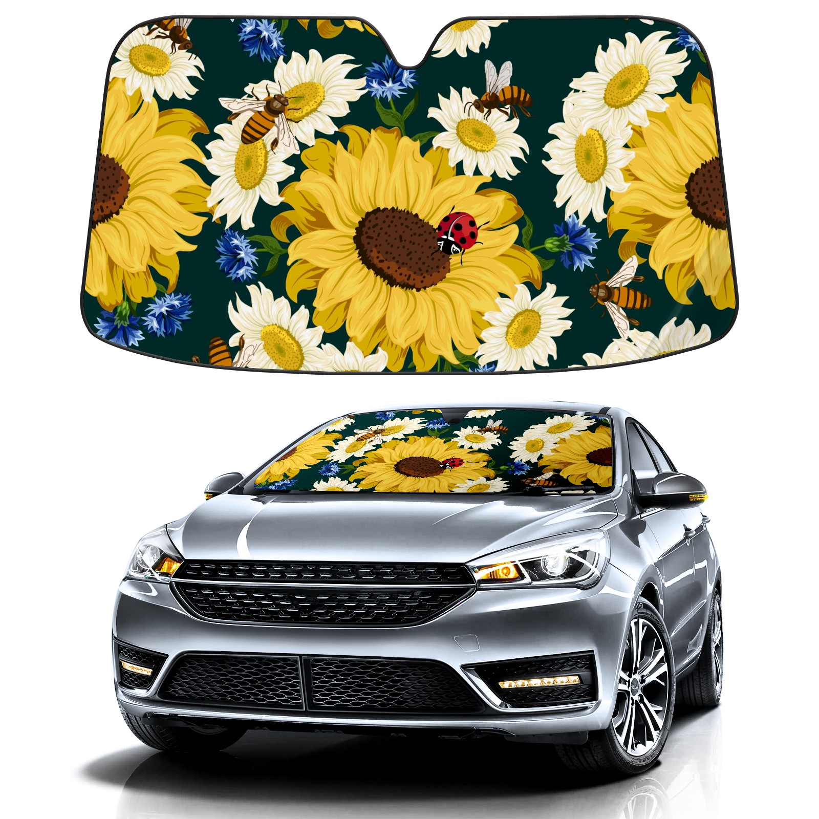 Car Windshield Sun Shade For Front Window Insects And Bouquets Of Flowers Foldable Vehicle Windshield Car Sun Visor Covers Automotive Window Protector Car Camping Privacy Sun Blocker