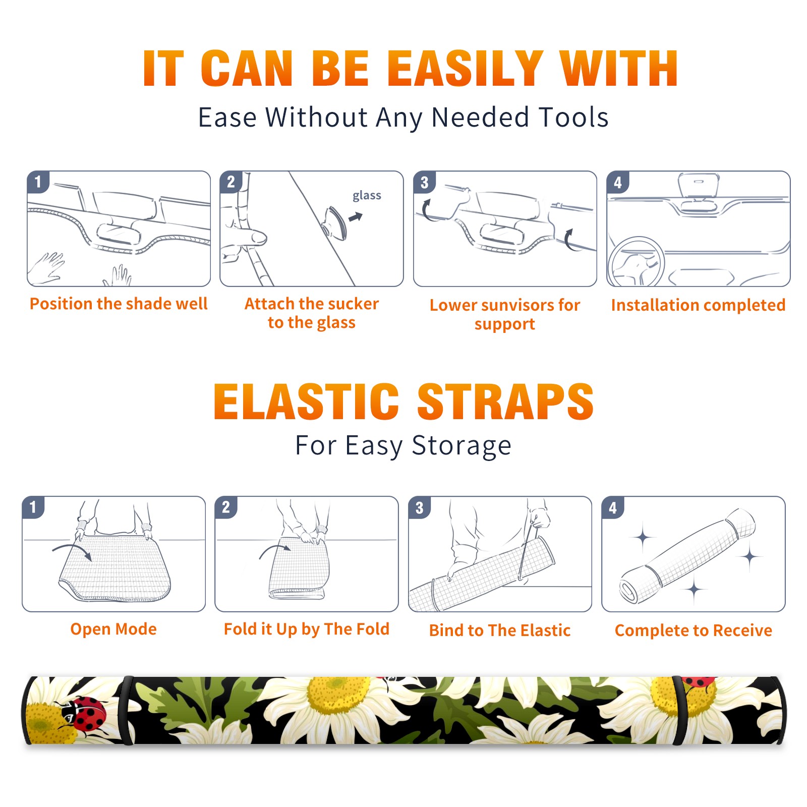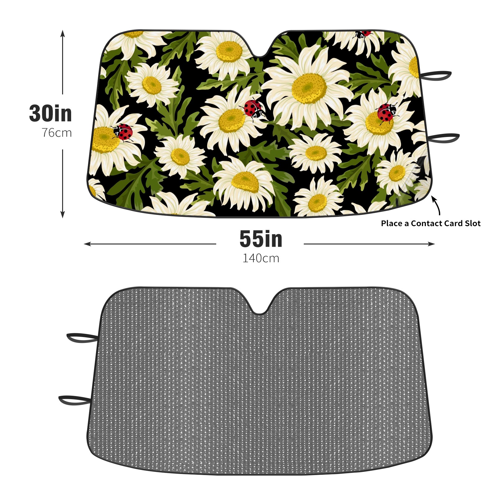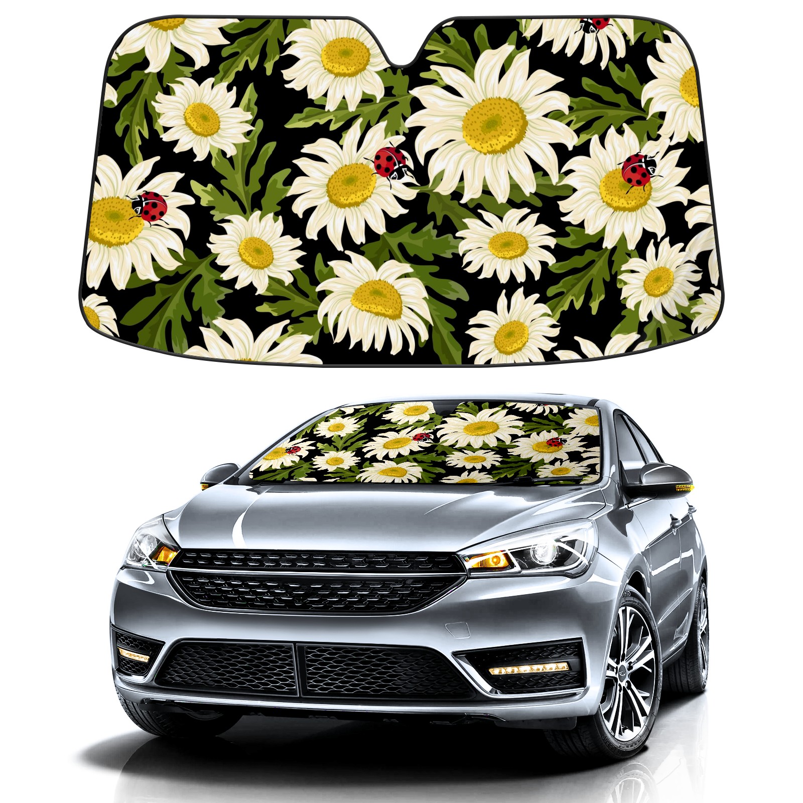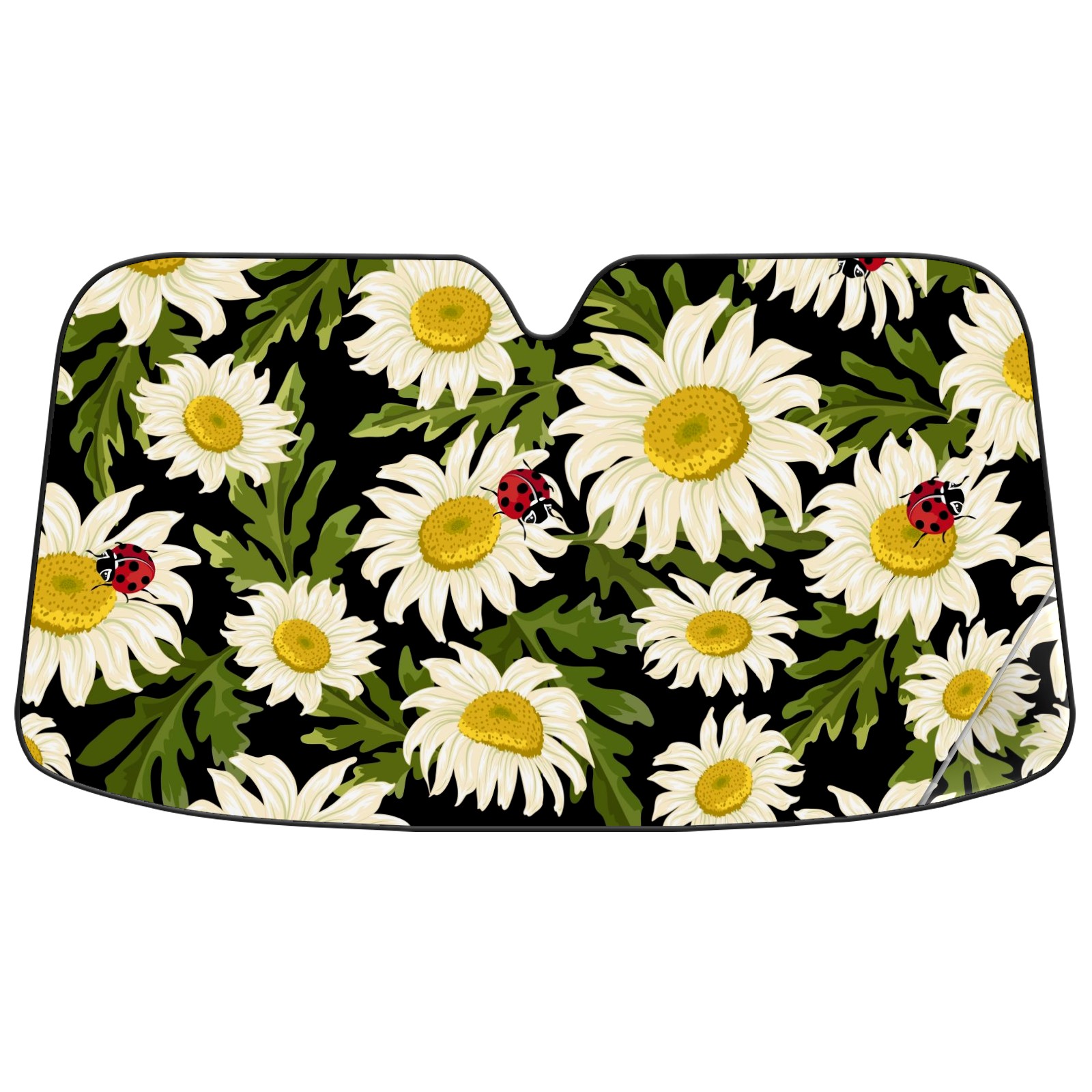 Car Windshield Sun Shade For Front Window Daisy And Ladybug Foldable Vehicle Windshield Car Sun Visor Covers Automotive Window Protector Car Camping Privacy Sun Blocker