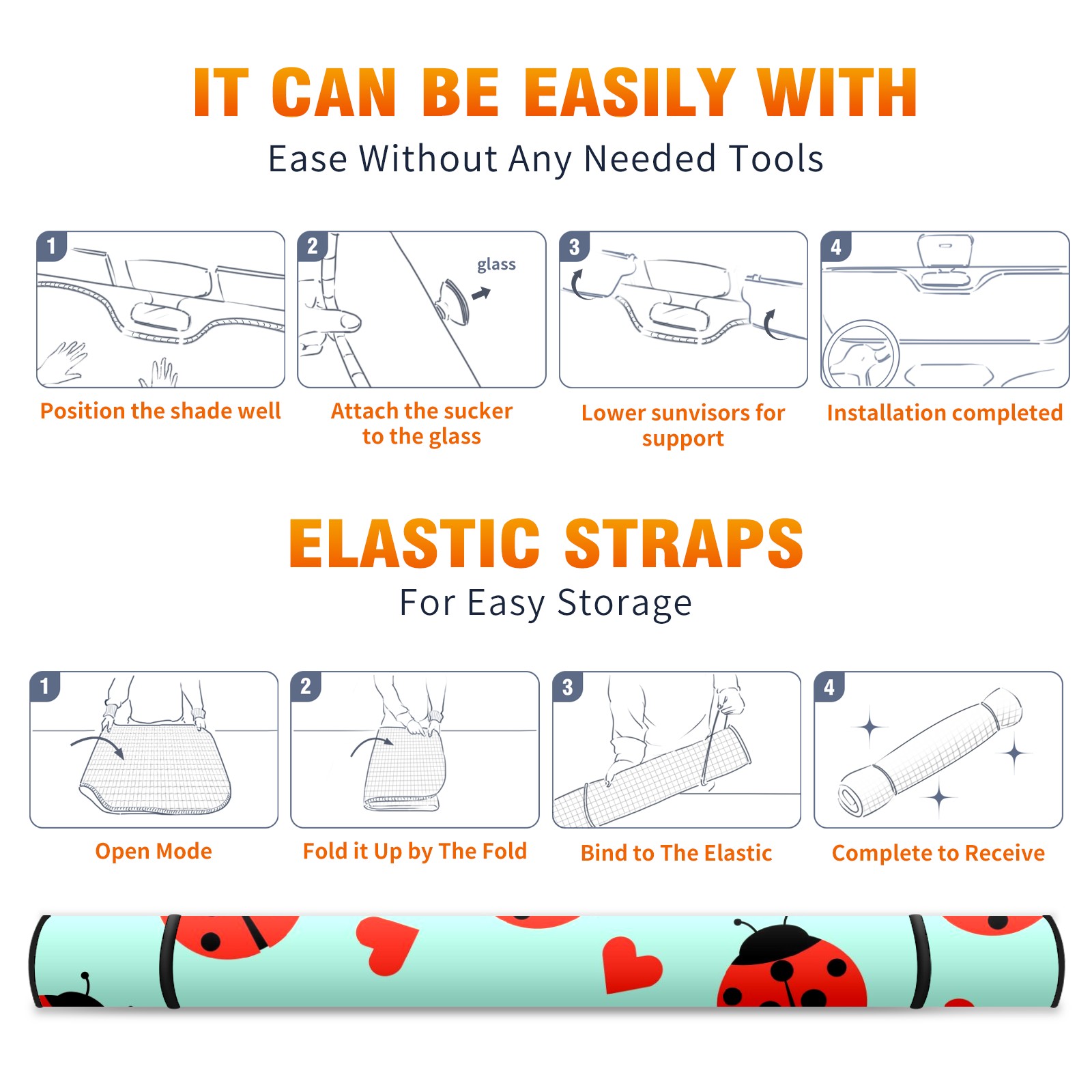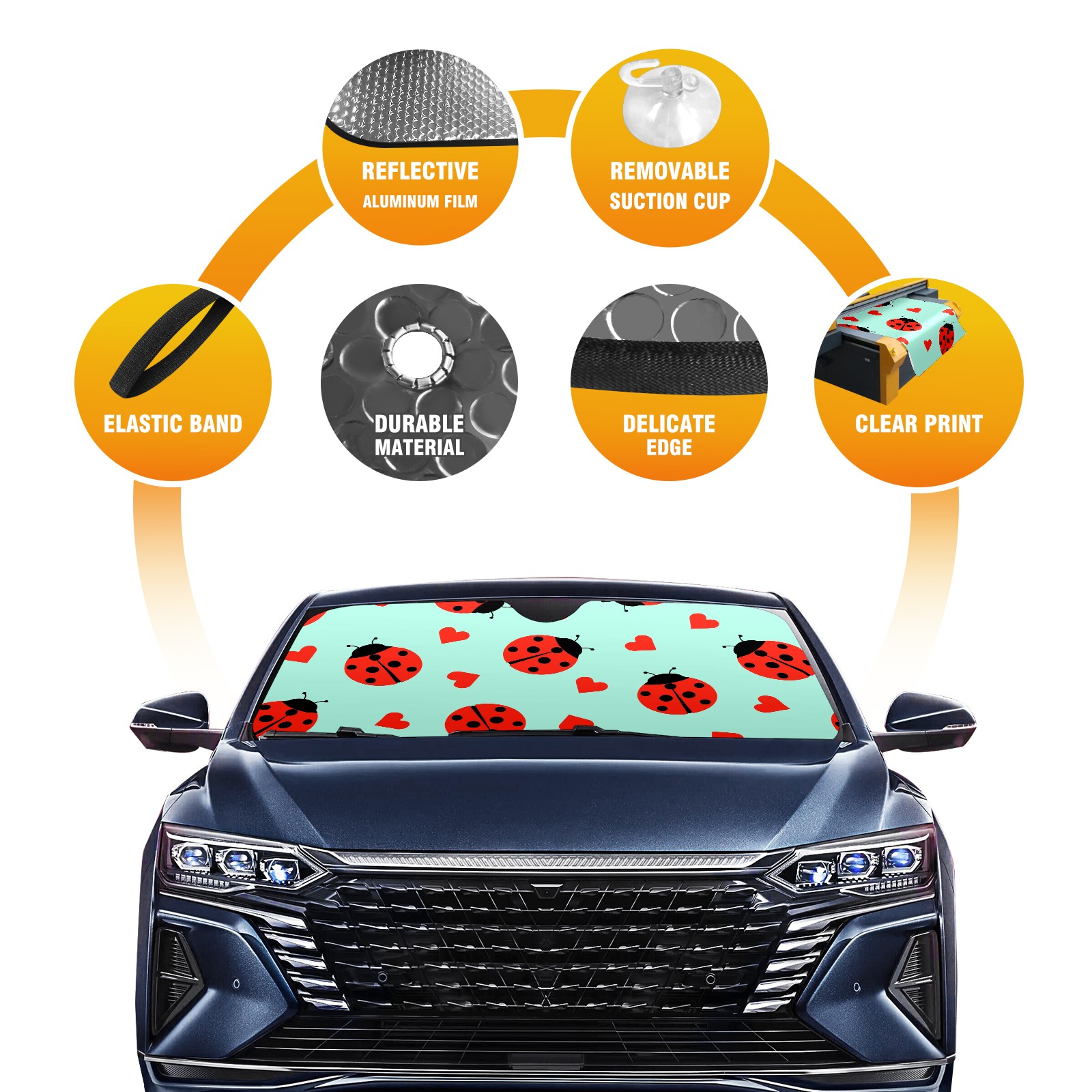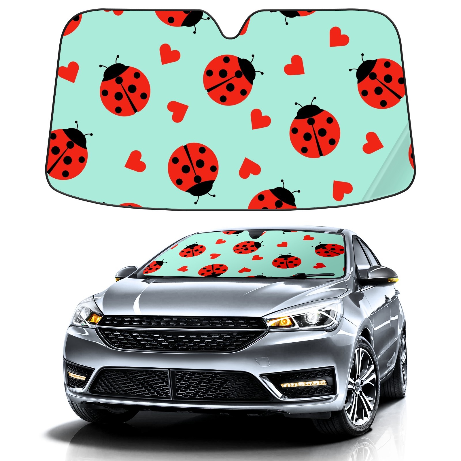 Car Windshield Sun Shade For Front Window Cute Ladybug And Hearts Foldable Vehicle Windshield Car Sun Visor Covers Automotive Window Protector Car Camping Privacy Sun Blocker
