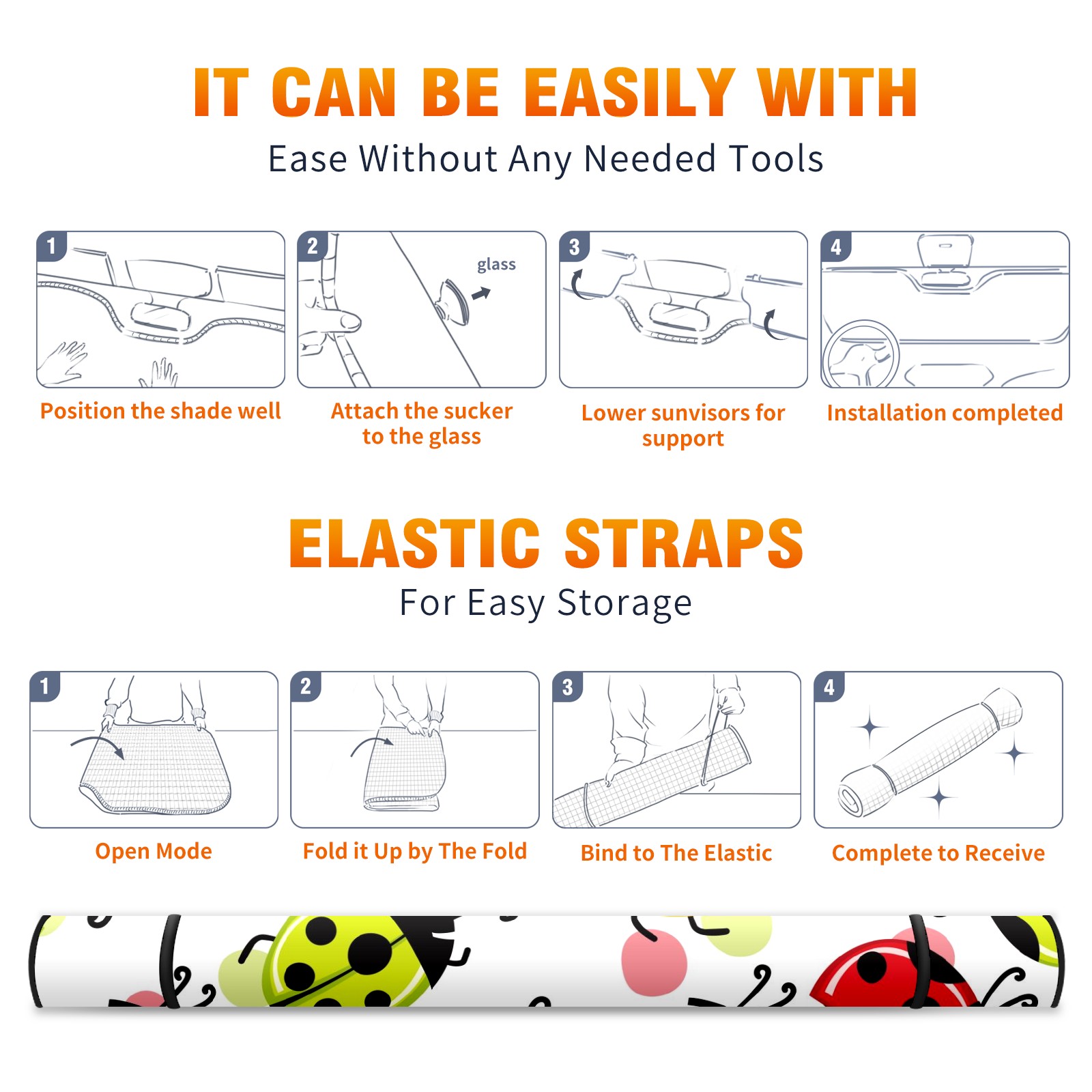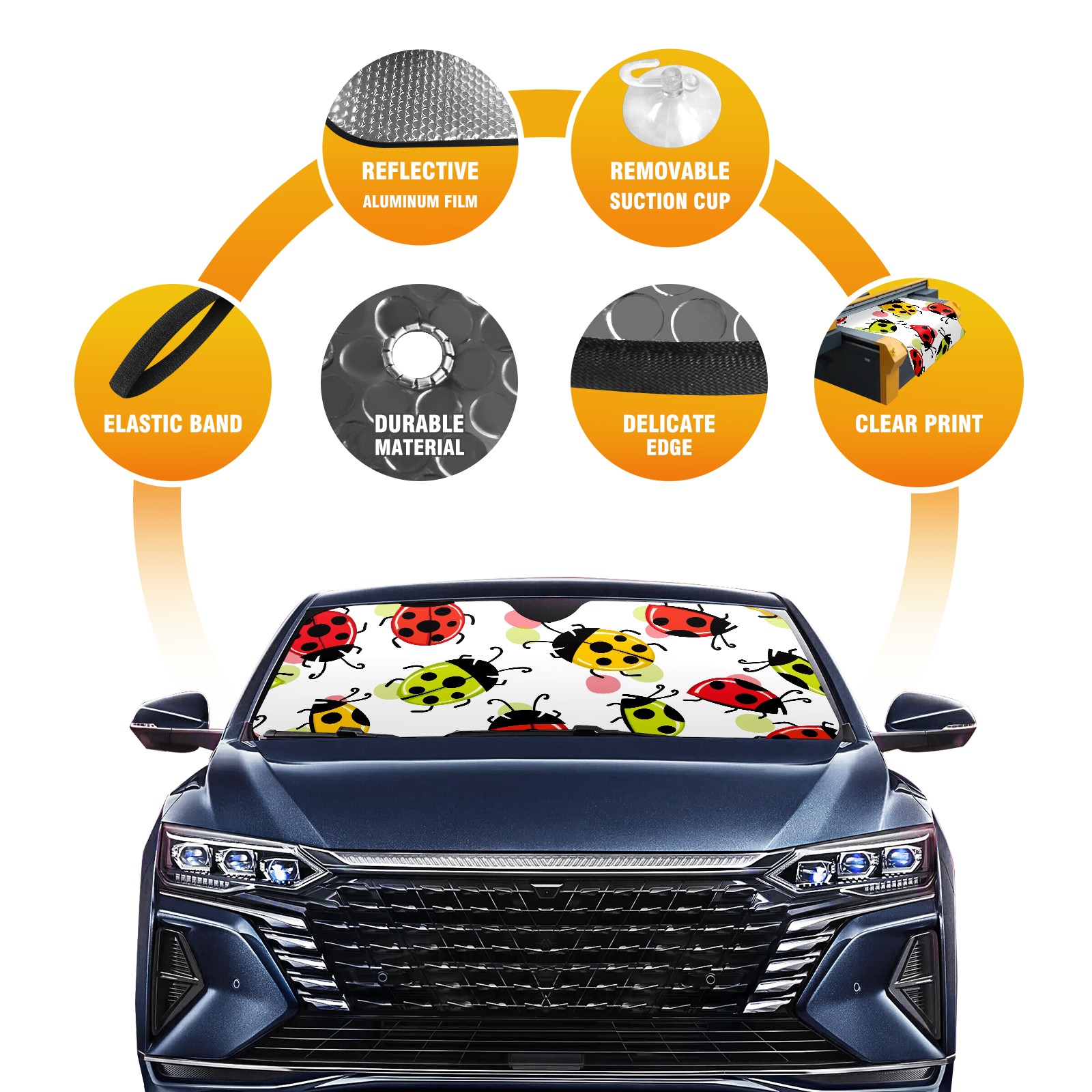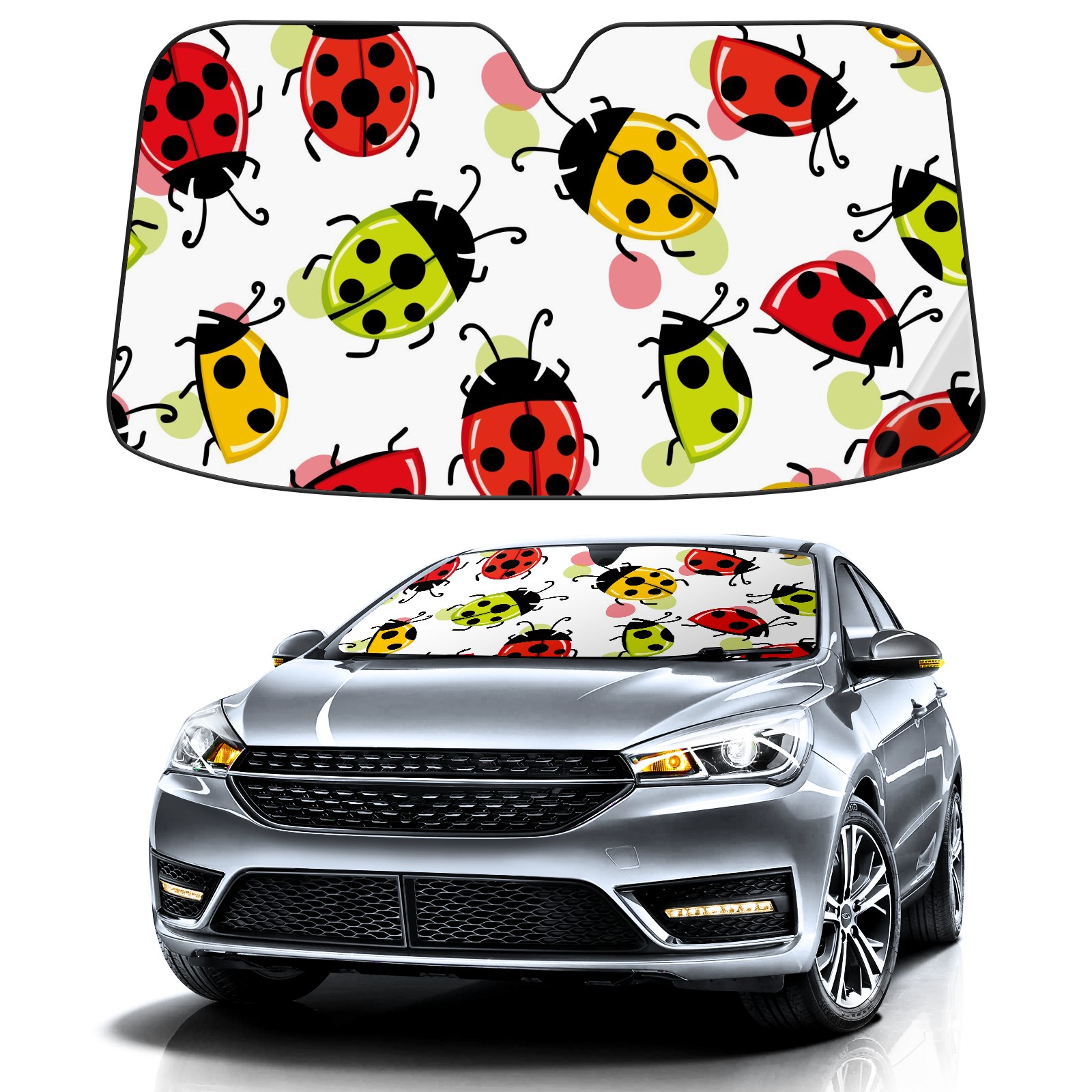 Car Windshield Sun Shade For Front Window Cute Ladybird On White Background Foldable Vehicle Windshield Car Sun Visor Covers Automotive Window Protector Car Camping Privacy Sun Blocker