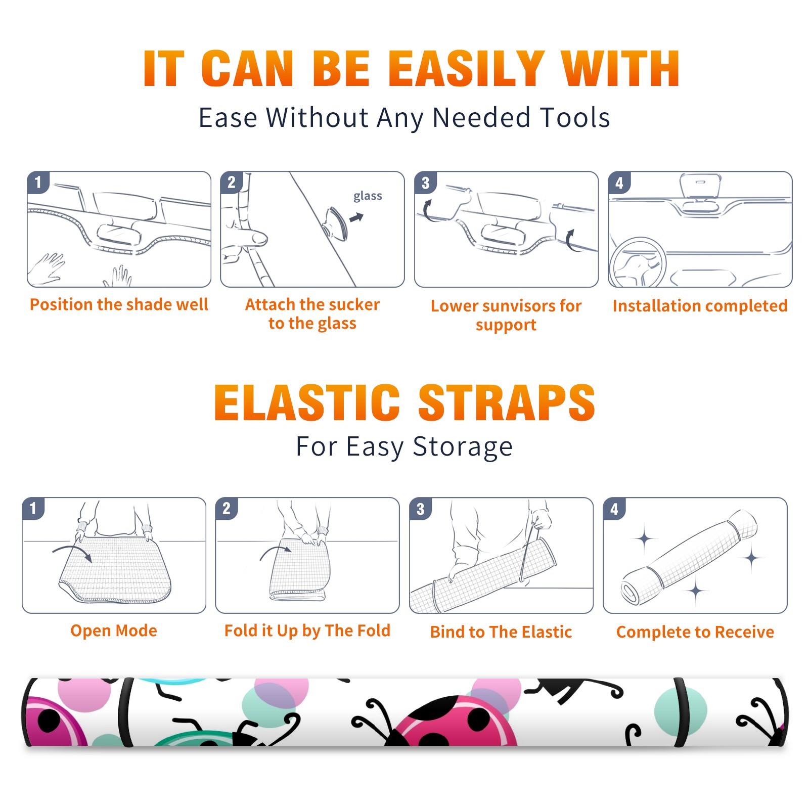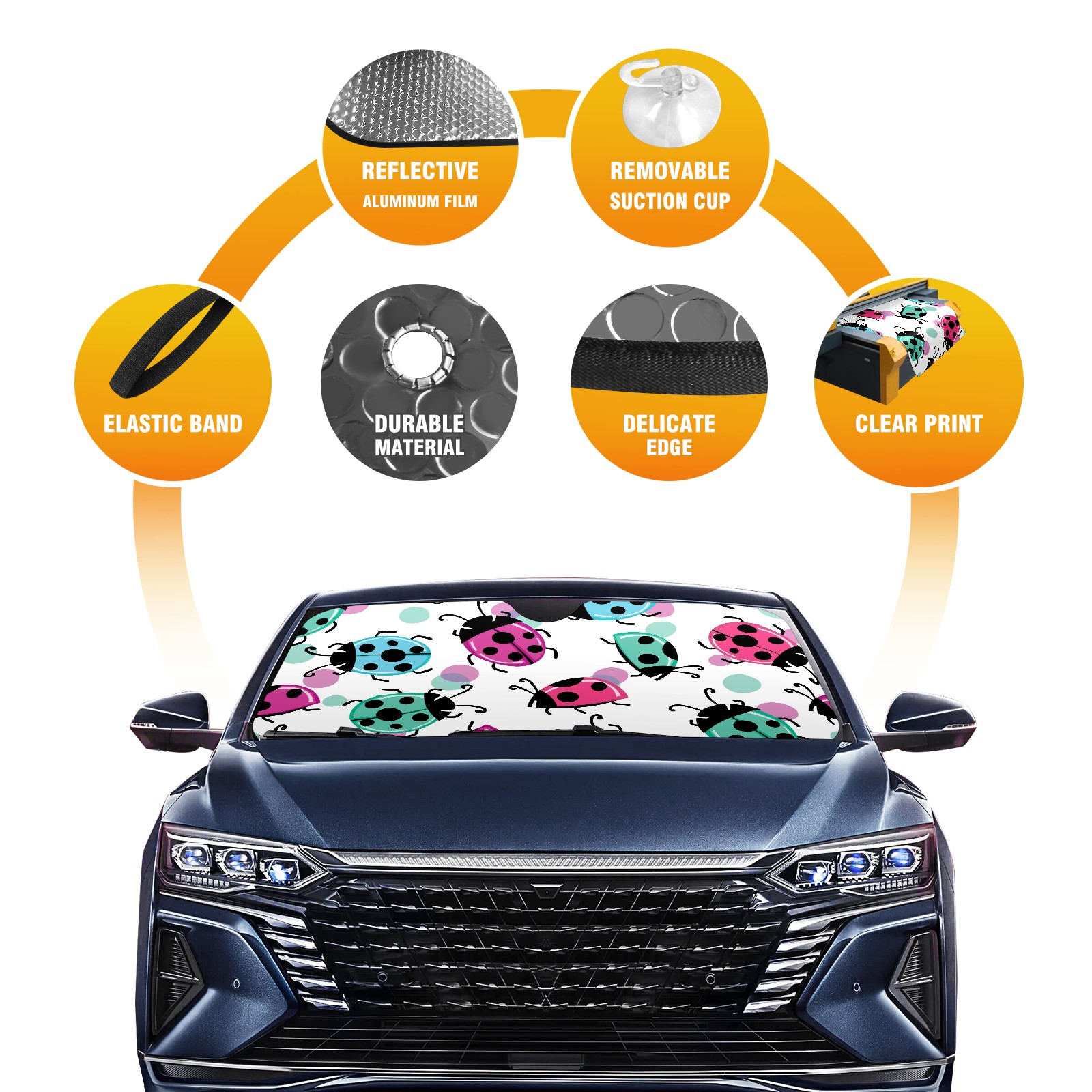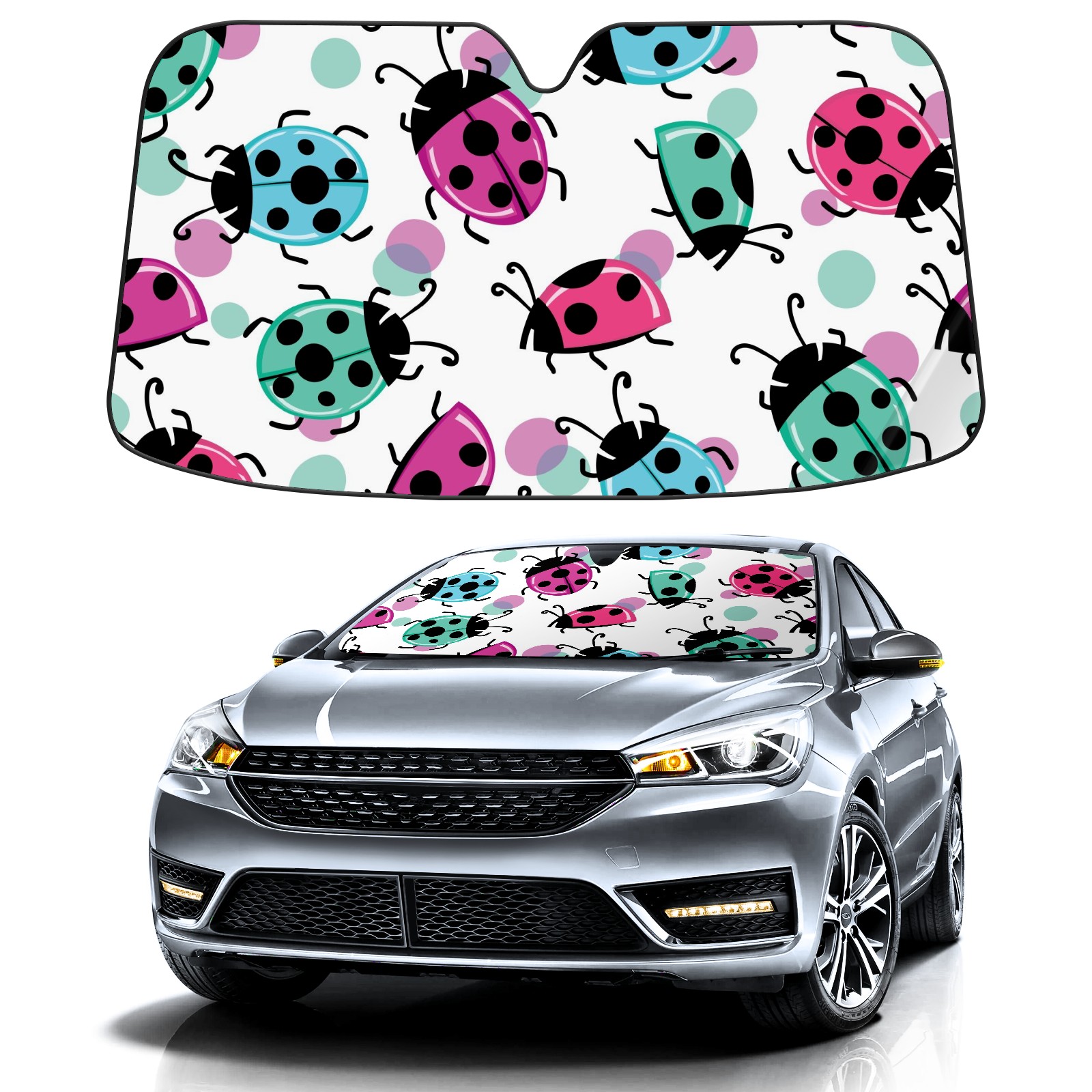 Car Windshield Sun Shade For Front Window Cute Colorful Ladybug Foldable Vehicle Windshield Car Sun Visor Covers Automotive Window Protector Car Camping Privacy Sun Blocker