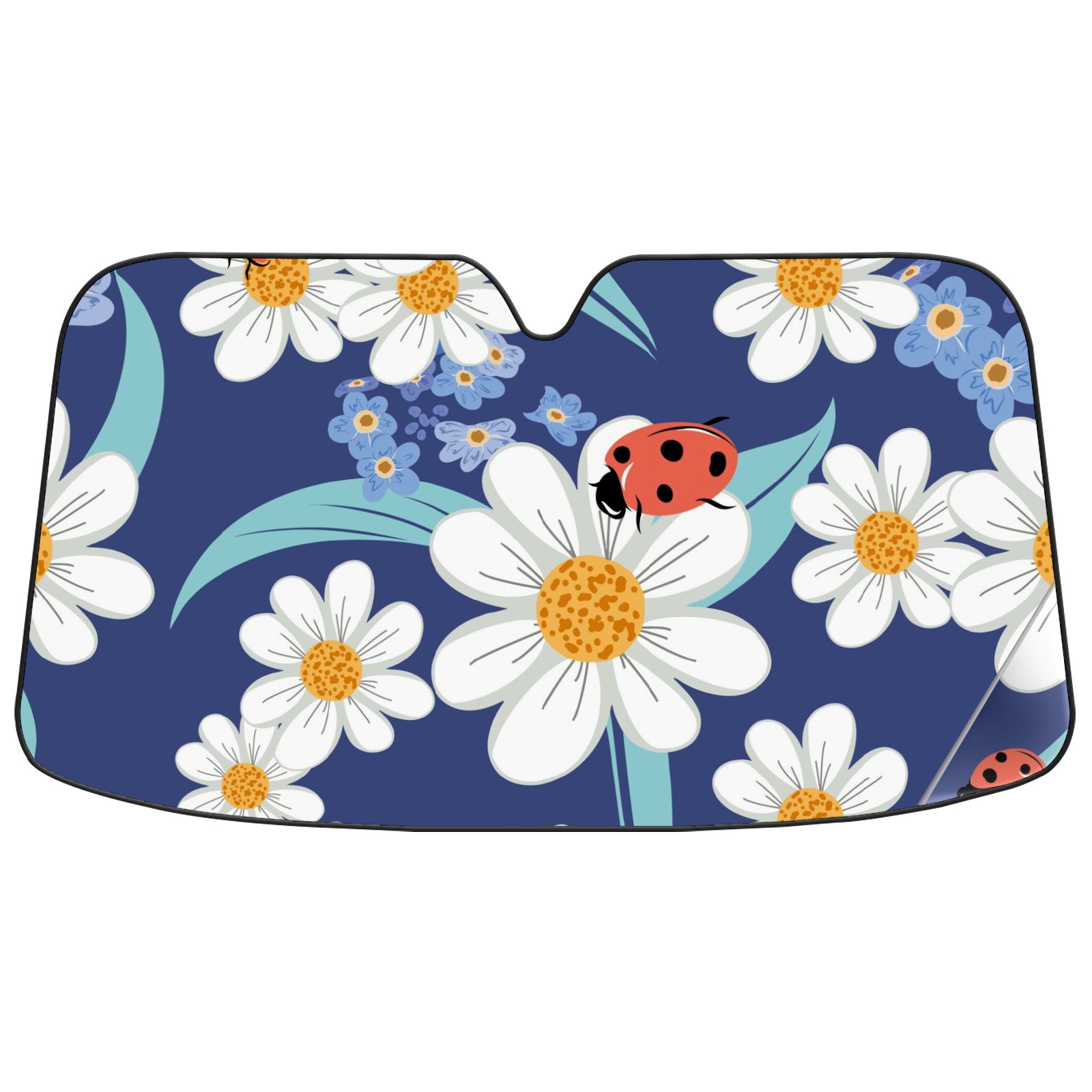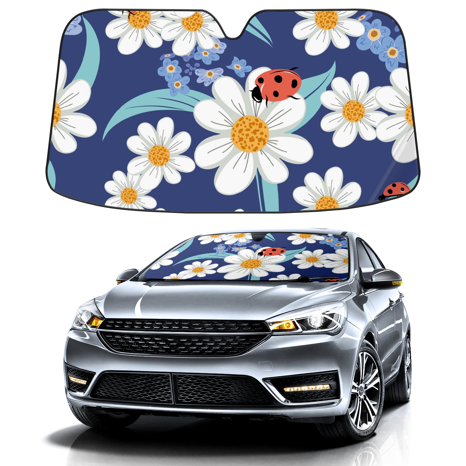 Car Windshield Sun Shade For Front Window Chamomile Floral Ladybug Foldable Vehicle Windshield Car Sun Visor Covers Automotive Window Protector Car Camping Privacy Sun Blocker