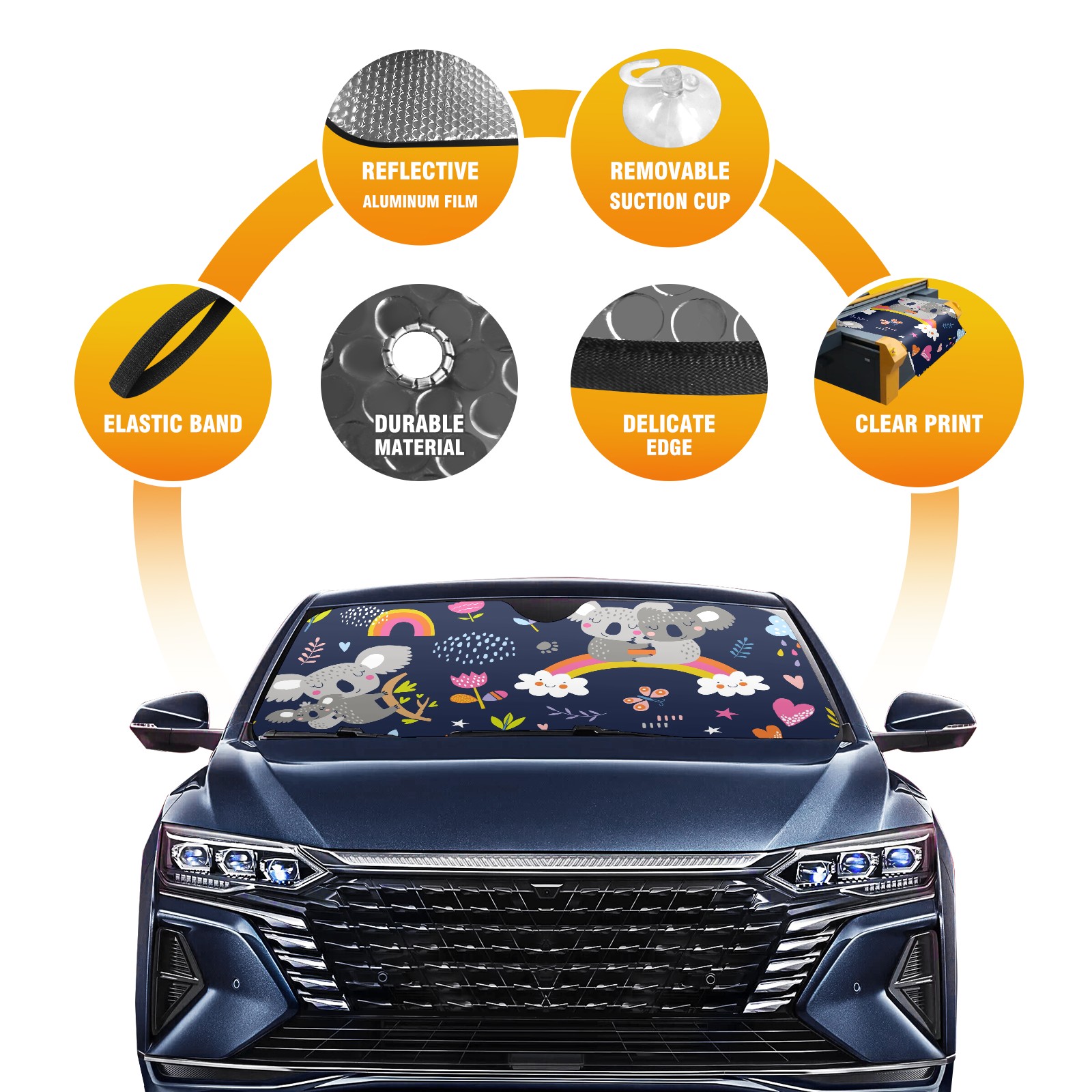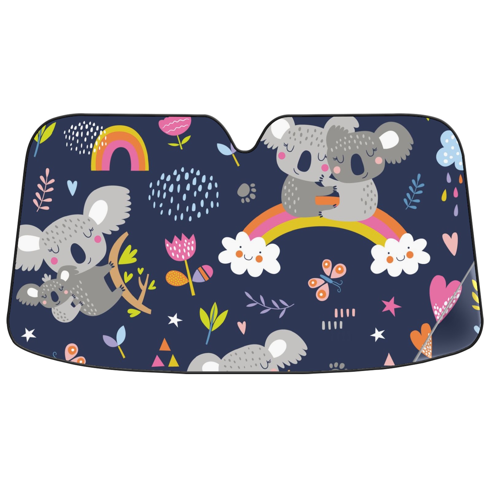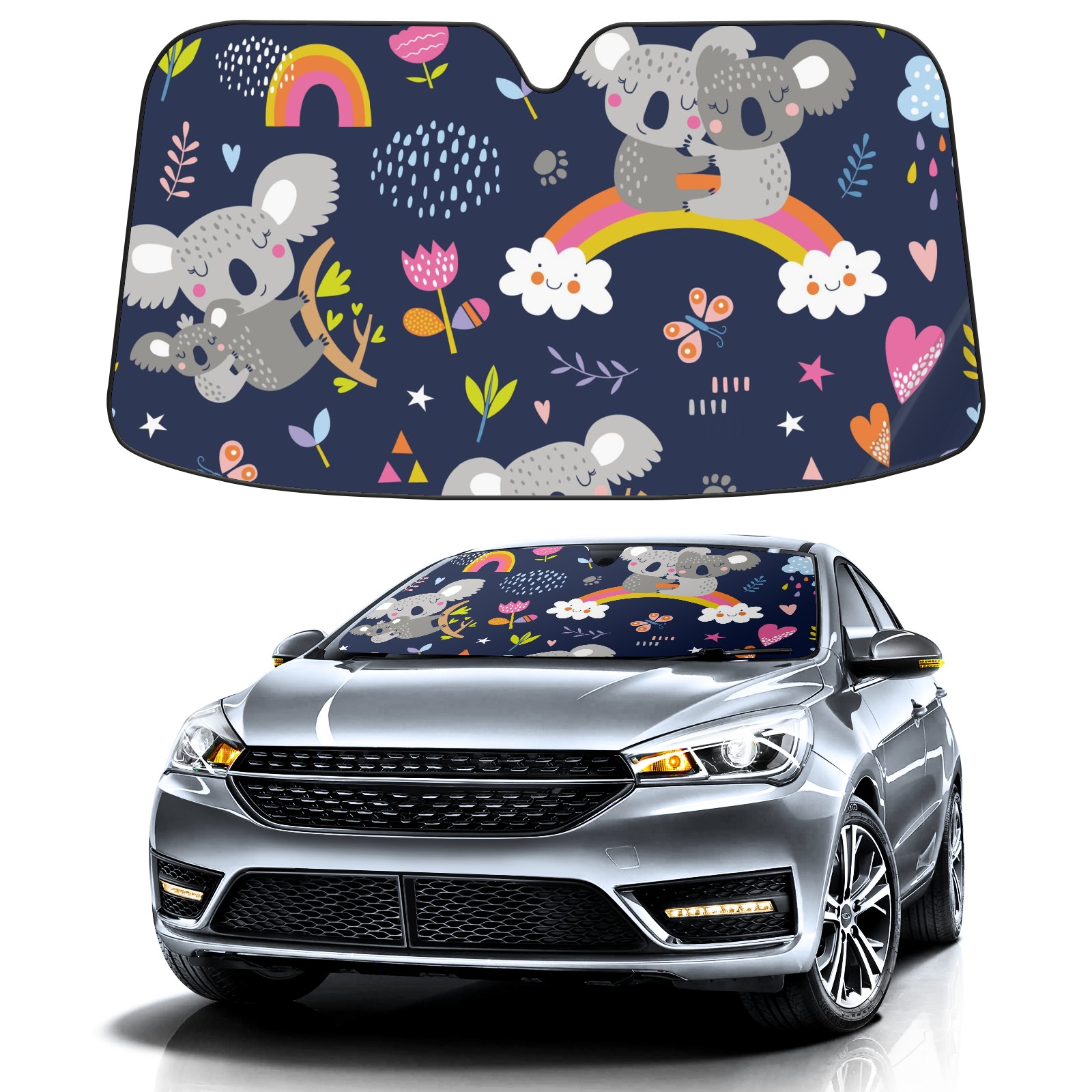Car Windshield Sun Shade For Front Window Cute Koala Rainbow Flower Foldable Vehicle Windshield Car Sun Visor Covers Automotive Window Protector Car Camping Privacy Sun Blocker