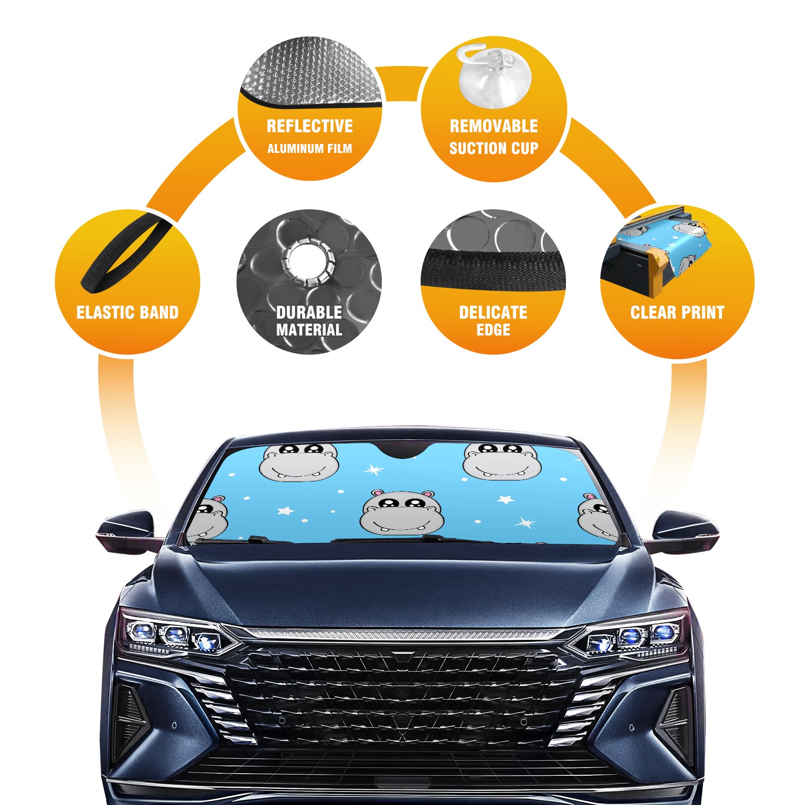 Car Windshield Sun Shade For Front Window Cute Hippo And Star Foldable Vehicle Windshield Car Sun Visor Covers Automotive Window Protector Car Camping Privacy Sun Blocker