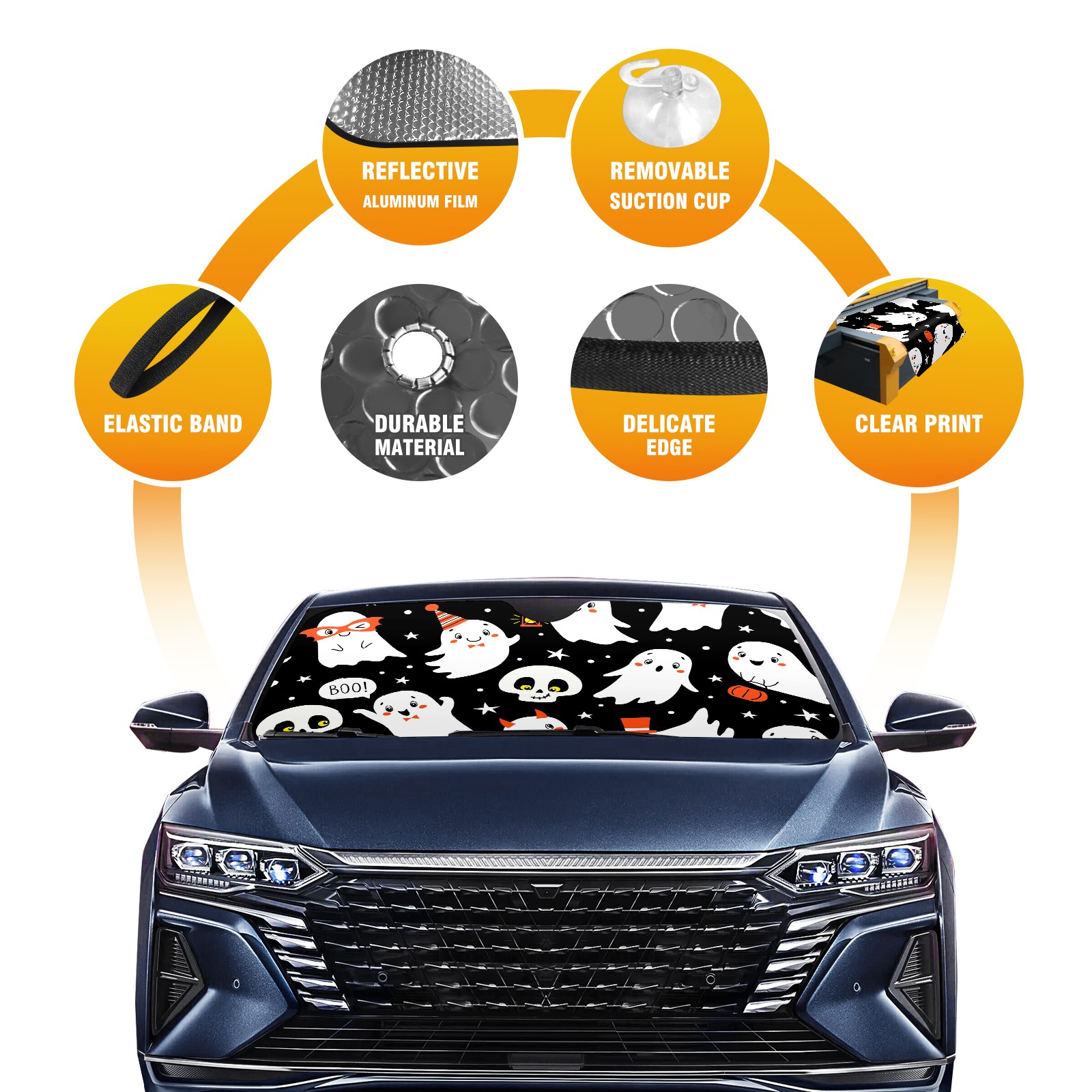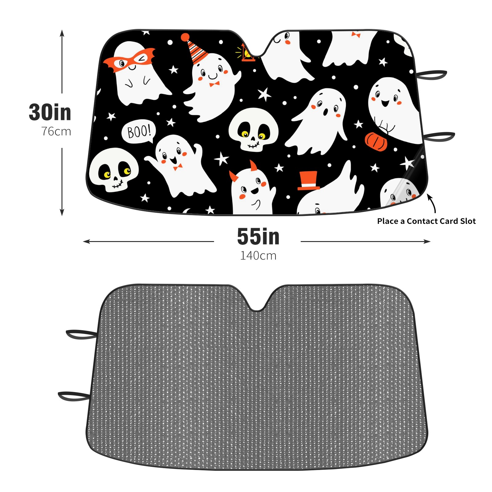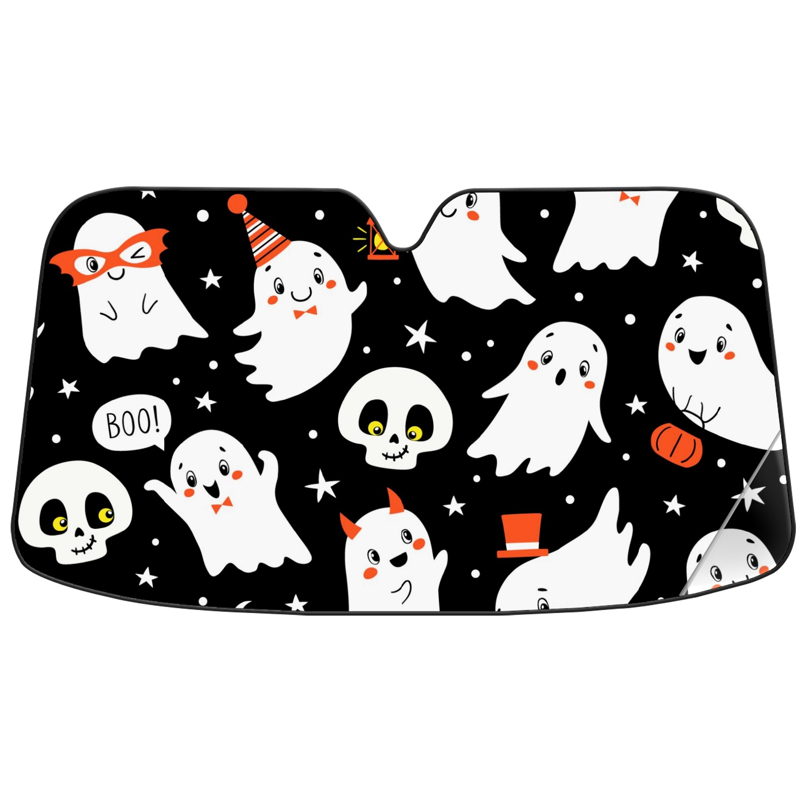 Car Windshield Sun Shade For Front Window Cute Ghosts And Skulls On Black Background Foldable Vehicle Windshield Car Sun Visor Covers Automotive Window Protector Car Camping Privacy Sun Blocker