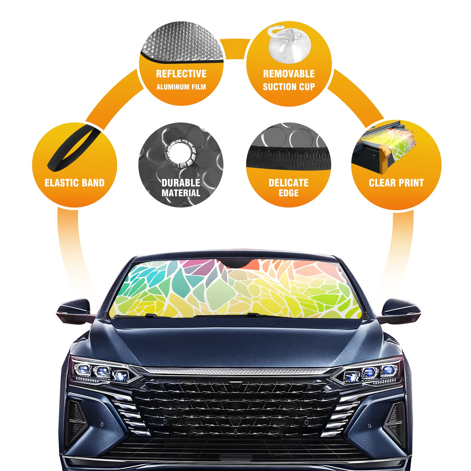 Car Windshield Sun Shade For Front Window Abstract Geometric Rainbow Foldable Vehicle Windshield Car Sun Visor Covers Automotive Window Protector Car Camping Privacy Sun Blocker