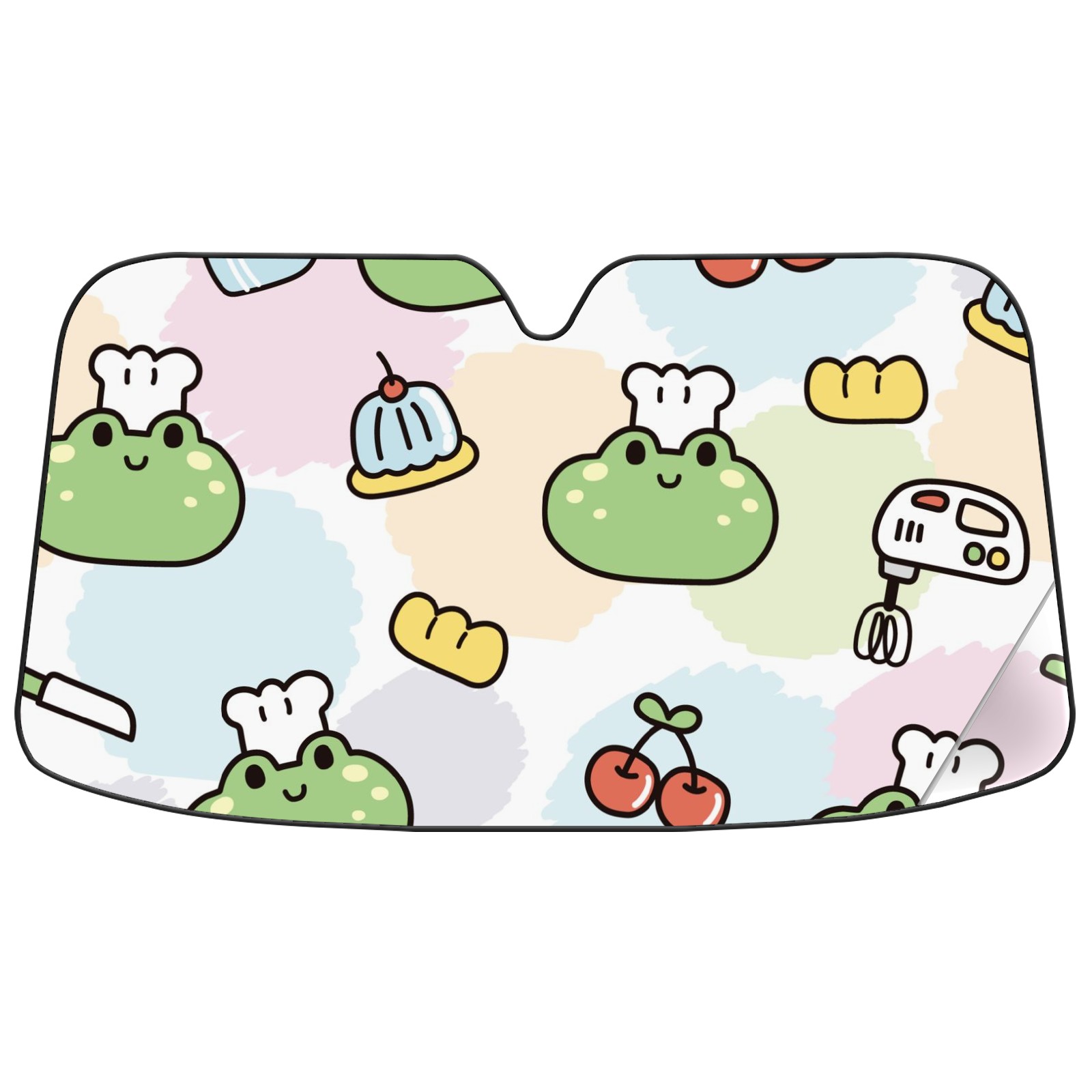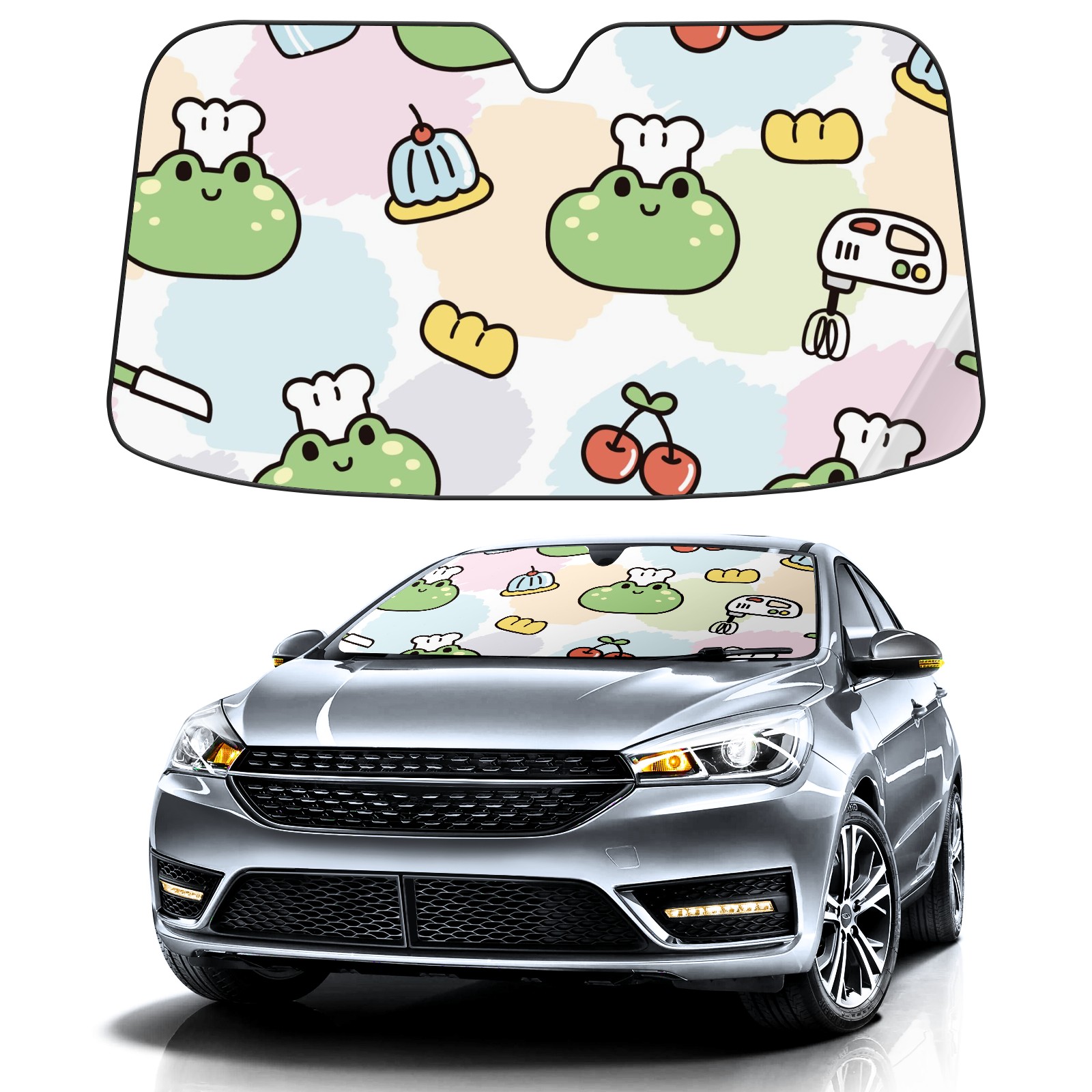 Car Windshield Sun Shade For Front Window Cute Face Frog Cake Cherry Foldable Vehicle Windshield Car Sun Visor Covers Automotive Window Protector Car Camping Privacy Sun Blocker