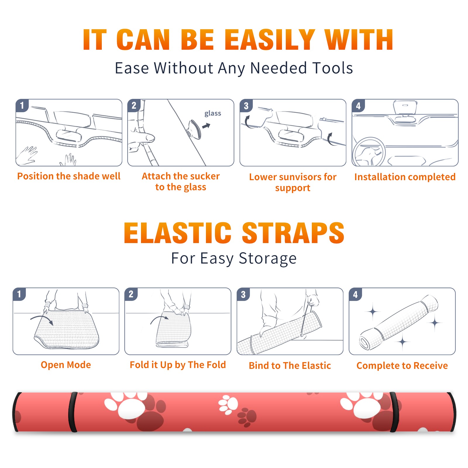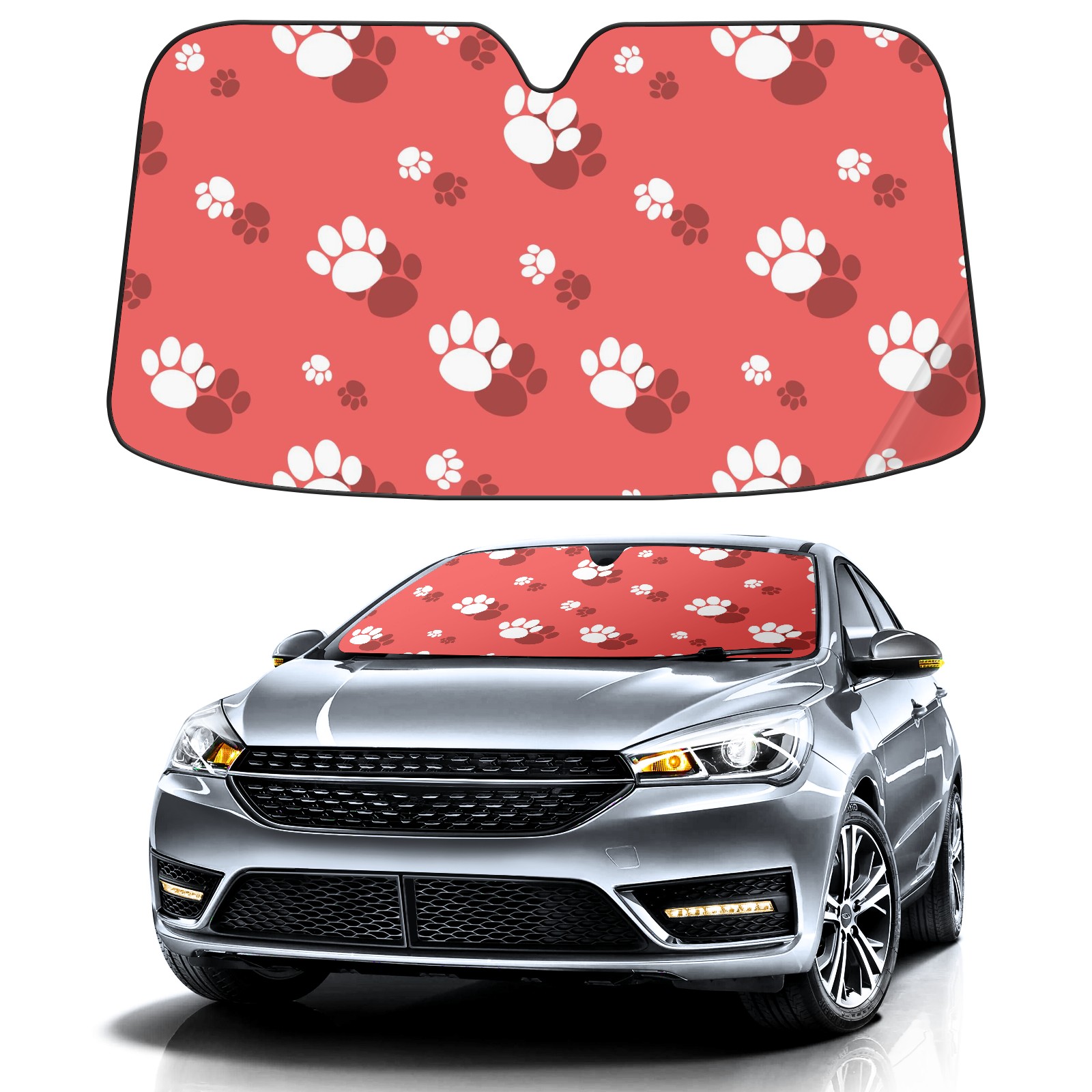 Car Windshield Sun Shade For Front Window Cute Dog Paw Print On Pink Background Foldable Vehicle Windshield Car Sun Visor Covers Automotive Window Protector Car Camping Privacy Sun Blocker