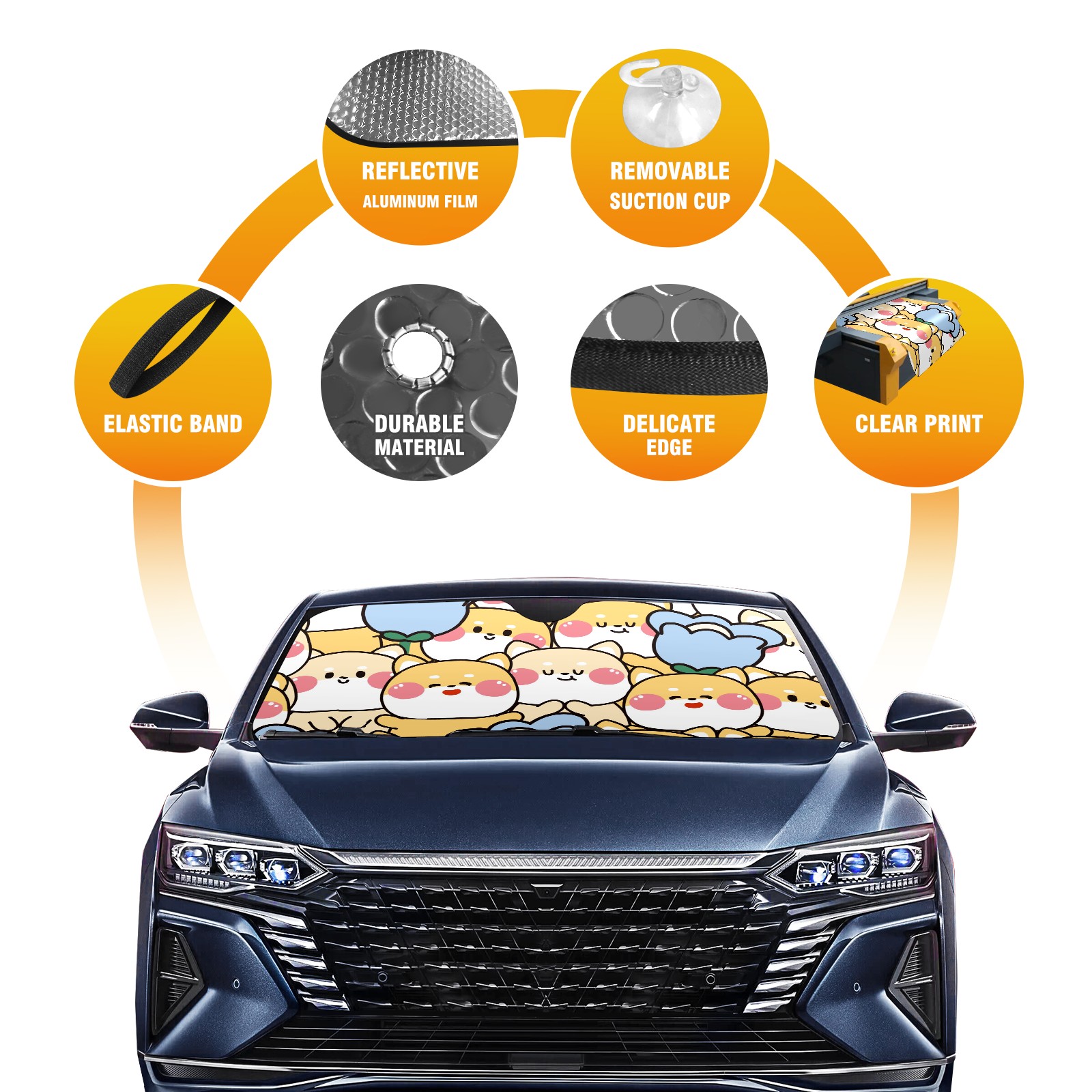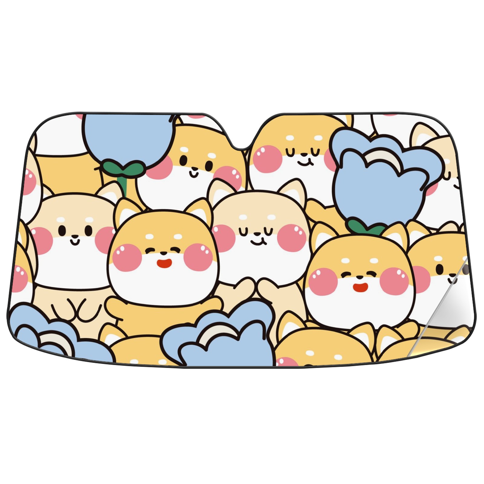 Car Windshield Sun Shade For Front Window Kawaii Dog Flower Foldable Vehicle Windshield Car Sun Visor Covers Automotive Window Protector Car Camping Privacy Sun Blocker