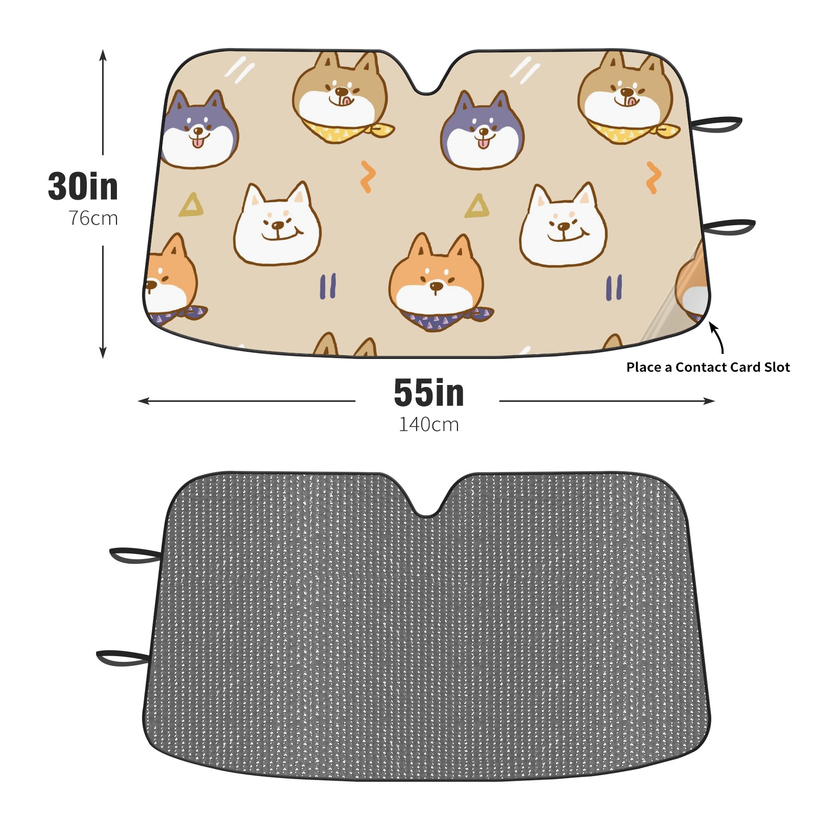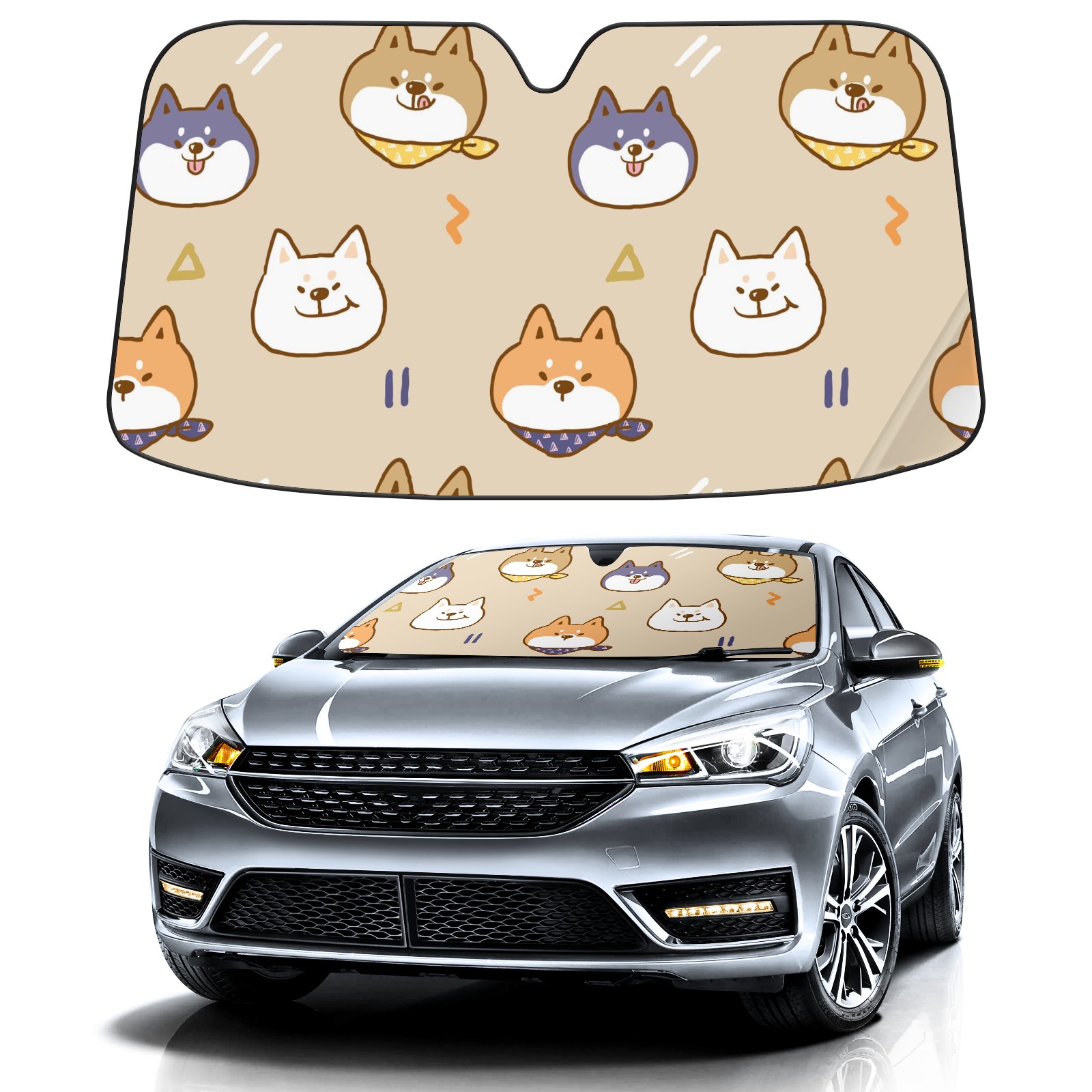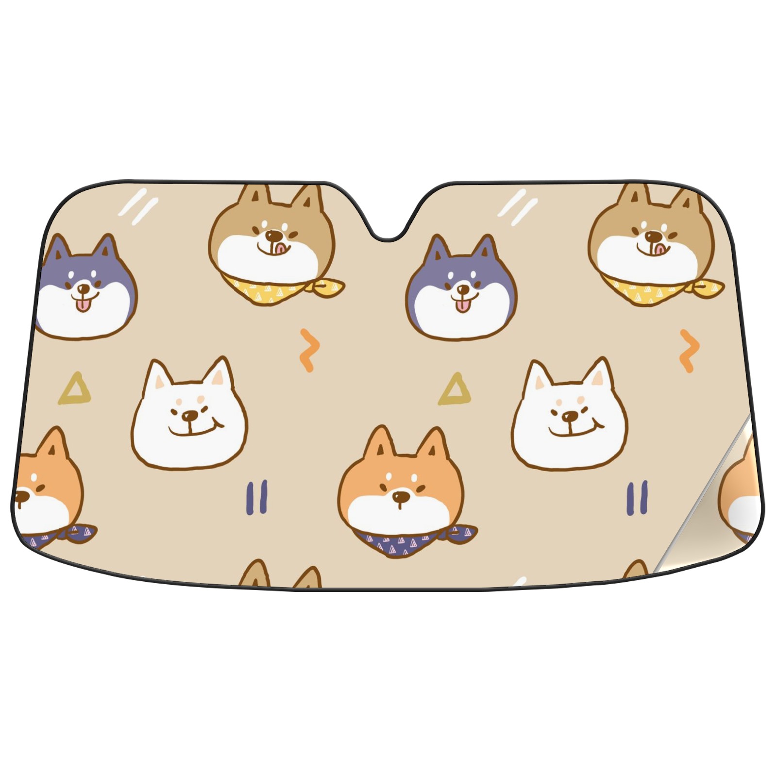 Car Windshield Sun Shade For Front Window Cute Shiba Inu Dog On Brown Background Foldable Vehicle Windshield Car Sun Visor Covers Automotive Window Protector Car Camping Privacy Sun Blocker
