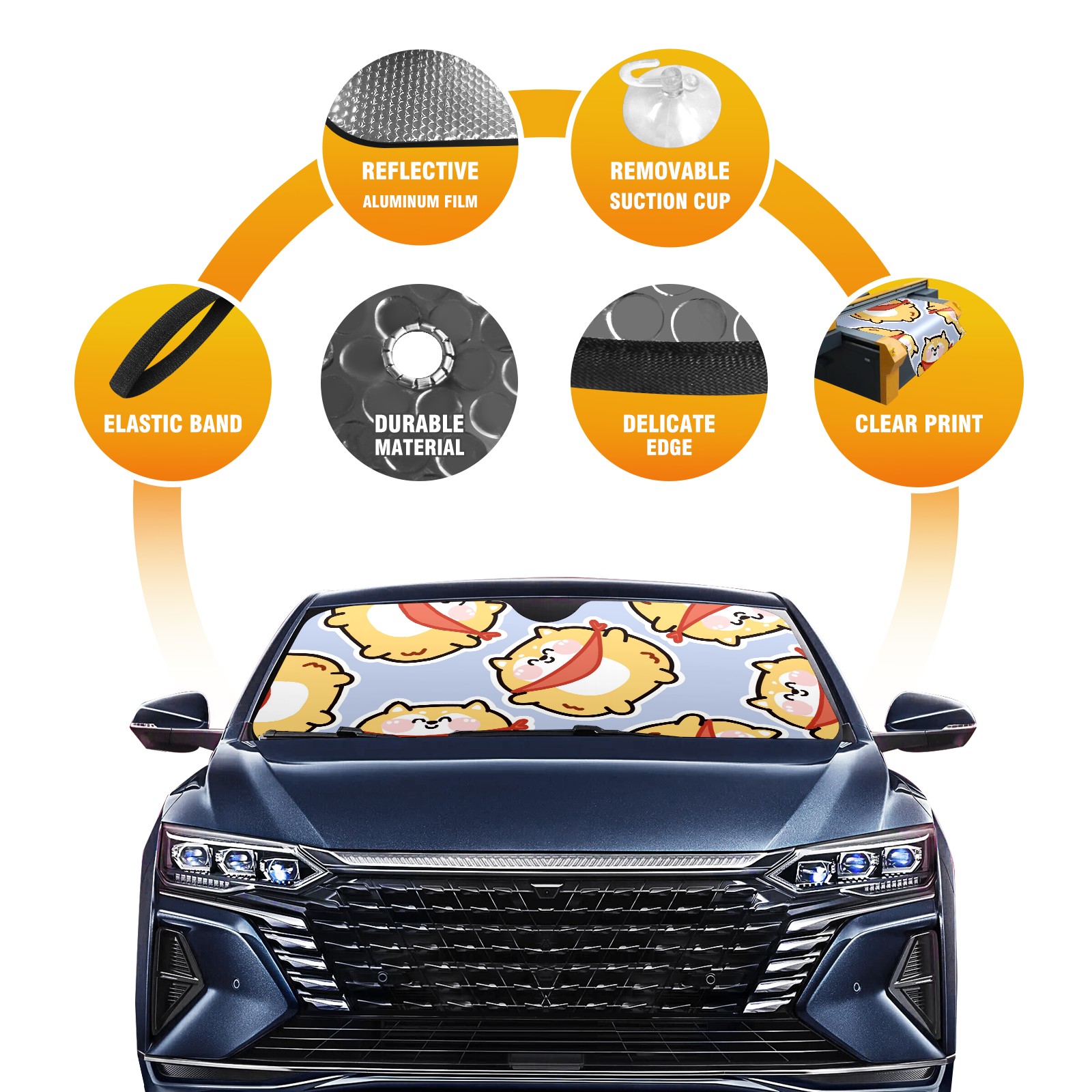 Car Windshield Sun Shade For Front Window Chubby Face Shiba Inu Dog Foldable Vehicle Windshield Car Sun Visor Covers Automotive Window Protector Car Camping Privacy Sun Blocker