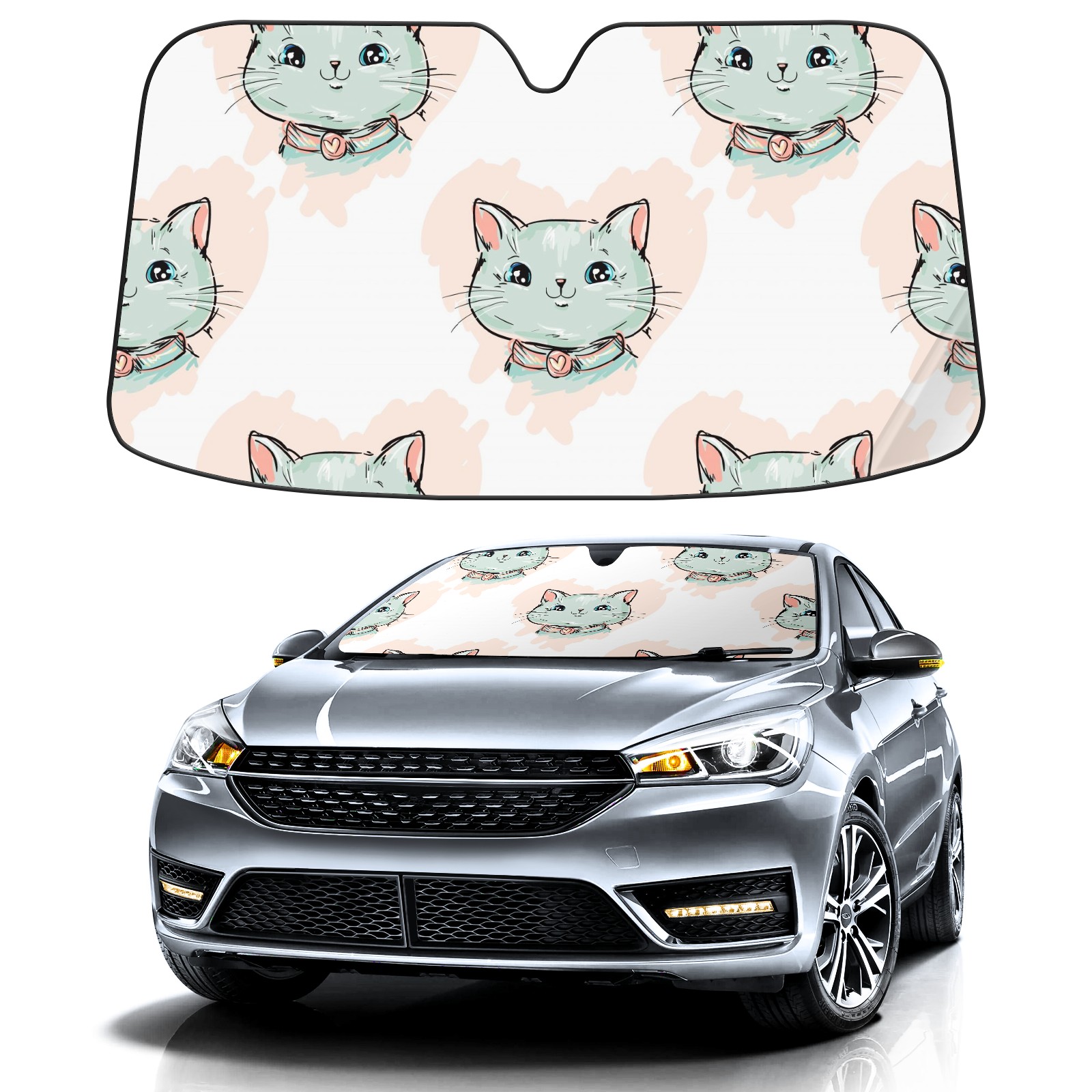 Car Windshield Sun Shade For Front Window Cute Cat Pattern Foldable Vehicle Windshield Car Sun Visor Covers Automotive Window Protector Car Camping Privacy Sun Blocker