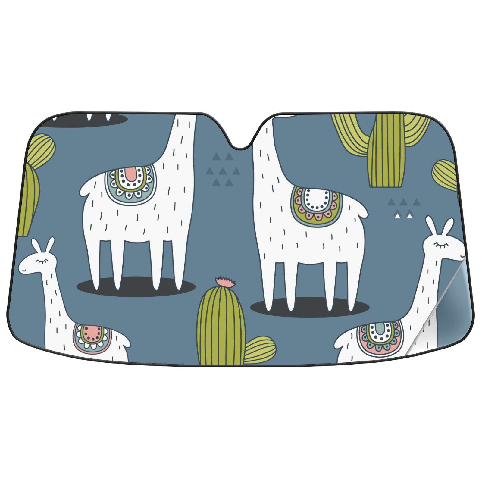Car Windshield Sun Shade For Front Window Cute Alpaca Cactus 1 Foldable Vehicle Windshield Car Sun Visor Covers Automotive Window Protector Car Camping Privacy Sun Blocker