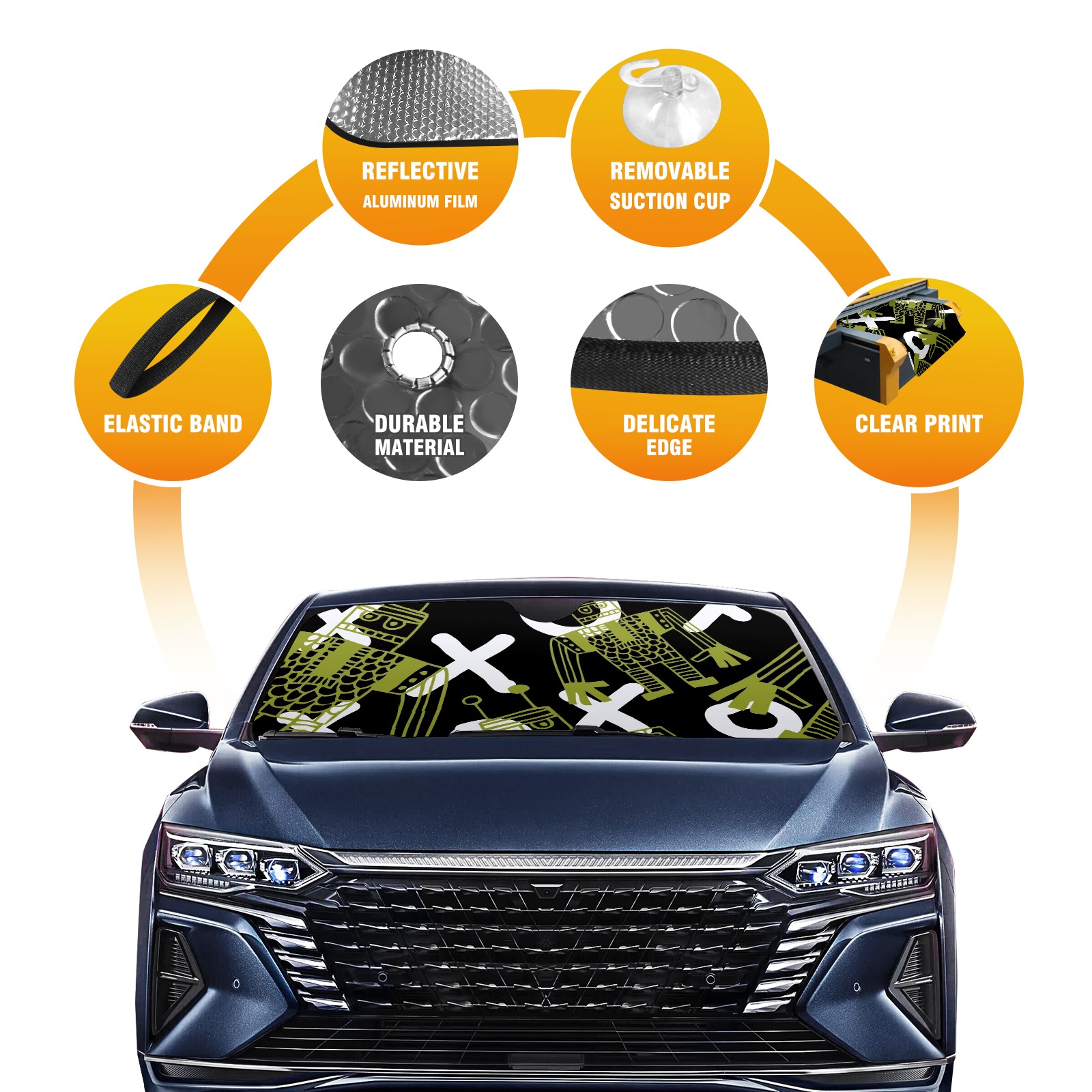 • Diameter /Size 63"L x 33.5"W Made from excellent materials which makes it sturdy and protects the car from the sun. Easy to use and pack. Makes the interior of the car cooler.You can easily stash the sunshade in the storage bag or store long term.It open and closes easy. Also the leather storage bag is durable and easy to put the umbrella back into.This windshield sunshade provides complete coverage and keeps your car interior cool under direct sun. It is easy to open and position under the windshield and around the rear-view mirror. Makes Your Car Easy To Identify, Perfect For Finding Your Car In Crowded Parking Lots And Garages.Great Choice: It Is A Great Gift For Dad, Boyfriend, Brother, Brother And Uncle, Friends, Classmates, Family And So On. Notice: Due To Difference Computer Monitors, The Color Maybe Slightly Different From Picture. As Different Measurement Methods, Measurement Data Will Float Within 2%.I Hope You Understand. If You Have Any Question About The Item Please Do Not Hesitate To Contact Us Immediately And We Will Give You A Satisfactory Reply Within 24 Hours.