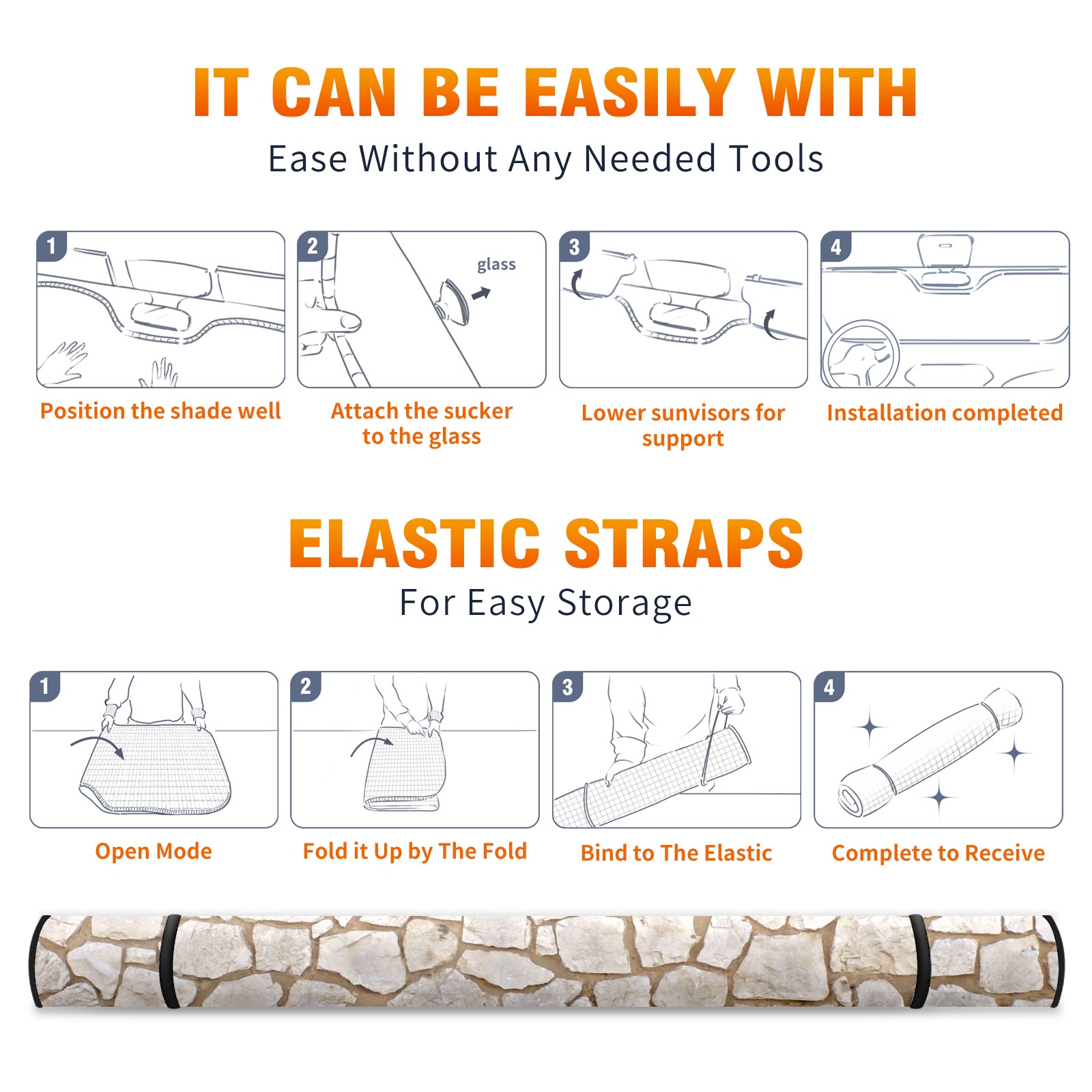 Car Windshield Sun Shade For Front Window Stone Foldable Vehicle Windshield Car Sun Visor Covers Automotive Window Protector Car Camping Privacy Sun Blocker