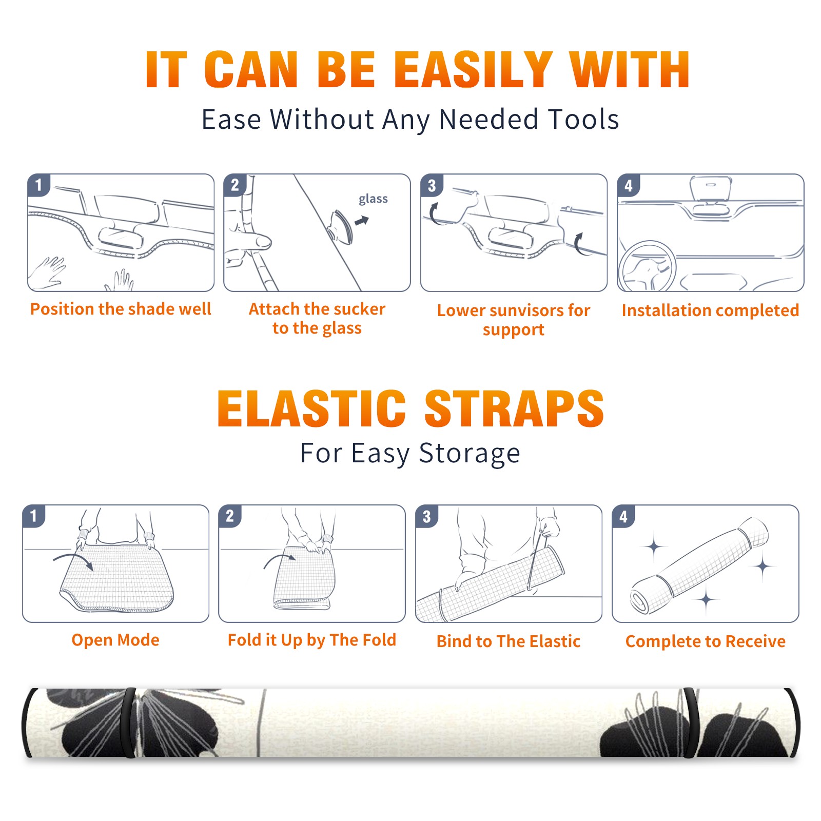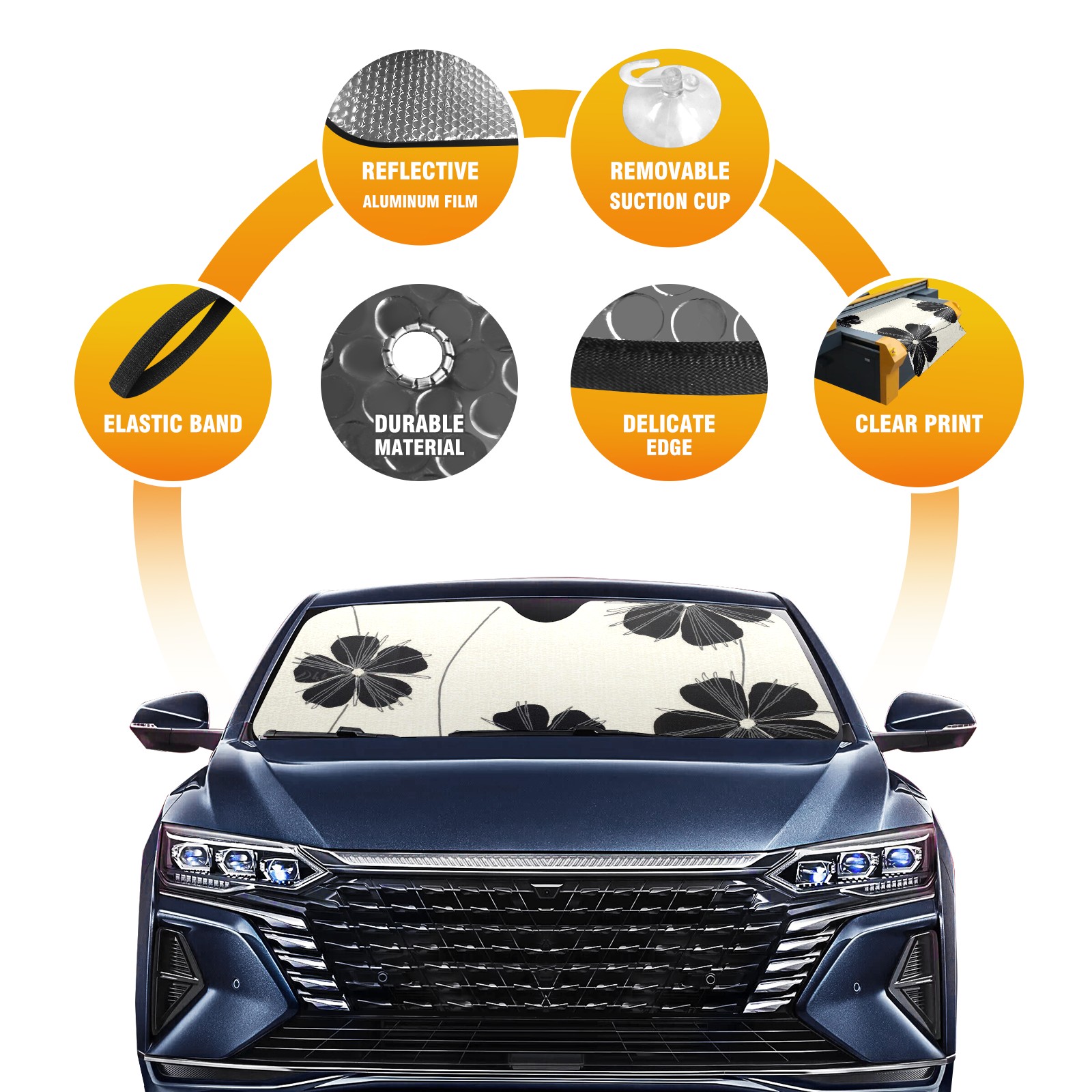 Car Windshield Sun Shade For Front Window Flower Print Foldable Vehicle Windshield Car Sun Visor Covers Automotive Window Protector Car Camping Privacy Sun Blocker