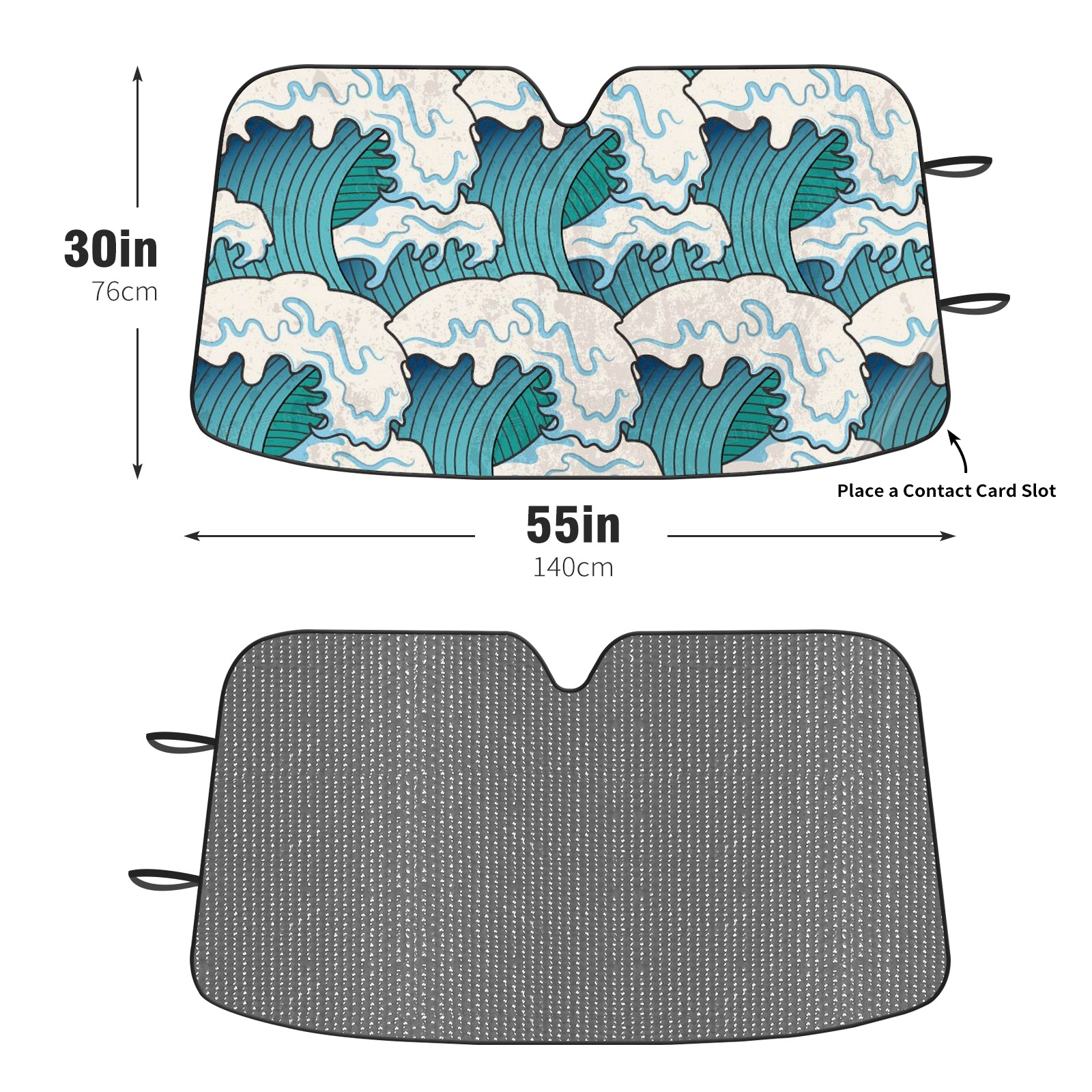Car Windshield Sun Shade For Front Window Wave Print Foldable Vehicle Windshield Car Sun Visor Covers Automotive Window Protector Car Camping Privacy Sun Blocker