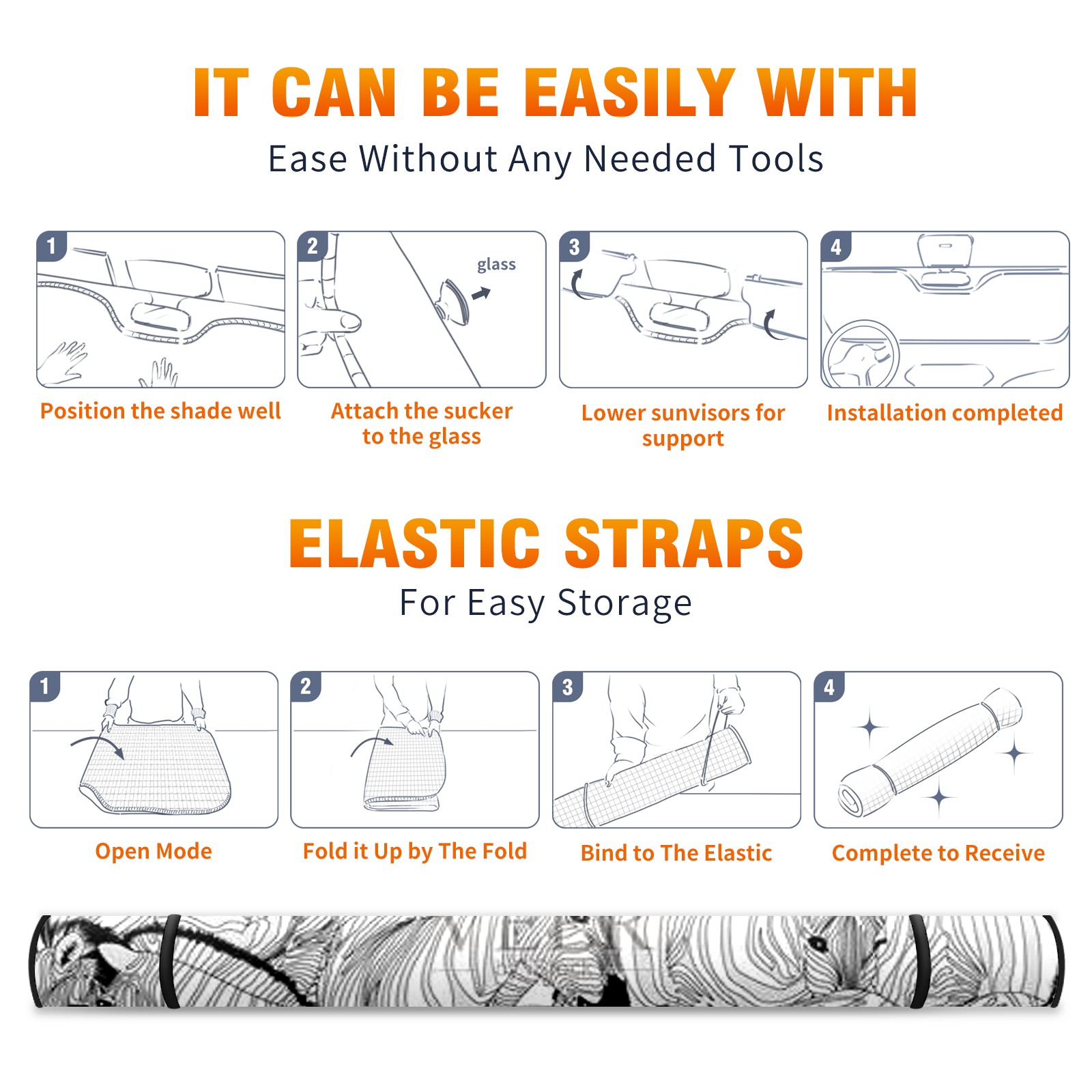 • Diameter /Size 63"L x 33.5"W Made from excellent materials which makes it sturdy and protects the car from the sun. Easy to use and pack. Makes the interior of the car cooler.You can easily stash the sunshade in the storage bag or store long term.It open and closes easy. Also the leather storage bag is durable and easy to put the umbrella back into.This windshield sunshade provides complete coverage and keeps your car interior cool under direct sun. It is easy to open and position under the windshield and around the rear-view mirror. Makes Your Car Easy To Identify, Perfect For Finding Your Car In Crowded Parking Lots And Garages.Great Choice: It Is A Great Gift For Dad, Boyfriend, Brother, Brother And Uncle, Friends, Classmates, Family And So On. Notice: Due To Difference Computer Monitors, The Color Maybe Slightly Different From Picture. As Different Measurement Methods, Measurement Data Will Float Within 2%.I Hope You Understand. If You Have Any Question About The Item Please Do Not Hesitate To Contact Us Immediately And We Will Give You A Satisfactory Reply Within 24 Hours.