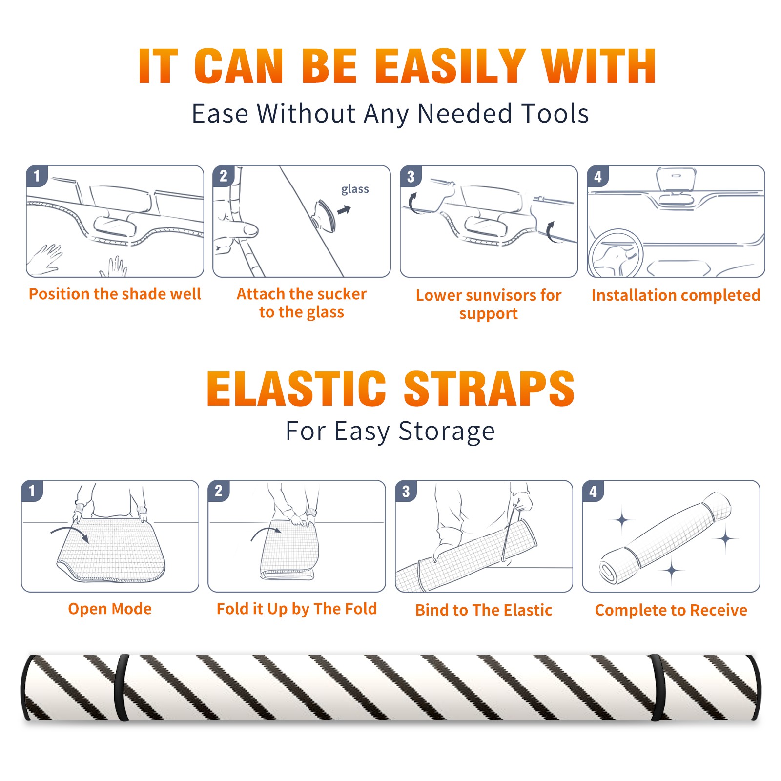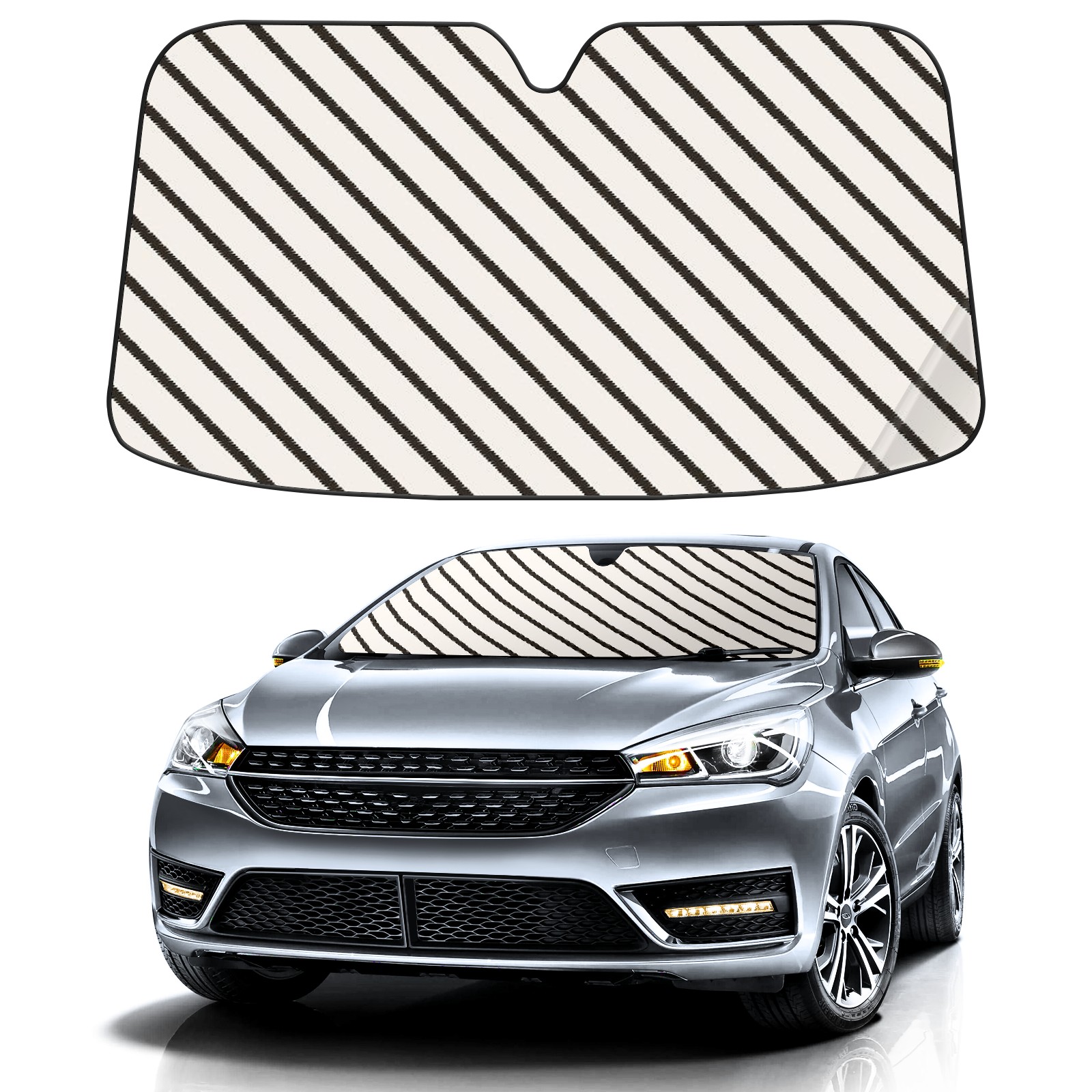 Car Windshield Sun Shade For Front Window Stripe Foldable Vehicle Windshield Car Sun Visor Covers Automotive Window Protector Car Camping Privacy Sun Blocker