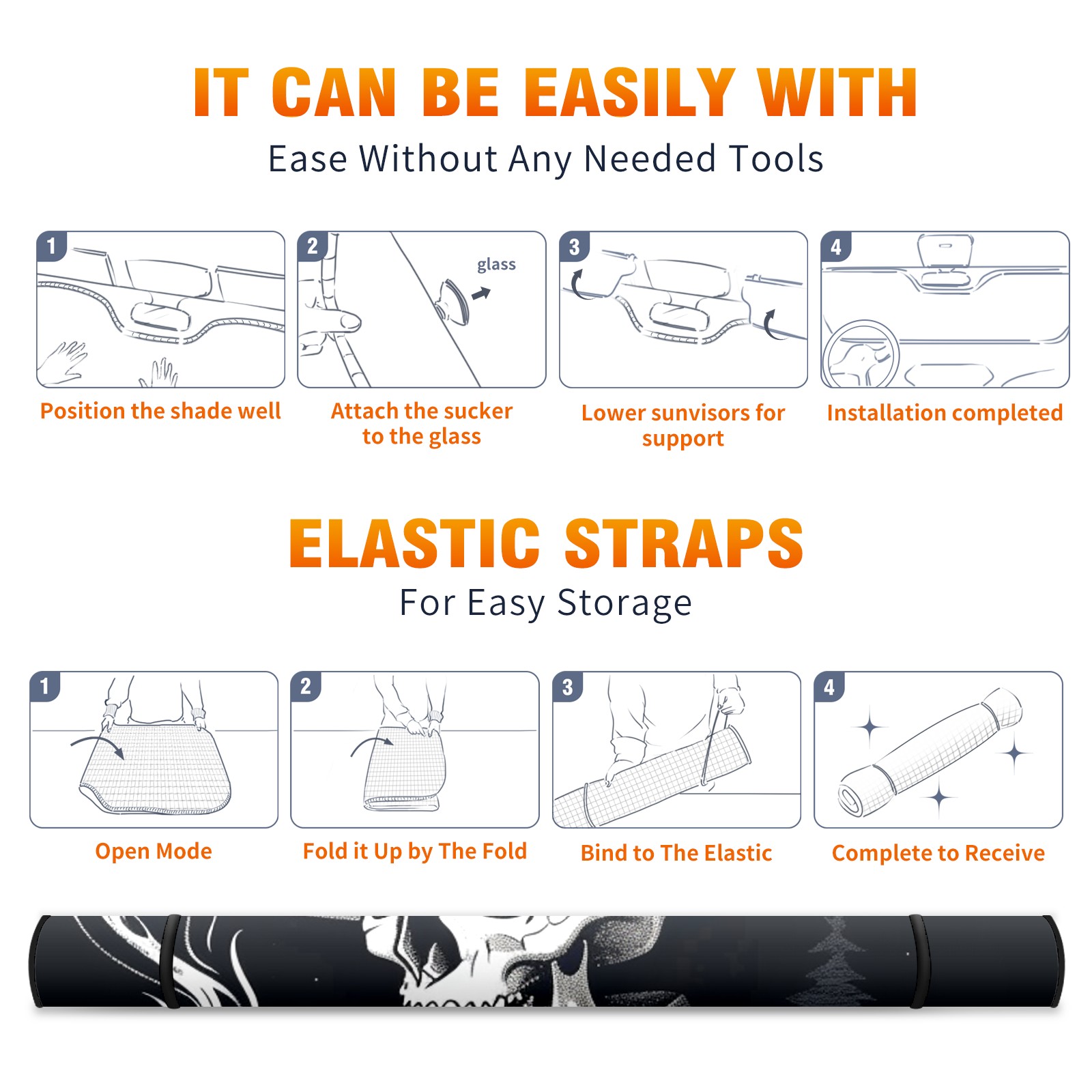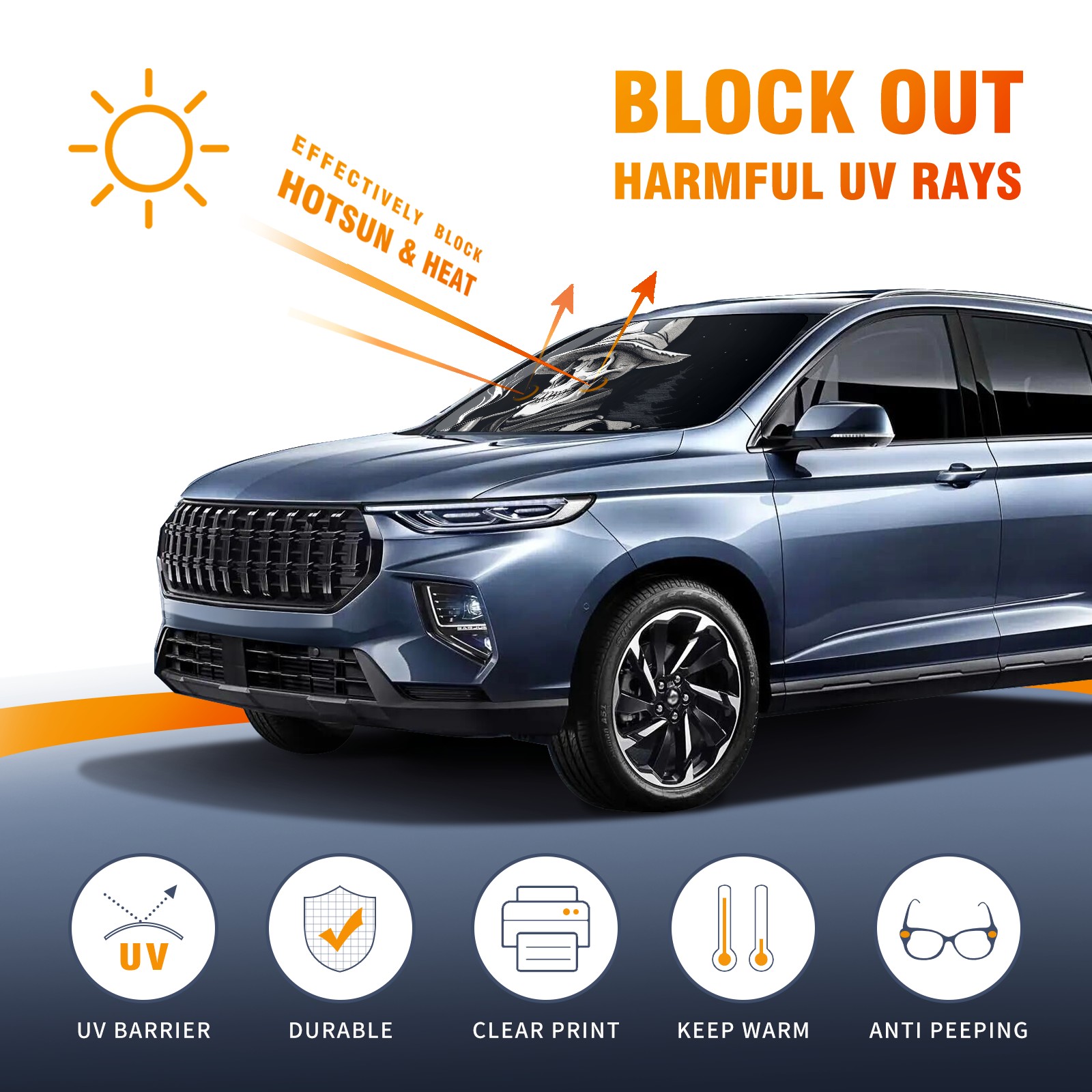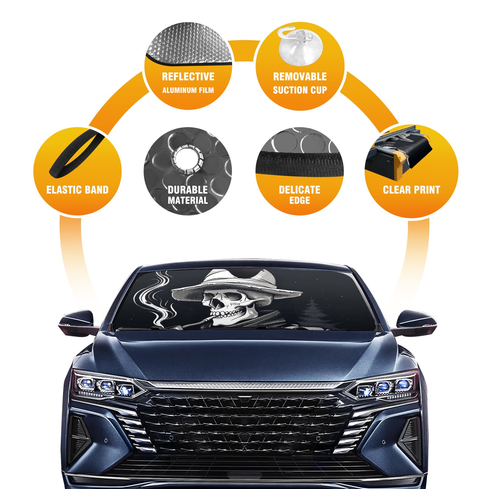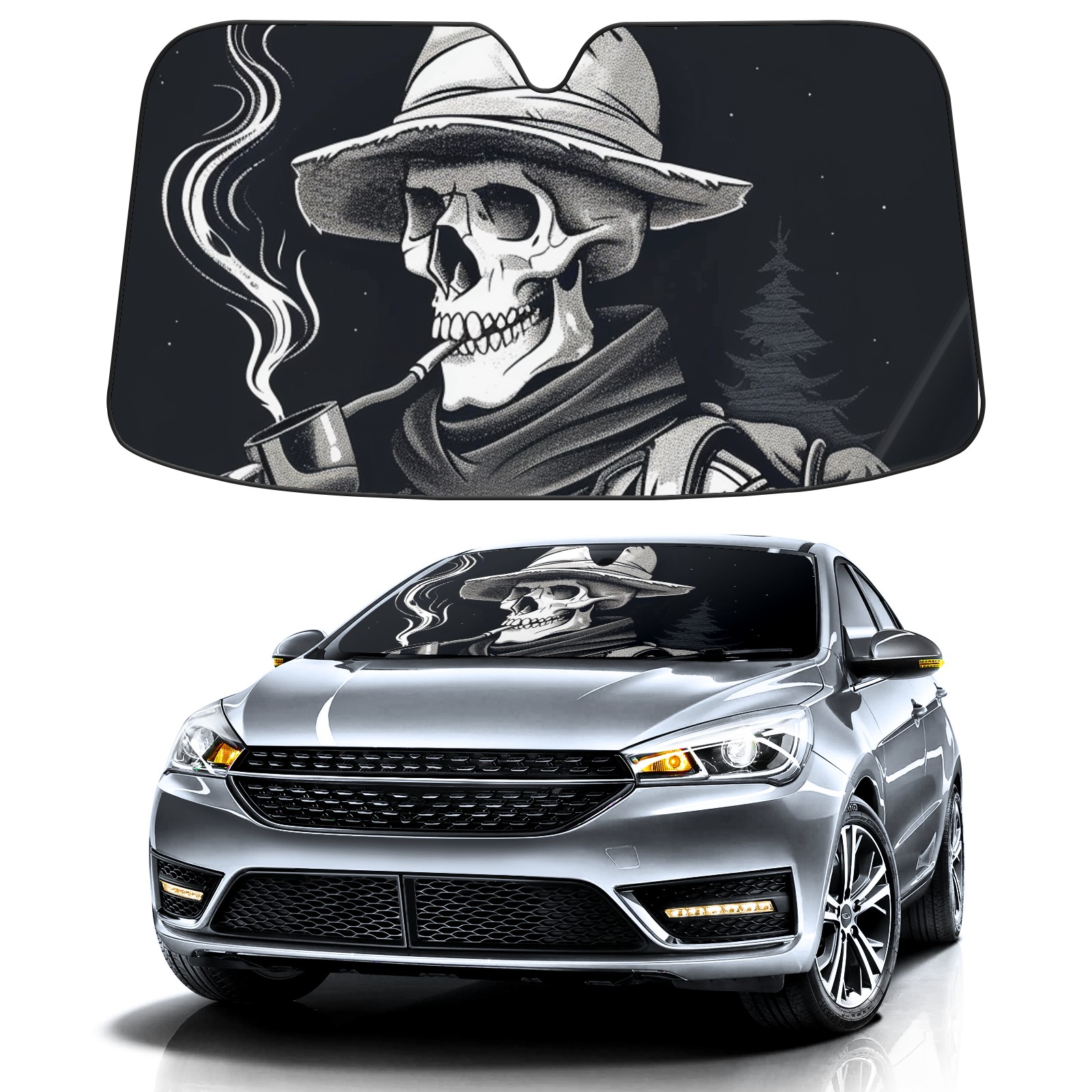 Car Windshield Sun Shade For Front Window Skull Foldable Vehicle Windshield Car Sun Visor Covers Automotive Window Protector Car Camping Privacy Sun Blocker