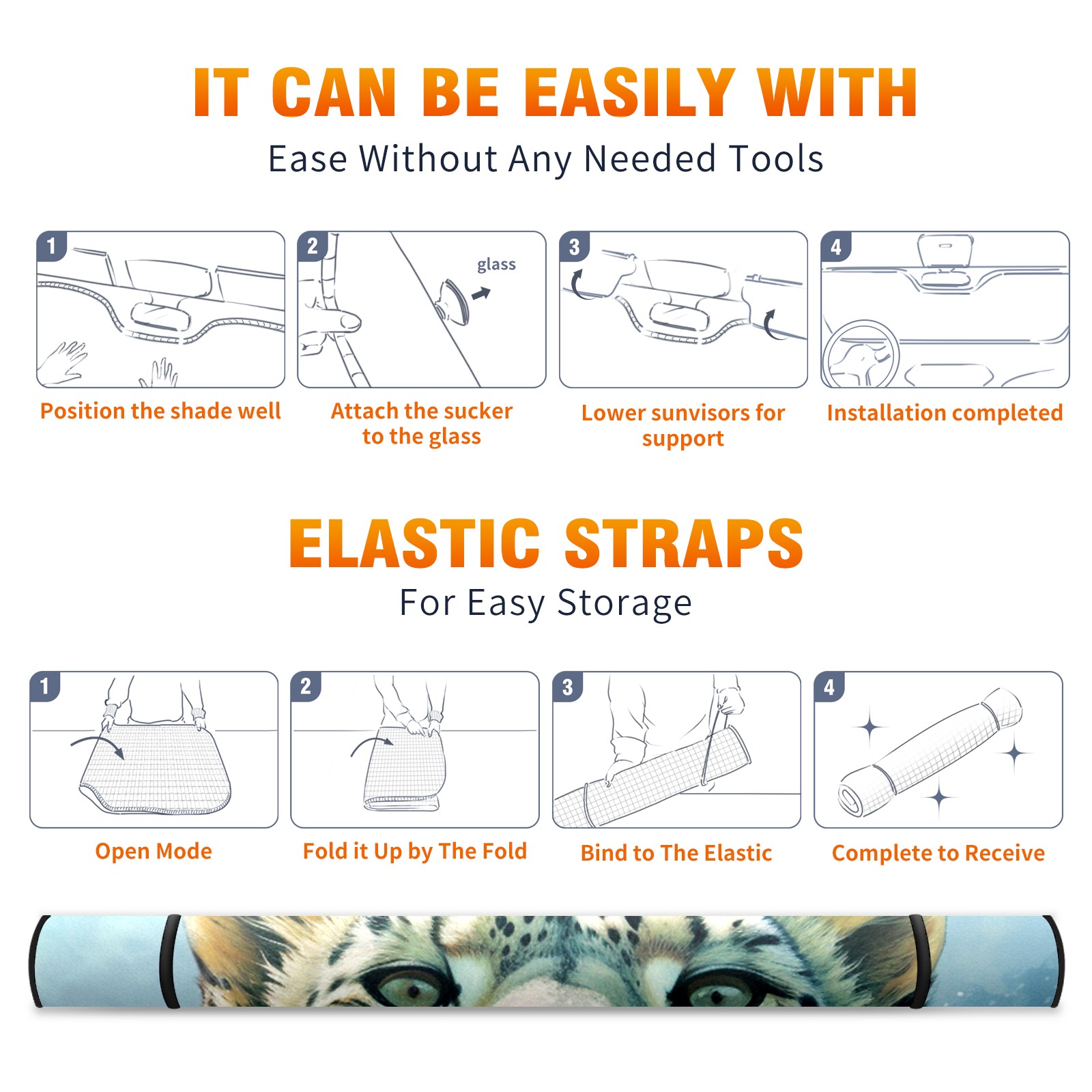 Car Windshield Sun Shade For Front Window Tiger Cat Foldable Vehicle Windshield Car Sun Visor Covers Automotive Window Protector Car Camping Privacy Sun Blocker