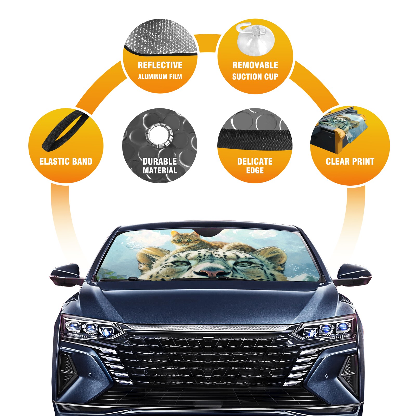 • Diameter /Size 63"L x 33.5"W Made from excellent materials which makes it sturdy and protects the car from the sun. Easy to use and pack. Makes the interior of the car cooler.You can easily stash the sunshade in the storage bag or store long term.It open and closes easy. Also the leather storage bag is durable and easy to put the umbrella back into.This windshield sunshade provides complete coverage and keeps your car interior cool under direct sun. It is easy to open and position under the windshield and around the rear-view mirror. Makes Your Car Easy To Identify, Perfect For Finding Your Car In Crowded Parking Lots And Garages.Great Choice: It Is A Great Gift For Dad, Boyfriend, Brother, Brother And Uncle, Friends, Classmates, Family And So On. Notice: Due To Difference Computer Monitors, The Color Maybe Slightly Different From Picture. As Different Measurement Methods, Measurement Data Will Float Within 2%.I Hope You Understand. If You Have Any Question About The Item Please Do Not Hesitate To Contact Us Immediately And We Will Give You A Satisfactory Reply Within 24 Hours.