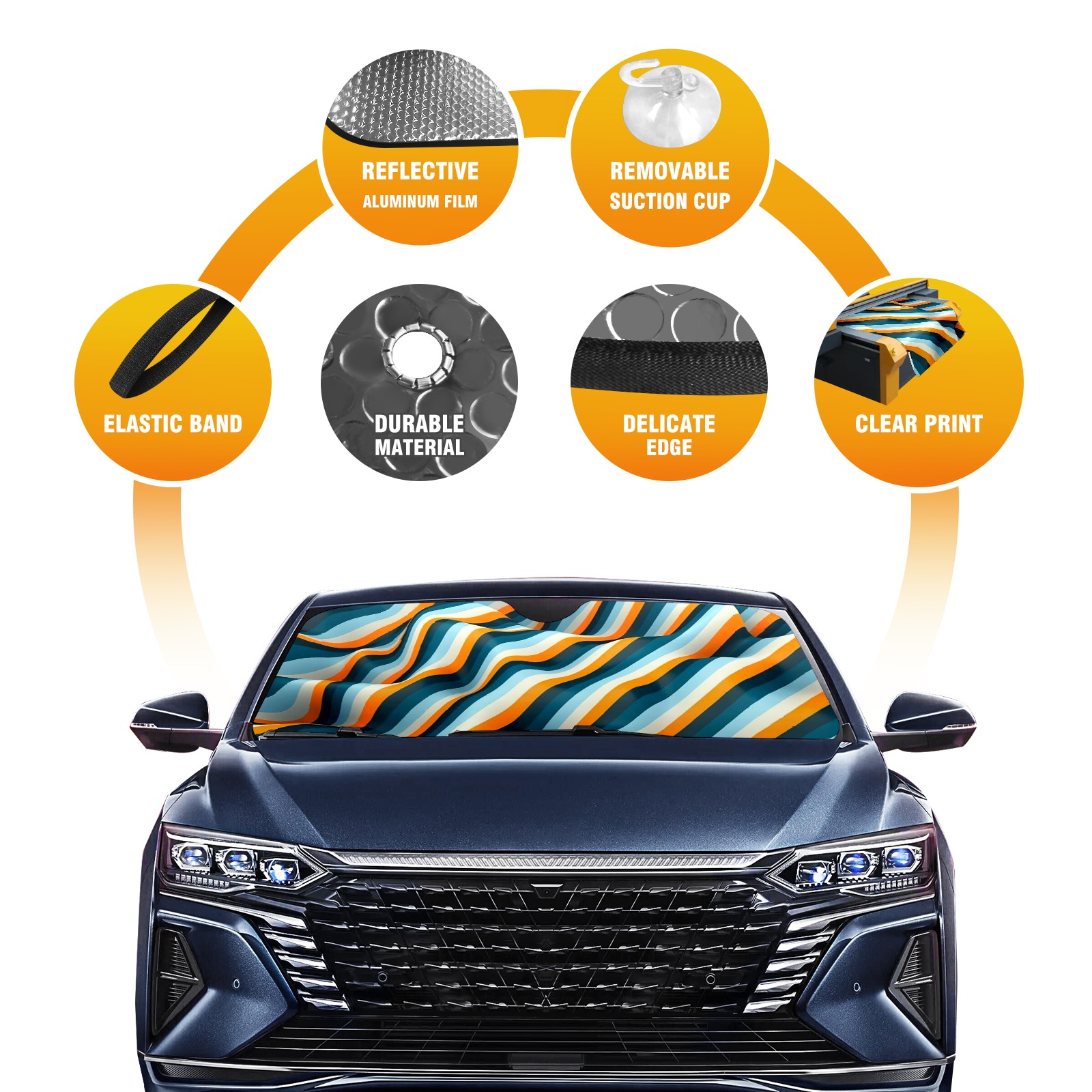 Car Windshield Sun Shade For Front Window Ripple Wave Foldable Vehicle Windshield Car Sun Visor Covers Automotive Window Protector Car Camping Privacy Sun Blocker