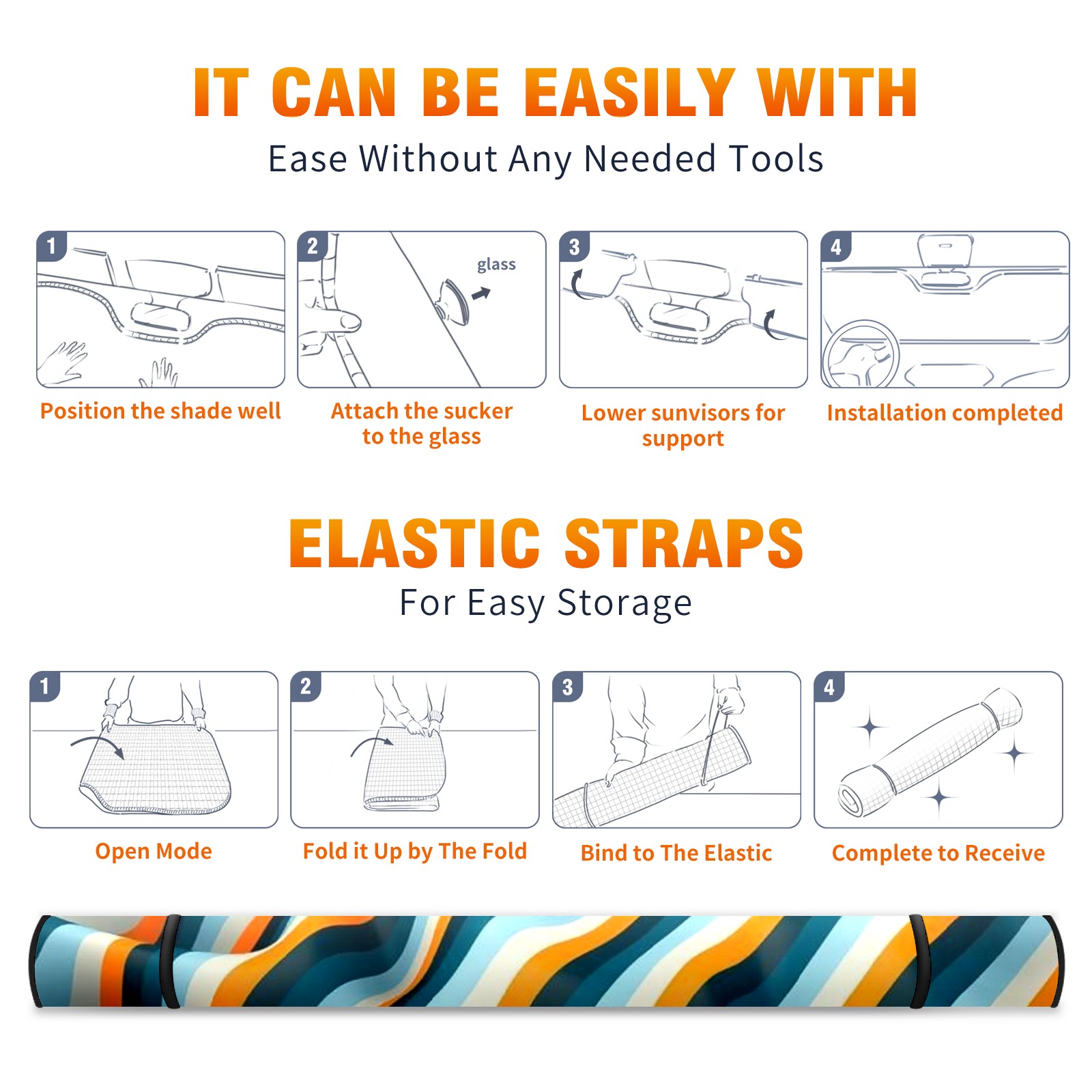 • Diameter /Size 63"L x 33.5"W Made from excellent materials which makes it sturdy and protects the car from the sun. Easy to use and pack. Makes the interior of the car cooler.You can easily stash the sunshade in the storage bag or store long term.It open and closes easy. Also the leather storage bag is durable and easy to put the umbrella back into.This windshield sunshade provides complete coverage and keeps your car interior cool under direct sun. It is easy to open and position under the windshield and around the rear-view mirror. Makes Your Car Easy To Identify, Perfect For Finding Your Car In Crowded Parking Lots And Garages.Great Choice: It Is A Great Gift For Dad, Boyfriend, Brother, Brother And Uncle, Friends, Classmates, Family And So On. Notice: Due To Difference Computer Monitors, The Color Maybe Slightly Different From Picture. As Different Measurement Methods, Measurement Data Will Float Within 2%.I Hope You Understand. If You Have Any Question About The Item Please Do Not Hesitate To Contact Us Immediately And We Will Give You A Satisfactory Reply Within 24 Hours.
