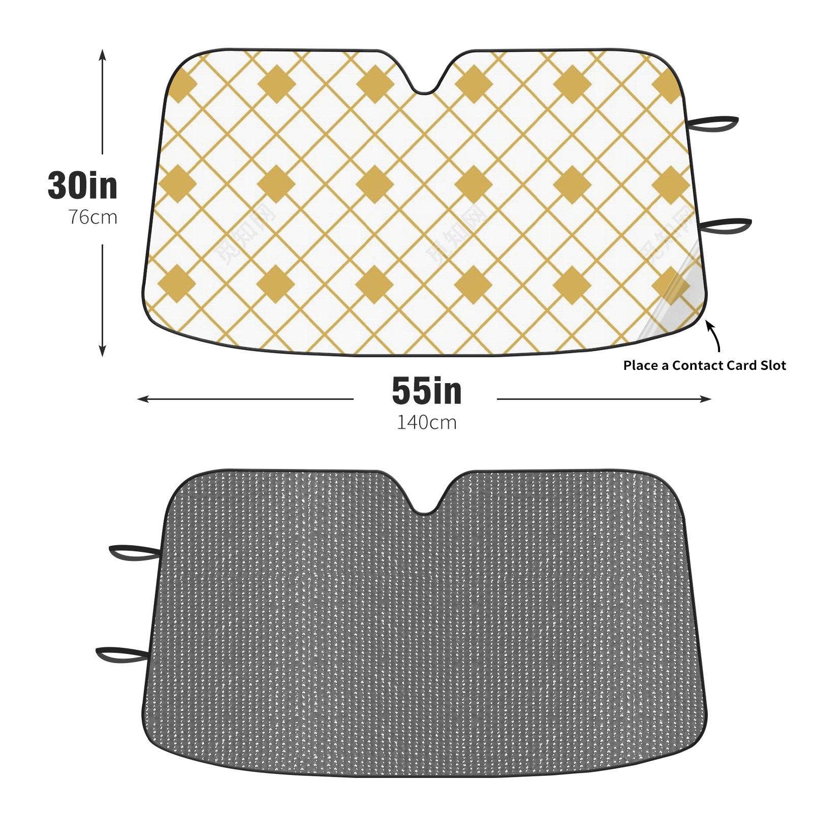 Diameter /Size 63"L x 33.5"W Made from excellent materials which makes it sturdy and protects the car from the sun. Easy to use and pack. Makes the interior of the car cooler.You can easily stash the sunshade in the storage bag or store long term.It open and closes easy. Also the leather storage bag is durable and easy to put the umbrella back into.This windshield sunshade provides complete coverage and keeps your car interior cool under direct sun. It is easy to open and position under the windshield and around the rear-view mirror. Makes Your Car Easy To Identify, Perfect For Finding Your Car In Crowded Parking Lots And Garages.Great Choice: It Is A Great Gift For Dad, Boyfriend, Brother, Brother And Uncle, Friends, Classmates, Family And So On. Notice: Due To Difference Computer Monitors, The Color Maybe Slightly Different From Picture. As Different Measurement Methods, Measurement Data Will Float Within 2%.I Hope You Understand. If You Have Any Question About The Item Please Do Not Hesitate To Contact Us Immediately And We Will Give You A Satisfactory Reply Within 24 Hours.