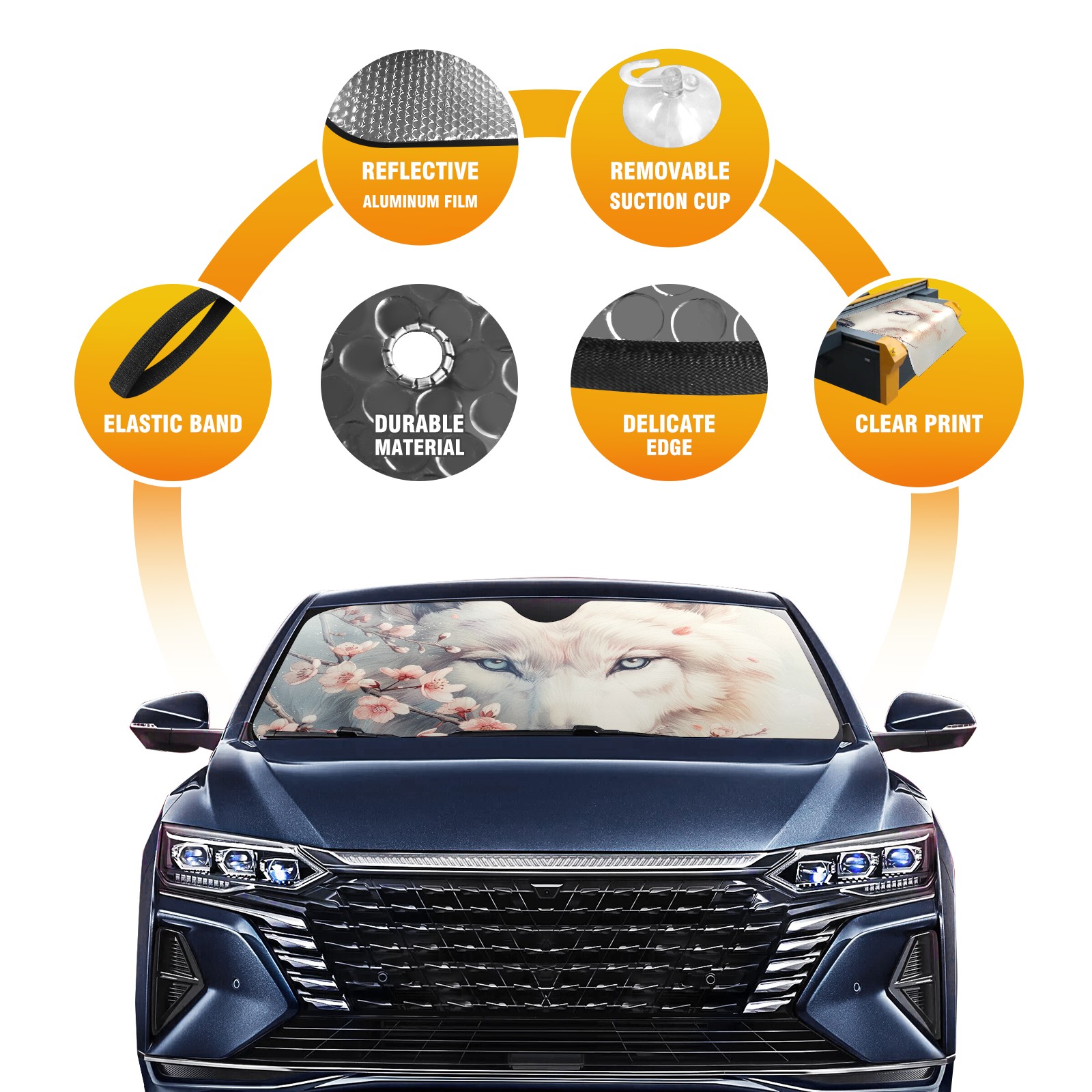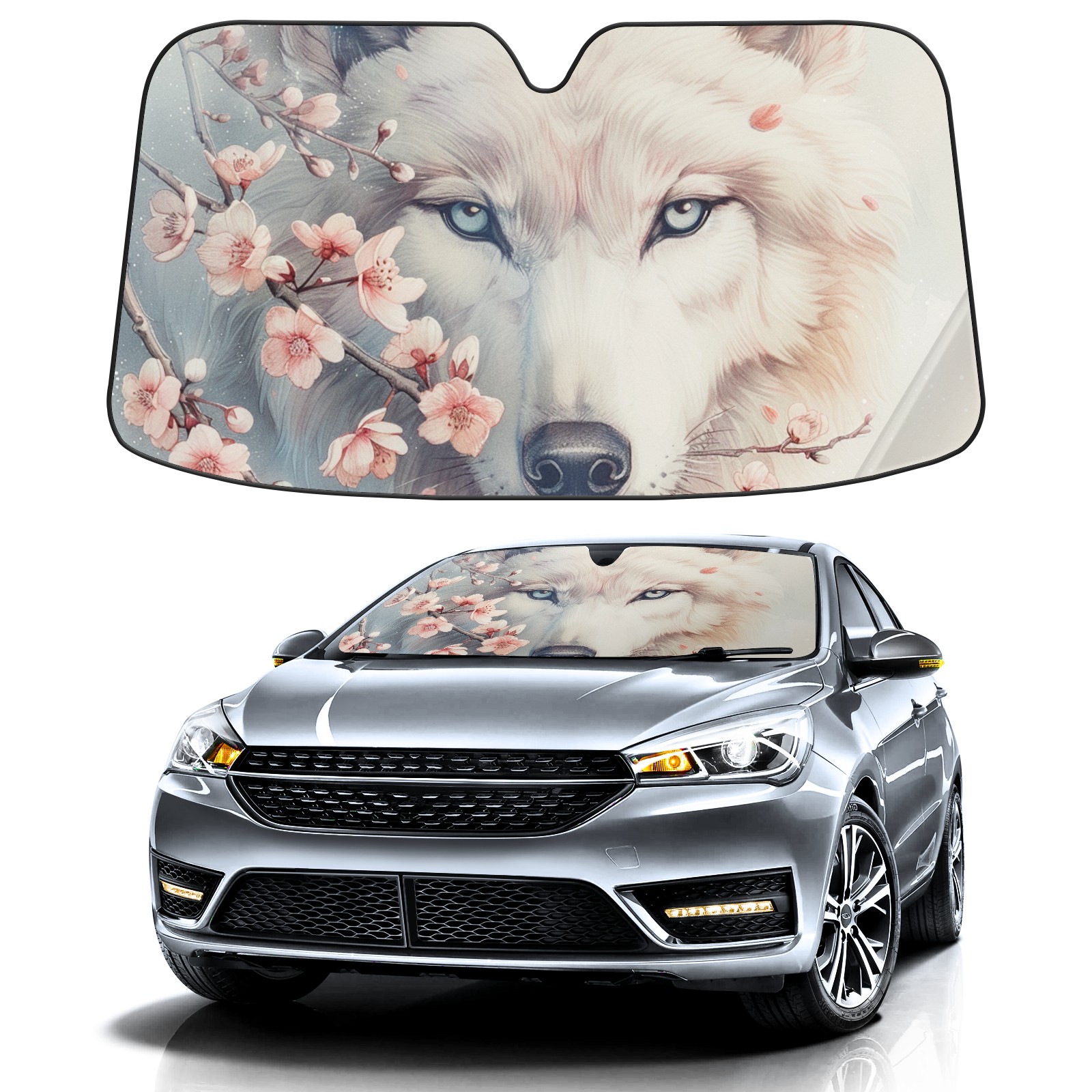 Car Windshield Sun Shade For Front Window Wolf Foldable Vehicle Windshield Car Sun Visor Covers Automotive Window Protector Car Camping Privacy Sun Blocker