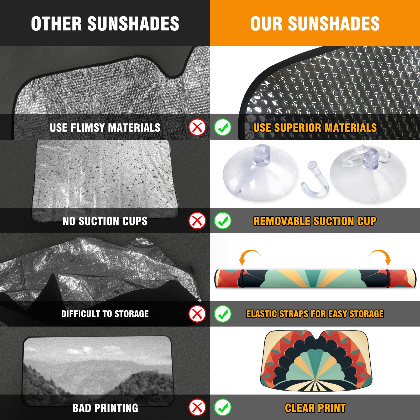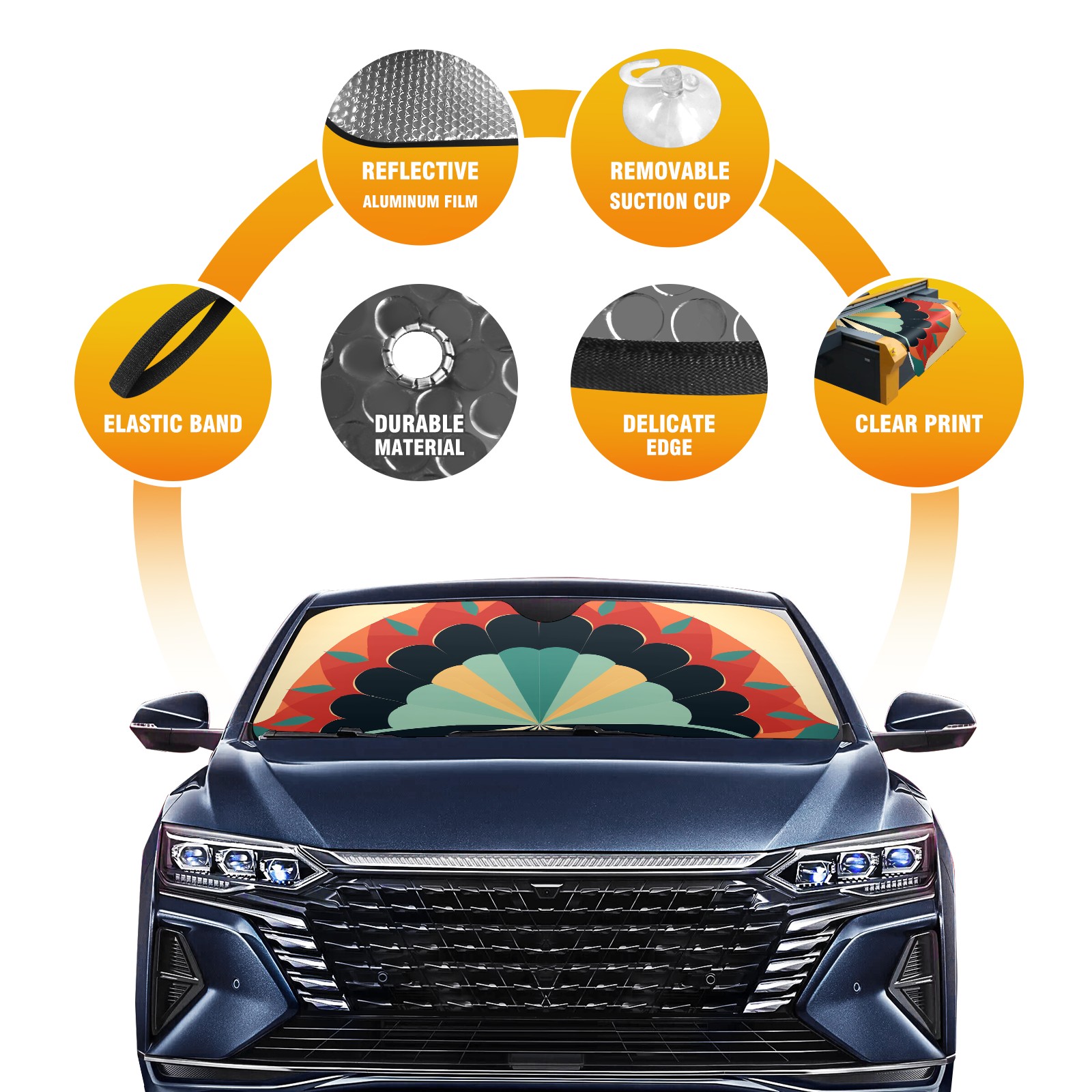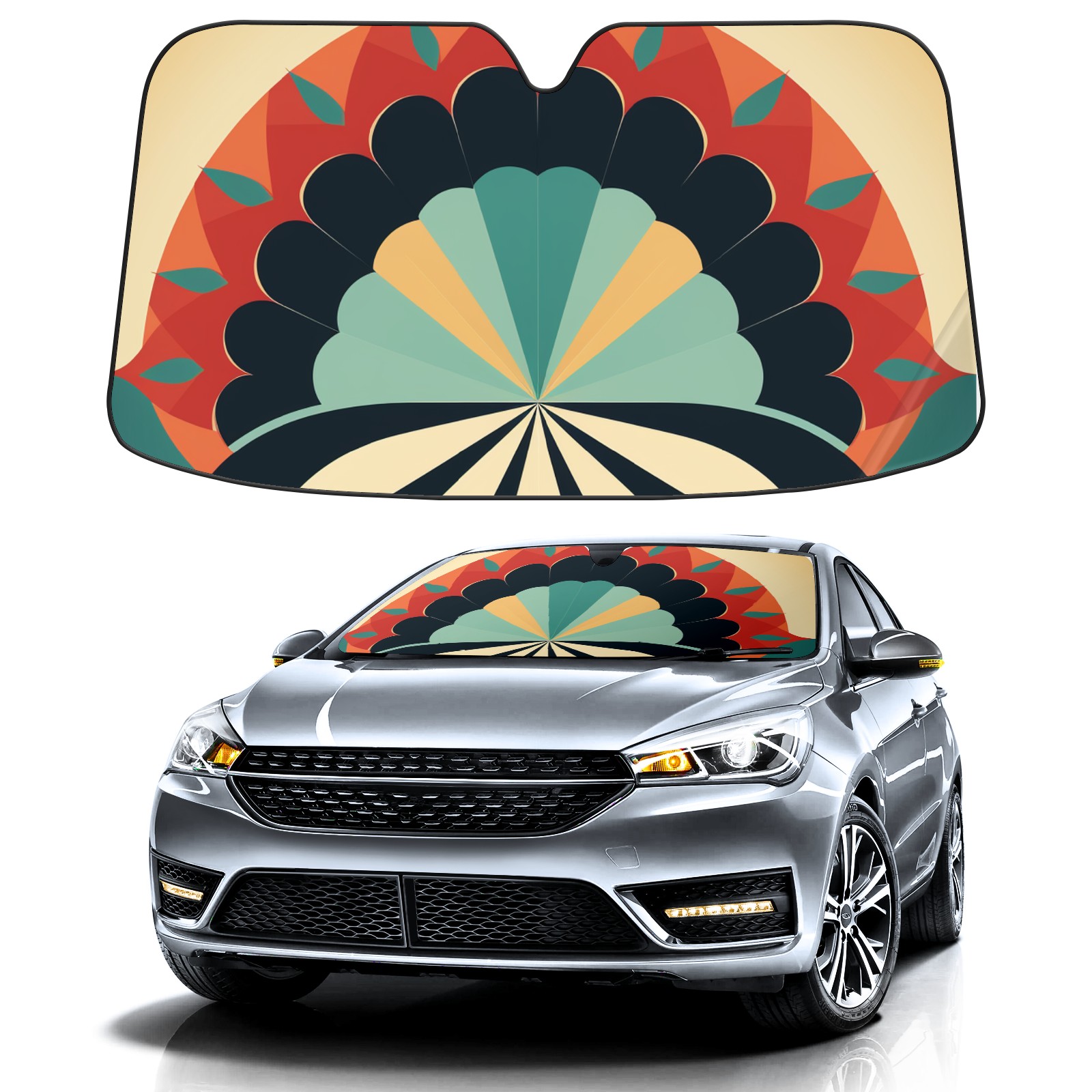 • Diameter /Size 63"L x 33.5"W Made from excellent materials which makes it sturdy and protects the car from the sun. Easy to use and pack. Makes the interior of the car cooler.You can easily stash the sunshade in the storage bag or store long term.It open and closes easy. Also the leather storage bag is durable and easy to put the umbrella back into.This windshield sunshade provides complete coverage and keeps your car interior cool under direct sun. It is easy to open and position under the windshield and around the rear-view mirror. Makes Your Car Easy To Identify, Perfect For Finding Your Car In Crowded Parking Lots And Garages.Great Choice: It Is A Great Gift For Dad, Boyfriend, Brother, Brother And Uncle, Friends, Classmates, Family And So On. Notice: Due To Difference Computer Monitors, The Color Maybe Slightly Different From Picture. As Different Measurement Methods, Measurement Data Will Float Within 2%.I Hope You Understand. If You Have Any Question About The Item Please Do Not Hesitate To Contact Us Immediately And We Will Give You A Satisfactory Reply Within 24 Hours.