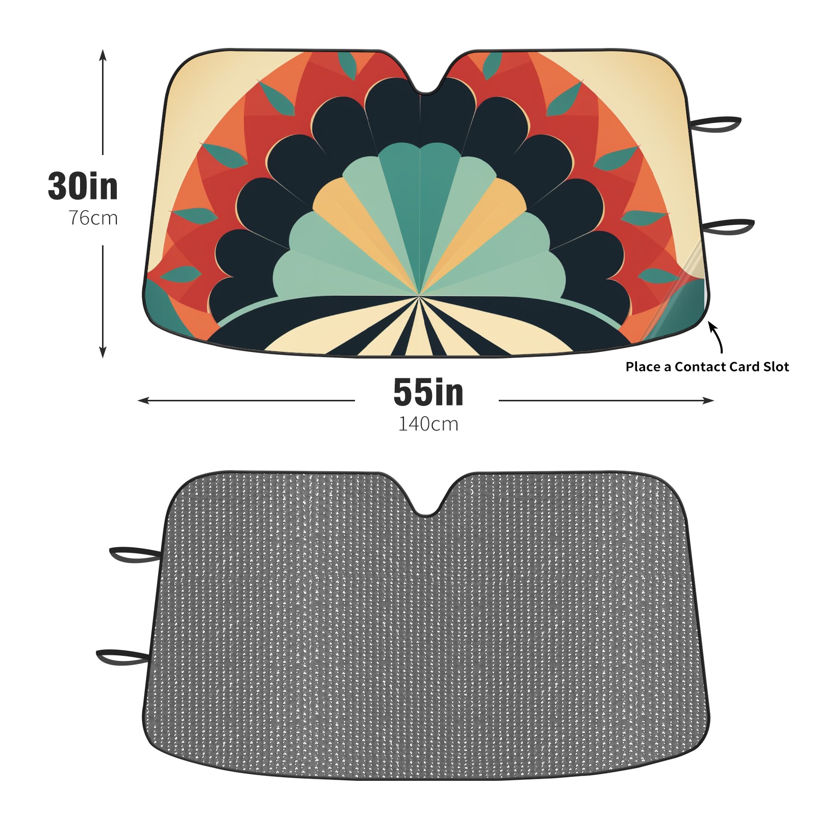 Diameter /Size 63"L x 33.5"W Made from excellent materials which makes it sturdy and protects the car from the sun. Easy to use and pack. Makes the interior of the car cooler.You can easily stash the sunshade in the storage bag or store long term.It open and closes easy. Also the leather storage bag is durable and easy to put the umbrella back into.This windshield sunshade provides complete coverage and keeps your car interior cool under direct sun. It is easy to open and position under the windshield and around the rear-view mirror. Makes Your Car Easy To Identify, Perfect For Finding Your Car In Crowded Parking Lots And Garages.Great Choice: It Is A Great Gift For Dad, Boyfriend, Brother, Brother And Uncle, Friends, Classmates, Family And So On. Notice: Due To Difference Computer Monitors, The Color Maybe Slightly Different From Picture. As Different Measurement Methods, Measurement Data Will Float Within 2%.I Hope You Understand. If You Have Any Question About The Item Please Do Not Hesitate To Contact Us Immediately And We Will Give You A Satisfactory Reply Within 24 Hours.