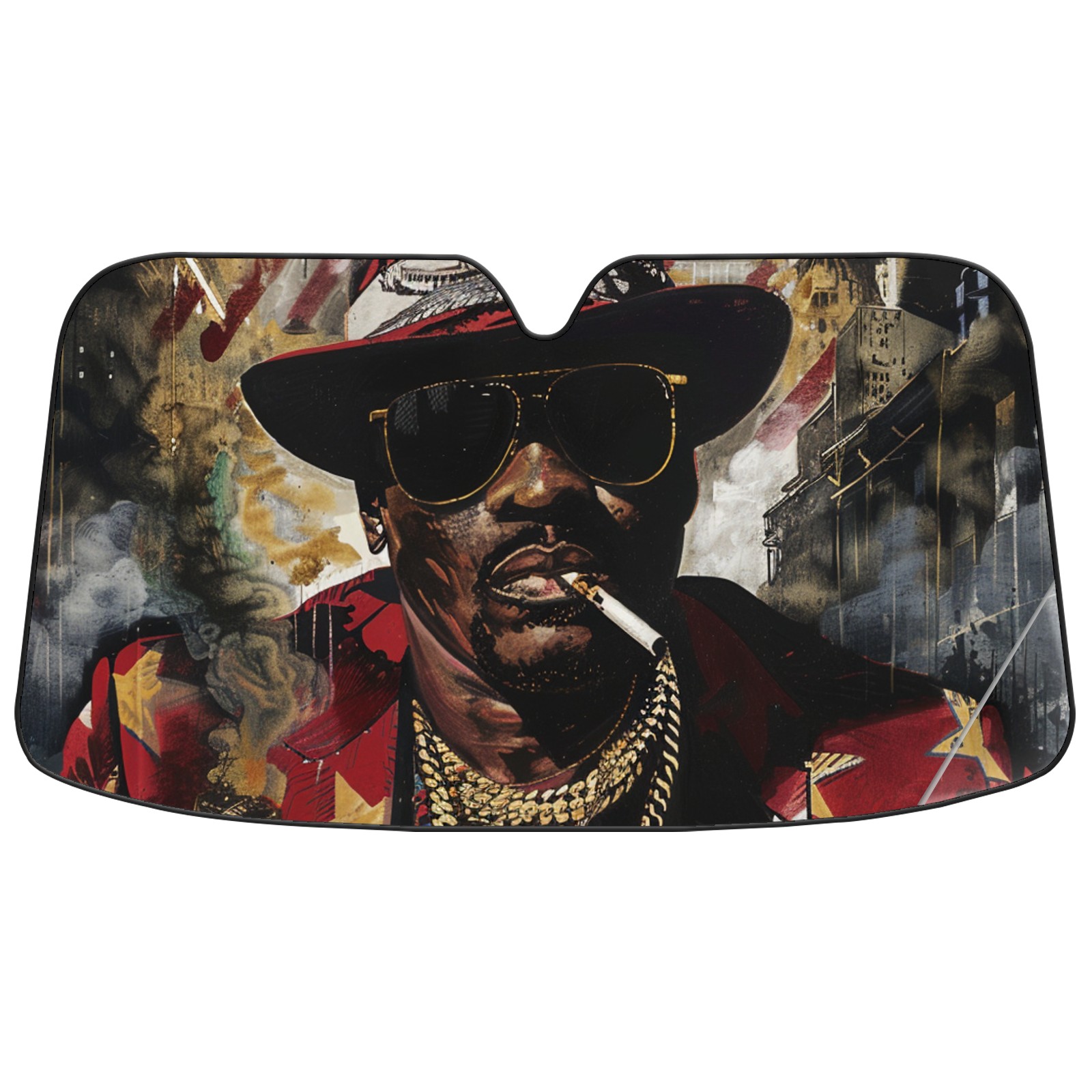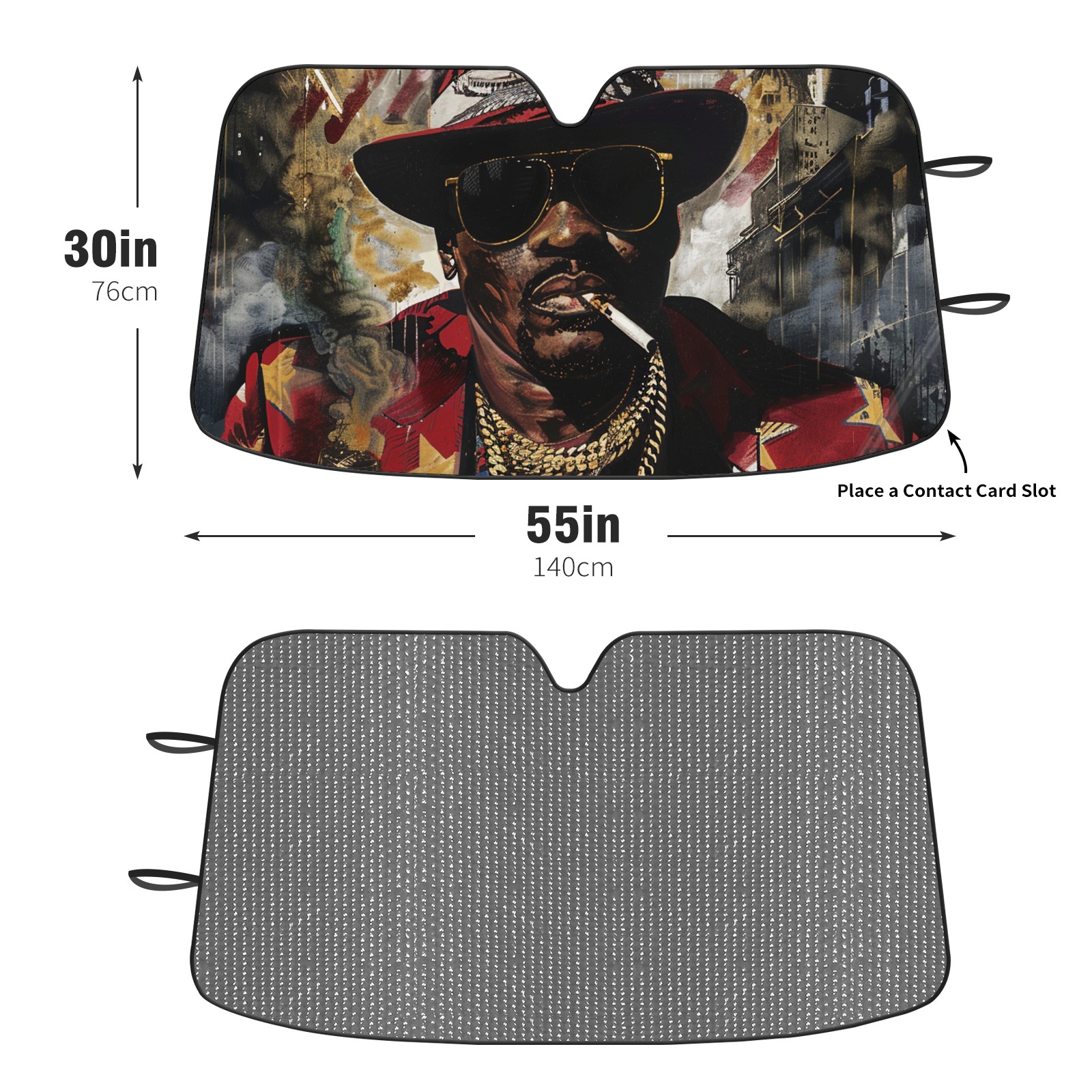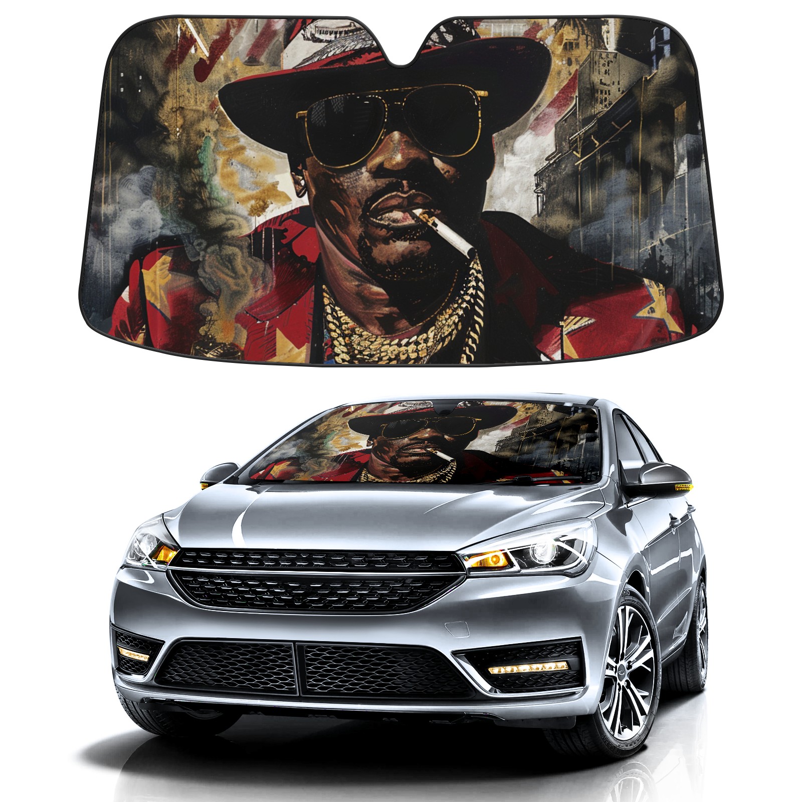 Car Windshield Sun Shade For Front Window Vintage Rap Foldable Vehicle Windshield Car Sun Visor Covers Automotive Window Protector Car Camping Privacy Sun Blocker