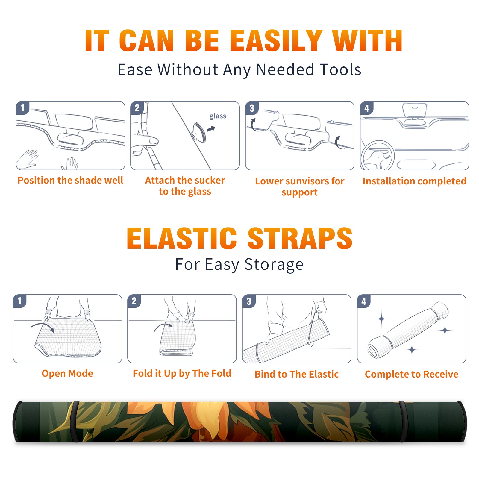 • Diameter /Size 63"L x 33.5"W Made from excellent materials which makes it sturdy and protects the car from the sun. Easy to use and pack. Makes the interior of the car cooler.You can easily stash the sunshade in the storage bag or store long term.It open and closes easy. Also the leather storage bag is durable and easy to put the umbrella back into.This windshield sunshade provides complete coverage and keeps your car interior cool under direct sun. It is easy to open and position under the windshield and around the rear-view mirror. Makes Your Car Easy To Identify, Perfect For Finding Your Car In Crowded Parking Lots And Garages.Great Choice: It Is A Great Gift For Dad, Boyfriend, Brother, Brother And Uncle, Friends, Classmates, Family And So On. Notice: Due To Difference Computer Monitors, The Color Maybe Slightly Different From Picture. As Different Measurement Methods, Measurement Data Will Float Within 2%.I Hope You Understand. If You Have Any Question About The Item Please Do Not Hesitate To Contact Us Immediately And We Will Give You A Satisfactory Reply Within 24 Hours.