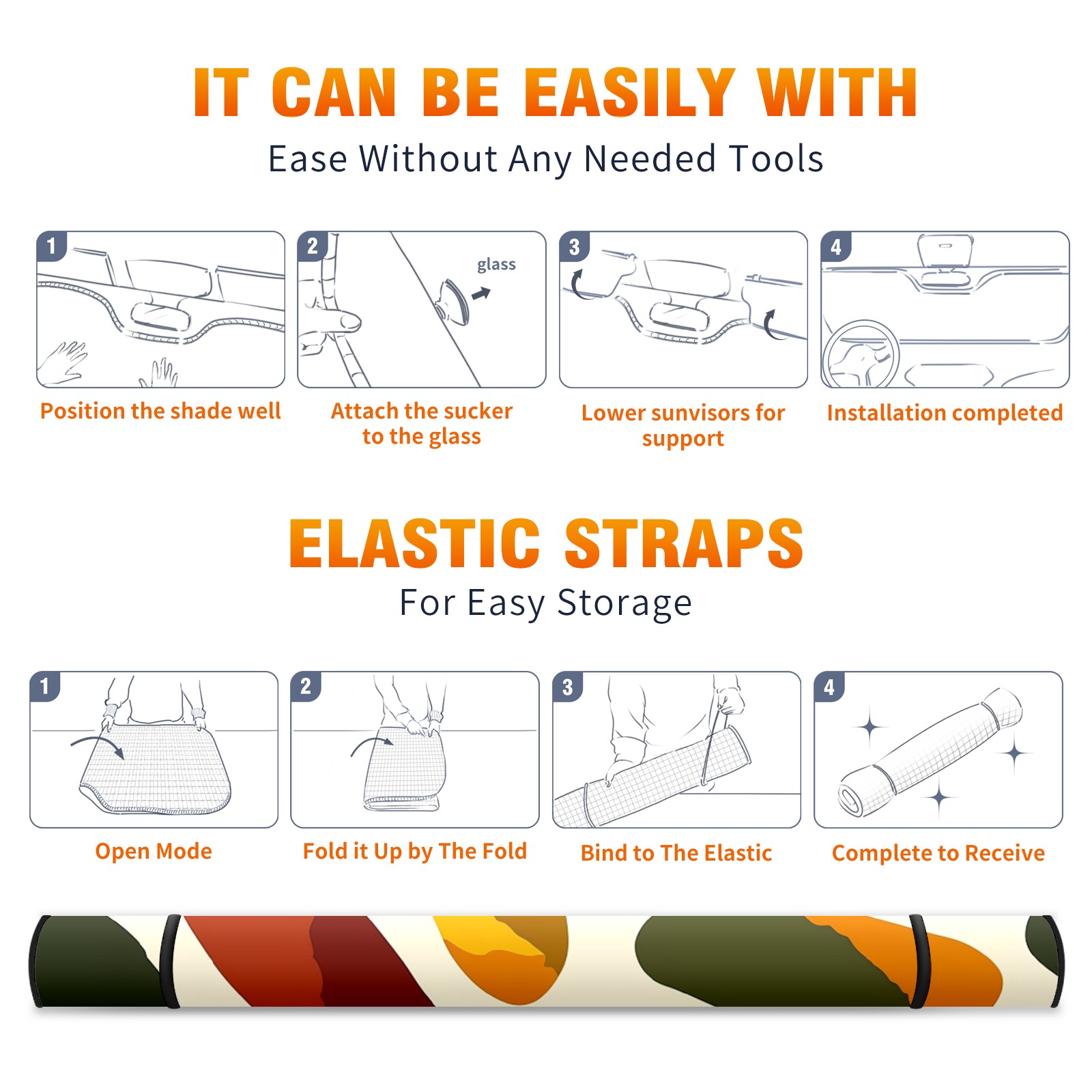 • Diameter /Size 63"L x 33.5"W Made from excellent materials which makes it sturdy and protects the car from the sun. Easy to use and pack. Makes the interior of the car cooler.You can easily stash the sunshade in the storage bag or store long term.It open and closes easy. Also the leather storage bag is durable and easy to put the umbrella back into.This windshield sunshade provides complete coverage and keeps your car interior cool under direct sun. It is easy to open and position under the windshield and around the rear-view mirror. Makes Your Car Easy To Identify, Perfect For Finding Your Car In Crowded Parking Lots And Garages.Great Choice: It Is A Great Gift For Dad, Boyfriend, Brother, Brother And Uncle, Friends, Classmates, Family And So On. Notice: Due To Difference Computer Monitors, The Color Maybe Slightly Different From Picture. As Different Measurement Methods, Measurement Data Will Float Within 2%.I Hope You Understand. If You Have Any Question About The Item Please Do Not Hesitate To Contact Us Immediately And We Will Give You A Satisfactory Reply Within 24 Hours.