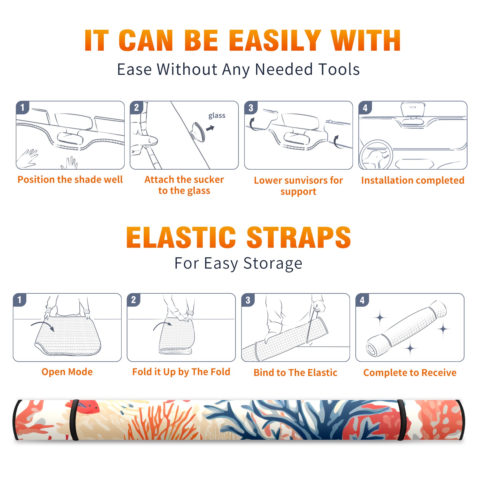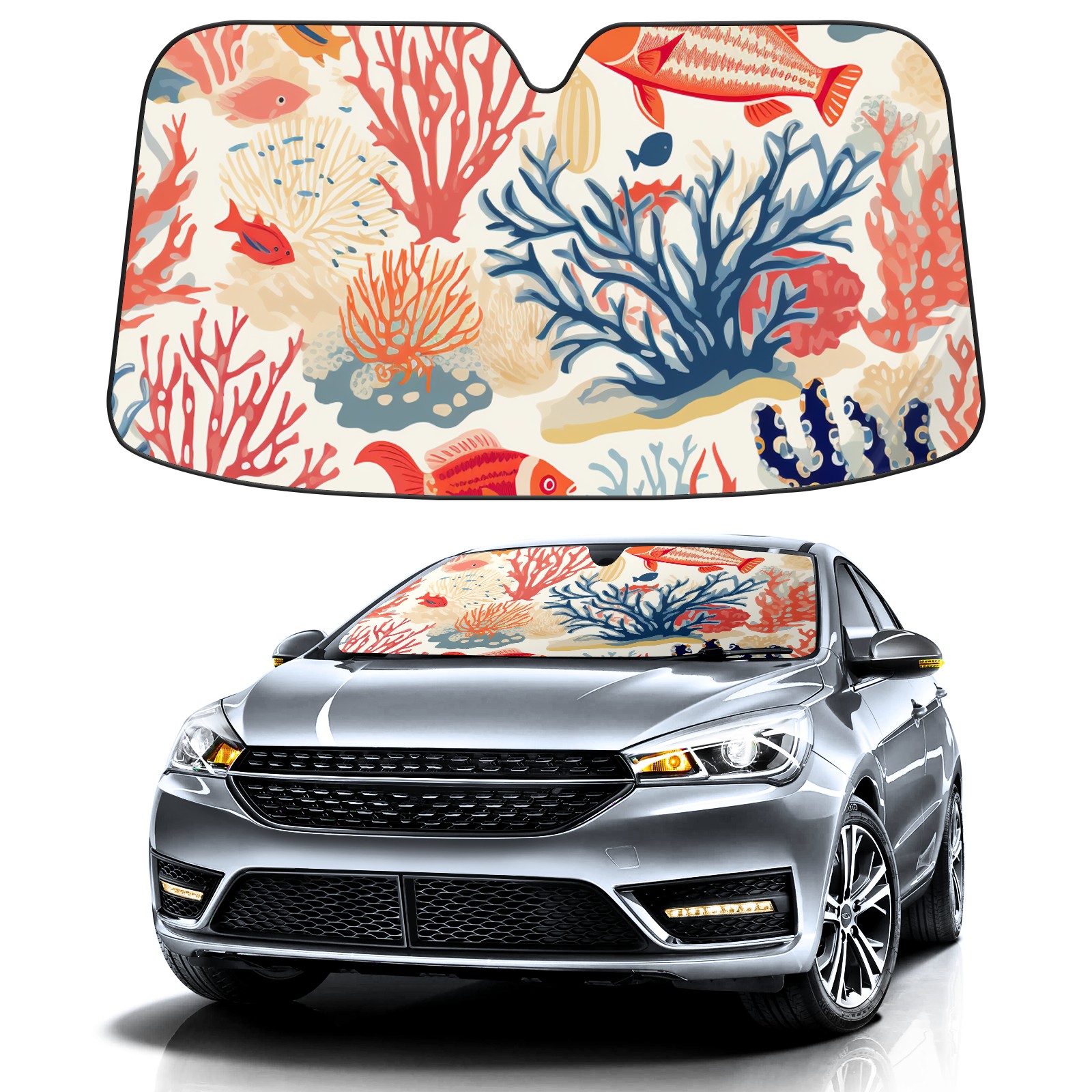 Car Windshield Sun Shade For Front Window Fish Foldable Vehicle Windshield Car Sun Visor Covers Automotive Window Protector Car Camping Privacy Sun Blocker