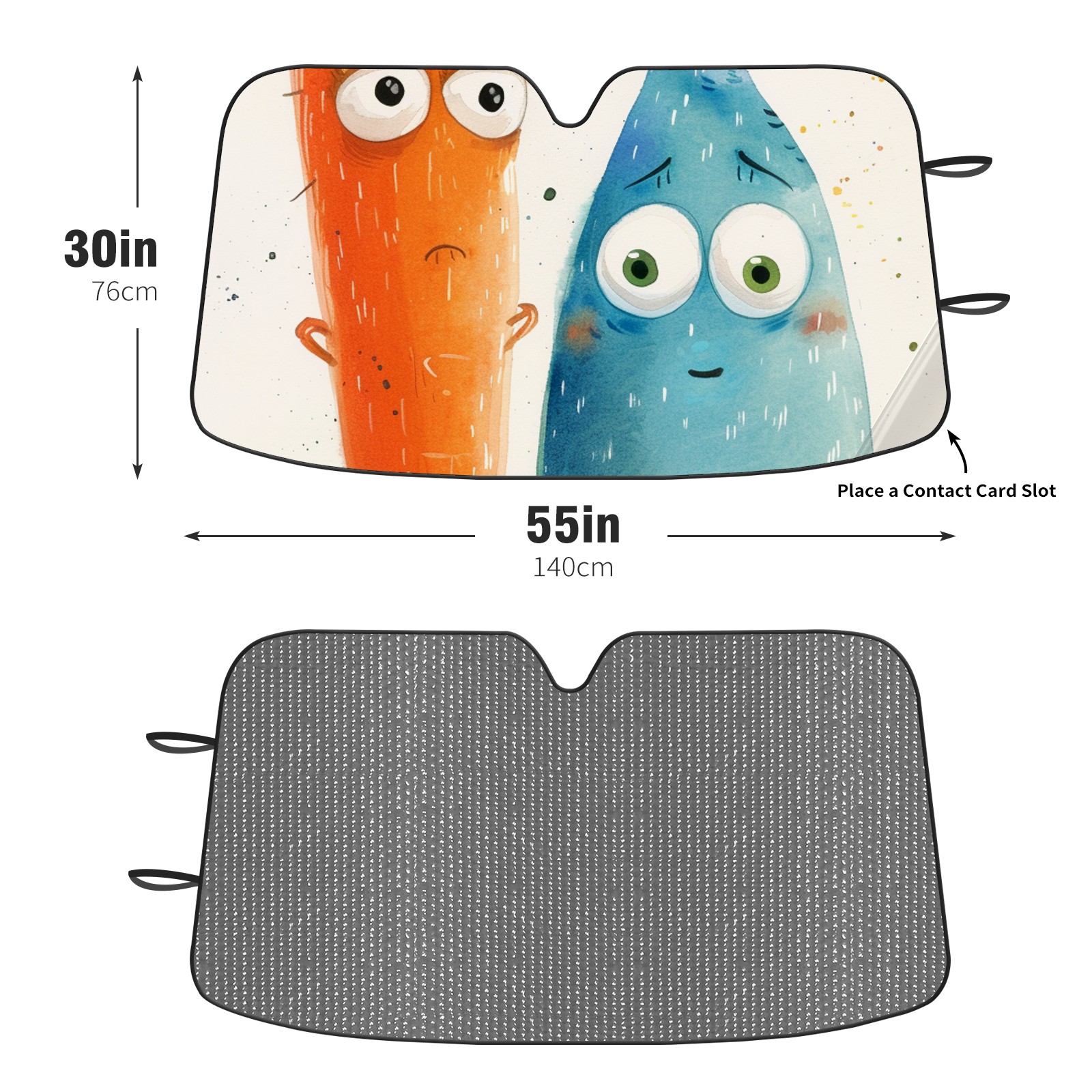 Diameter /Size 63"L x 33.5"W Made from excellent materials which makes it sturdy and protects the car from the sun. Easy to use and pack. Makes the interior of the car cooler.You can easily stash the sunshade in the storage bag or store long term.It open and closes easy. Also the leather storage bag is durable and easy to put the umbrella back into.This windshield sunshade provides complete coverage and keeps your car interior cool under direct sun. It is easy to open and position under the windshield and around the rear-view mirror. Makes Your Car Easy To Identify, Perfect For Finding Your Car In Crowded Parking Lots And Garages.Great Choice: It Is A Great Gift For Dad, Boyfriend, Brother, Brother And Uncle, Friends, Classmates, Family And So On. Notice: Due To Difference Computer Monitors, The Color Maybe Slightly Different From Picture. As Different Measurement Methods, Measurement Data Will Float Within 2%.I Hope You Understand. If You Have Any Question About The Item Please Do Not Hesitate To Contact Us Immediately And We Will Give You A Satisfactory Reply Within 24 Hours.