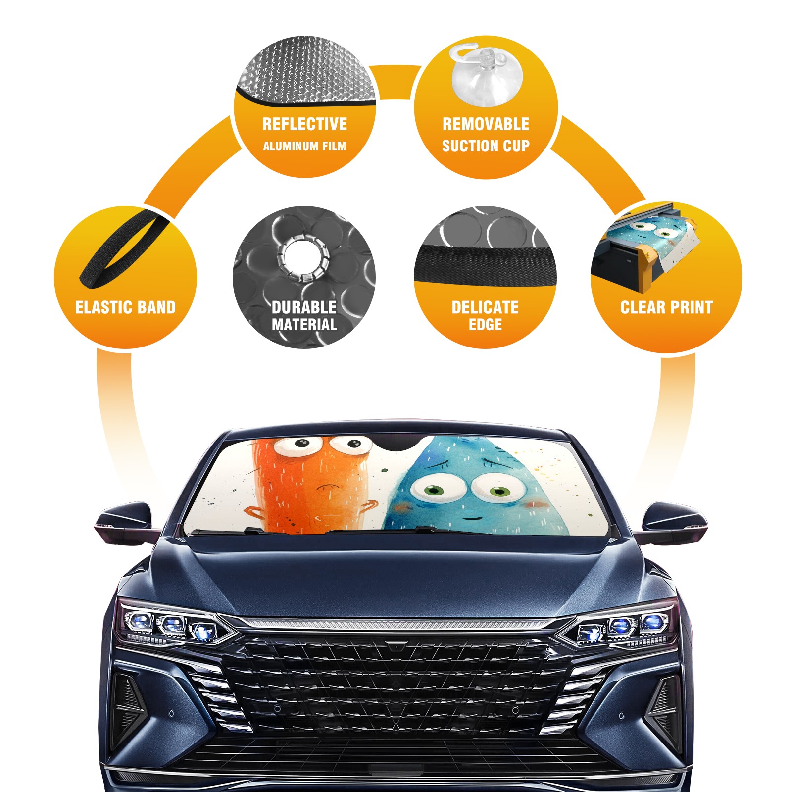 • Diameter /Size 63"L x 33.5"W Made from excellent materials which makes it sturdy and protects the car from the sun. Easy to use and pack. Makes the interior of the car cooler.You can easily stash the sunshade in the storage bag or store long term.It open and closes easy. Also the leather storage bag is durable and easy to put the umbrella back into.This windshield sunshade provides complete coverage and keeps your car interior cool under direct sun. It is easy to open and position under the windshield and around the rear-view mirror. Makes Your Car Easy To Identify, Perfect For Finding Your Car In Crowded Parking Lots And Garages.Great Choice: It Is A Great Gift For Dad, Boyfriend, Brother, Brother And Uncle, Friends, Classmates, Family And So On. Notice: Due To Difference Computer Monitors, The Color Maybe Slightly Different From Picture. As Different Measurement Methods, Measurement Data Will Float Within 2%.I Hope You Understand. If You Have Any Question About The Item Please Do Not Hesitate To Contact Us Immediately And We Will Give You A Satisfactory Reply Within 24 Hours.